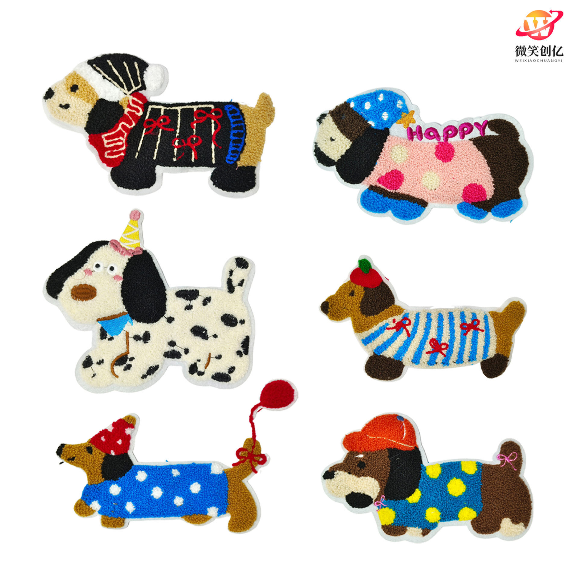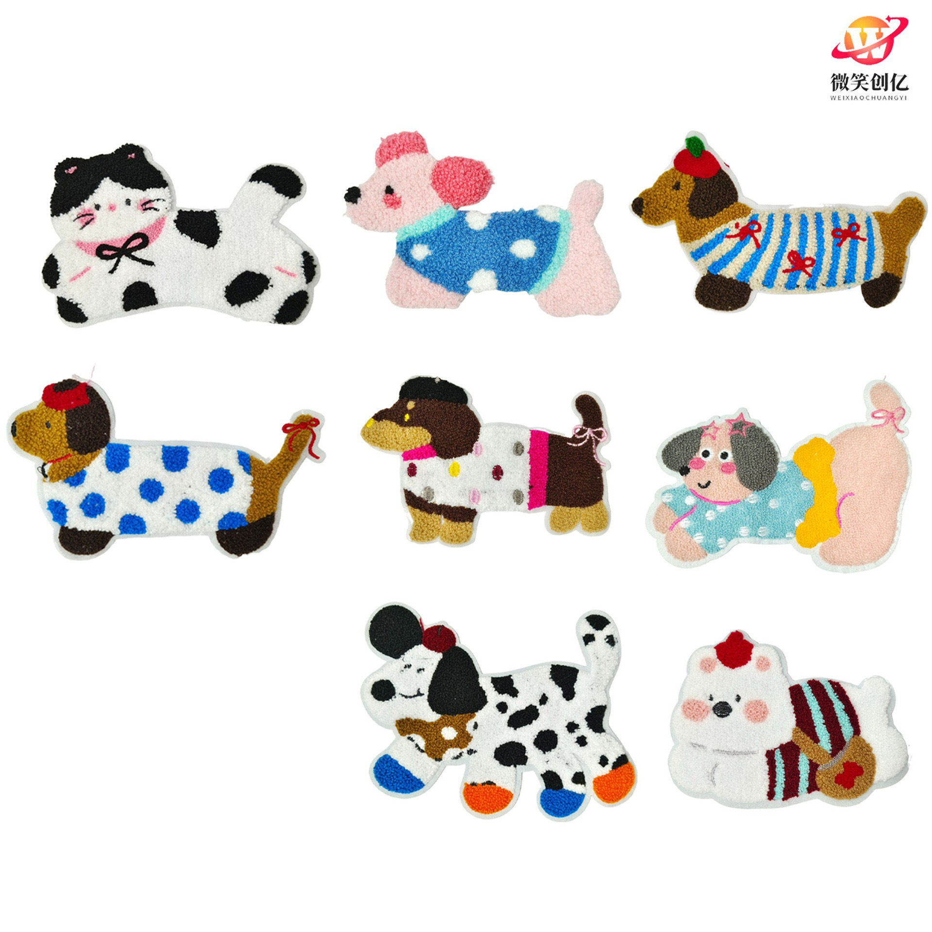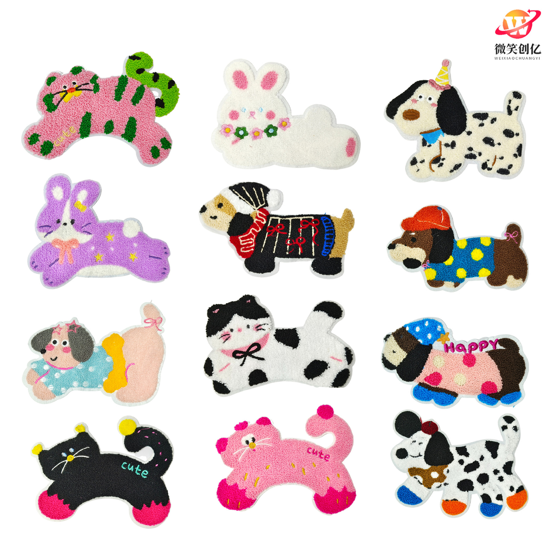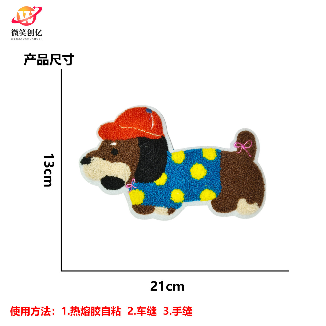 现货批发卡通可爱毛巾绣小狗小猫布贴服装辅料菜篮子配饰辅料diy