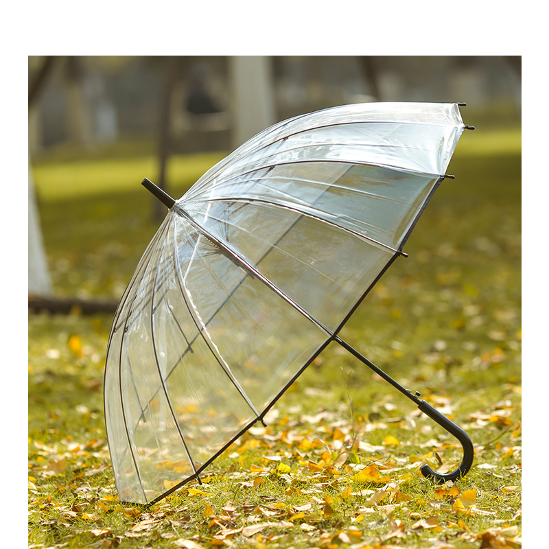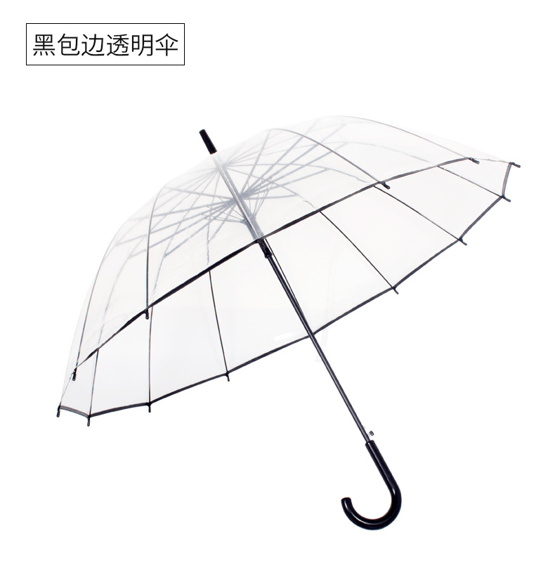 large wholesale 16-bone transparent automatic umbrella solid men‘s and women‘s long handle umbrella oversized wind-resistant umbrella custom advertising