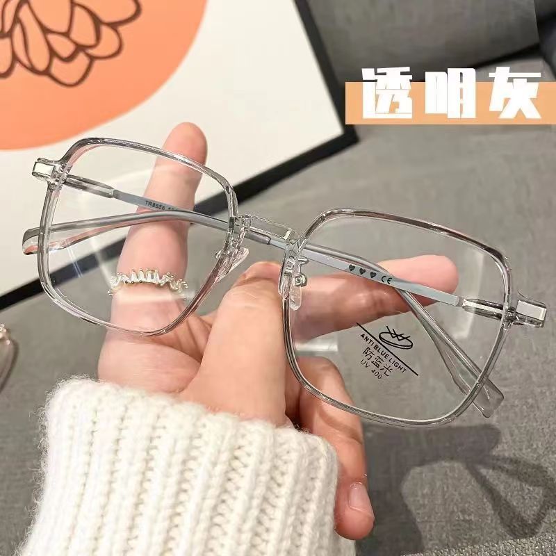 网红款护目眼镜框架不规则圆框透色光学防蓝光素颜街拍神器变色镜