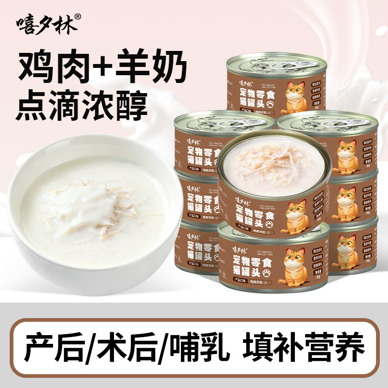 猫咪羊奶鸡丝鸡肉猫罐头零食成幼猫营养湿粮24罐整箱补水白肉汤罐
