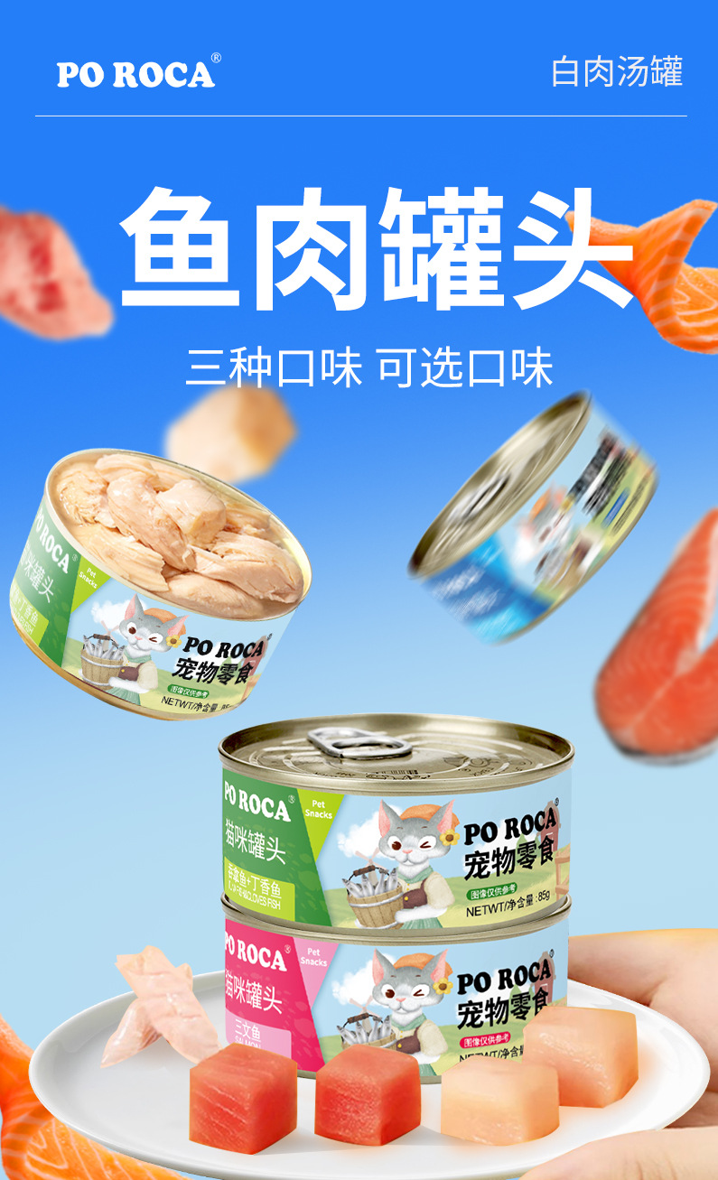 猫罐头整箱白肉85克猫主食猫咪零食成幼猫三文鱼浓汤补水大肉块