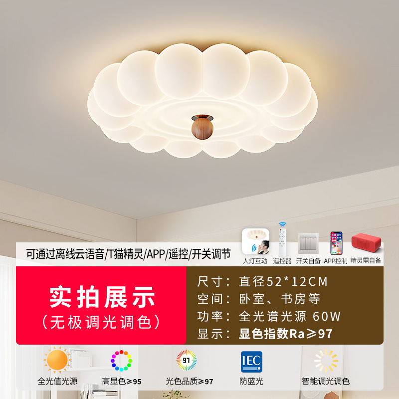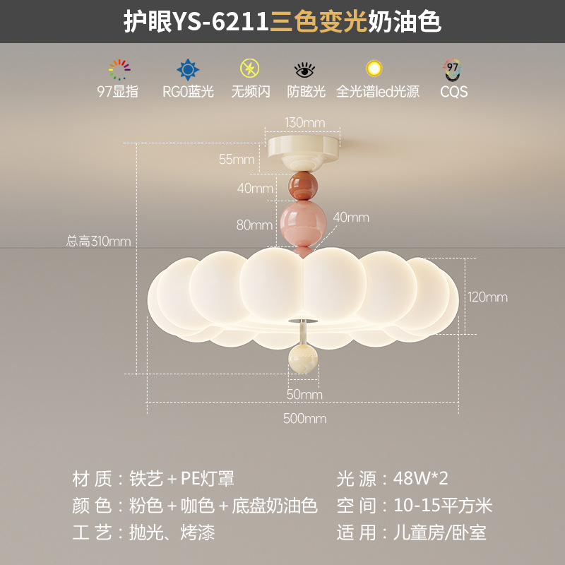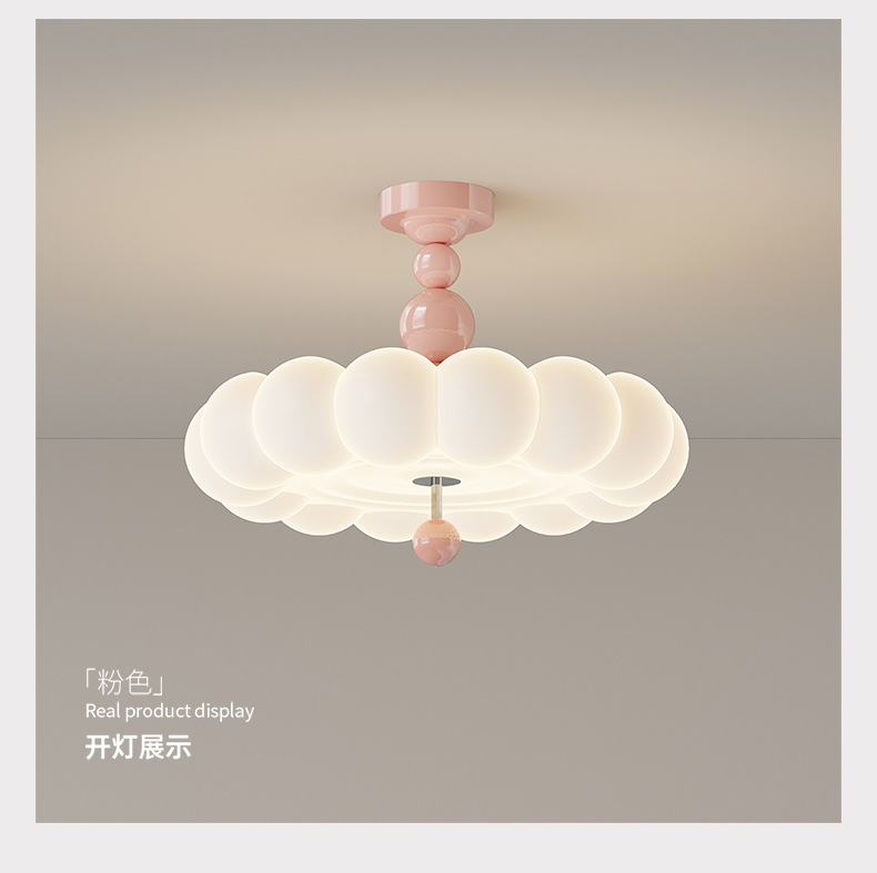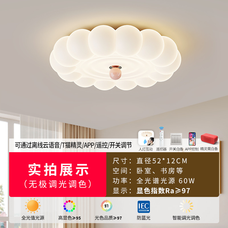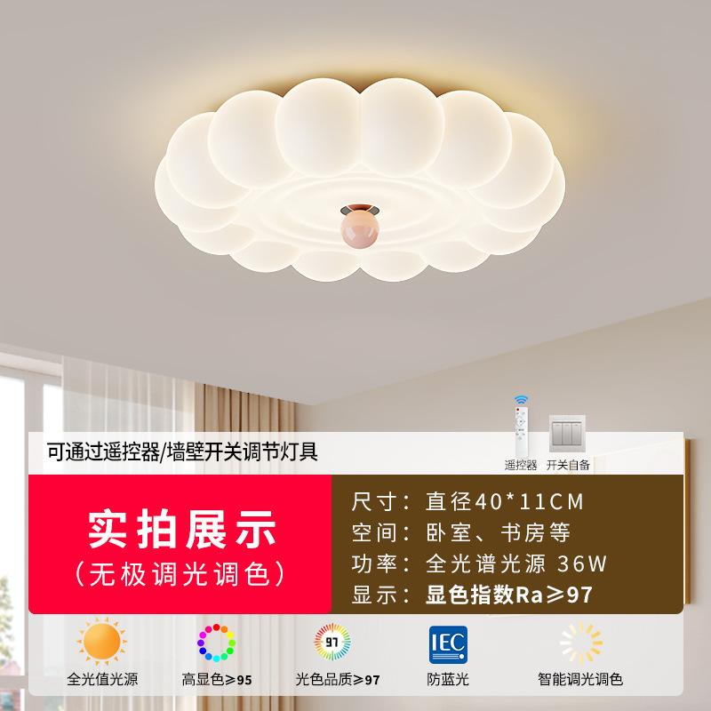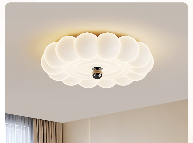2025新款中古奶油风卧室灯创意花朵泡泡护眼温馨浪漫儿童房吸顶灯