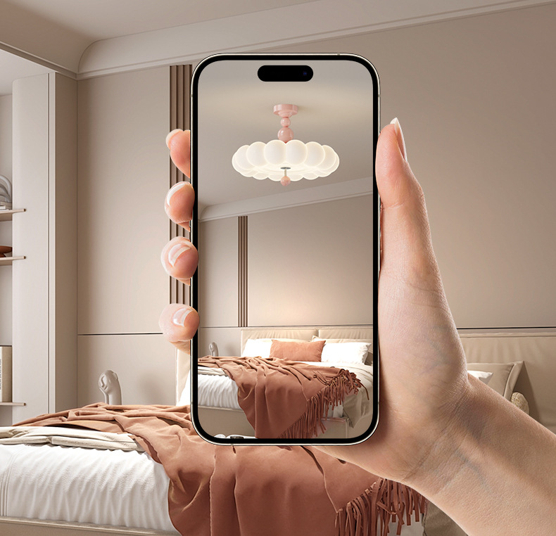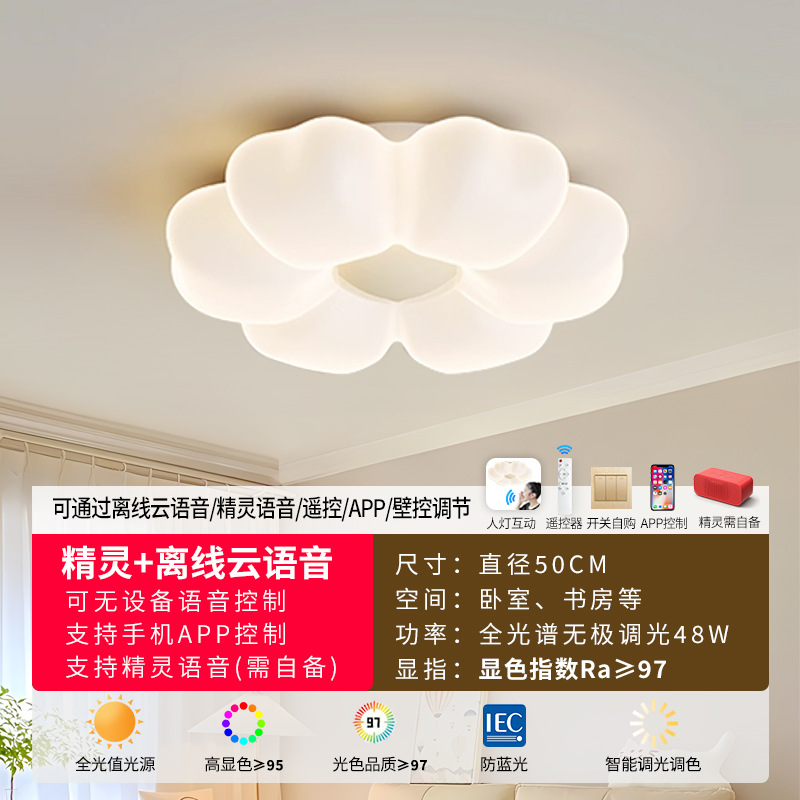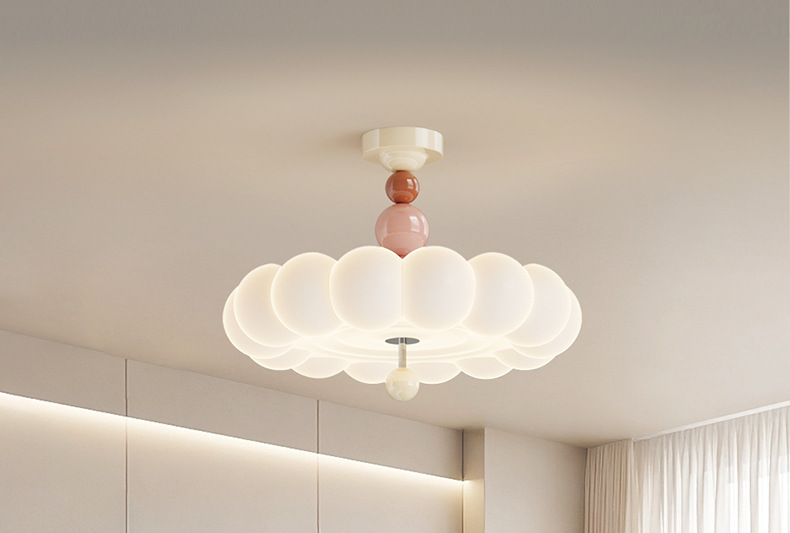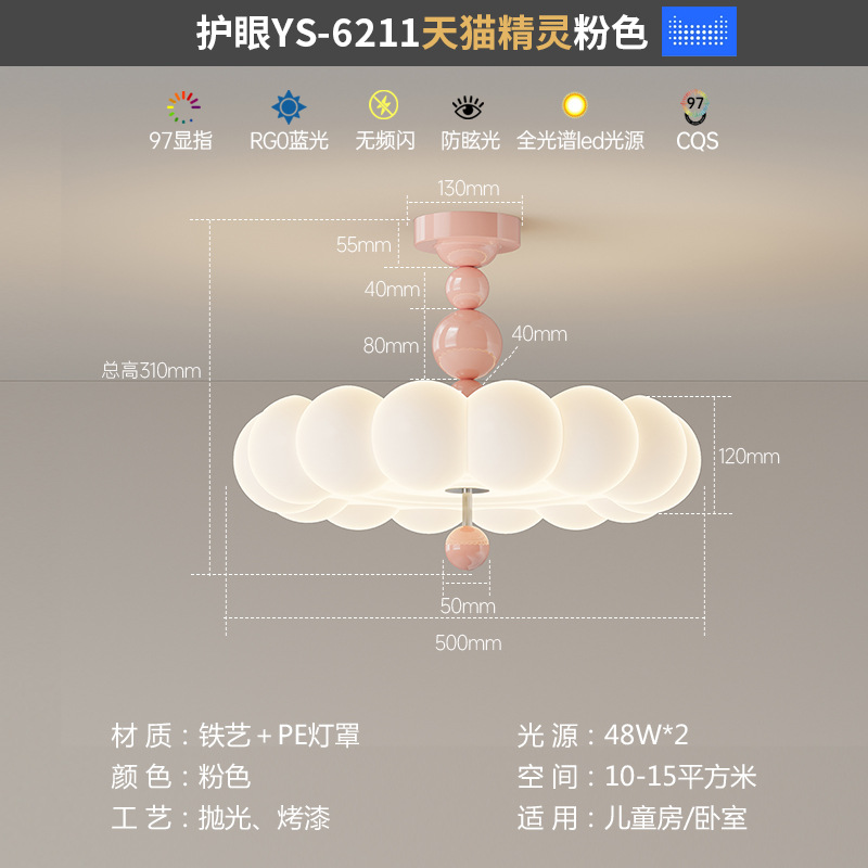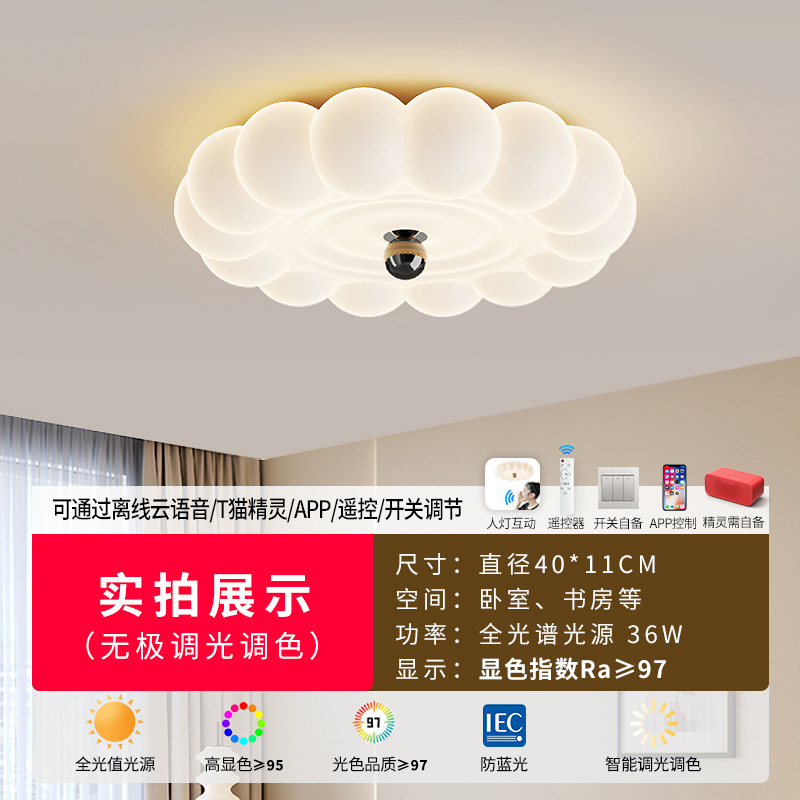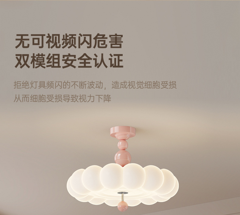 2025新款中古奶油风卧室灯创意花朵泡泡护眼温馨浪漫儿童房吸顶灯