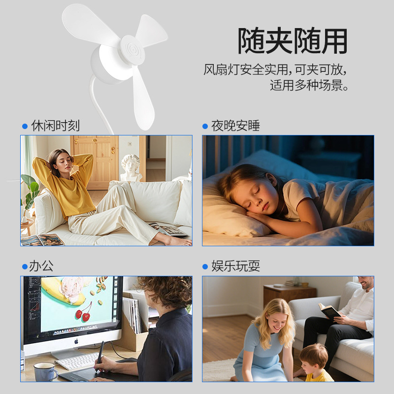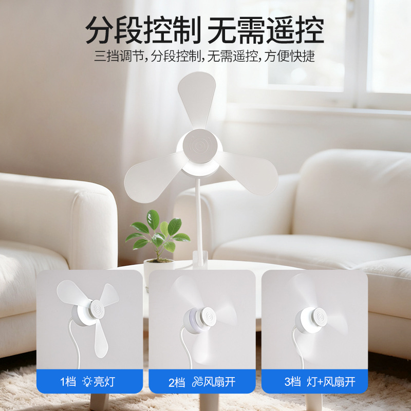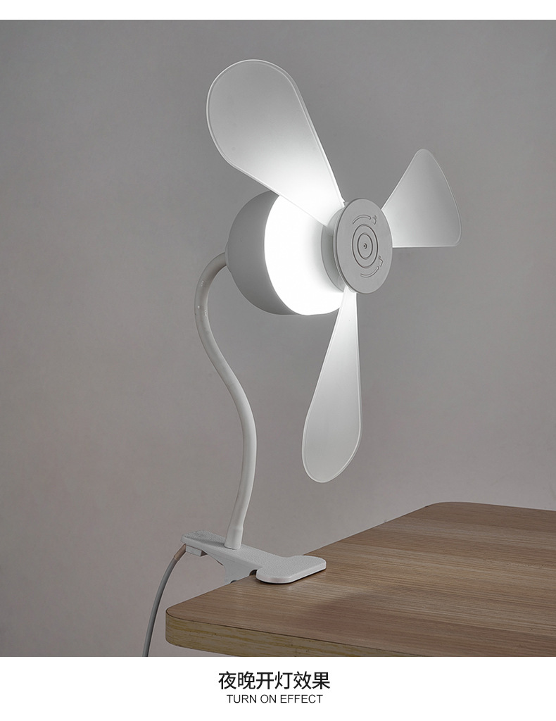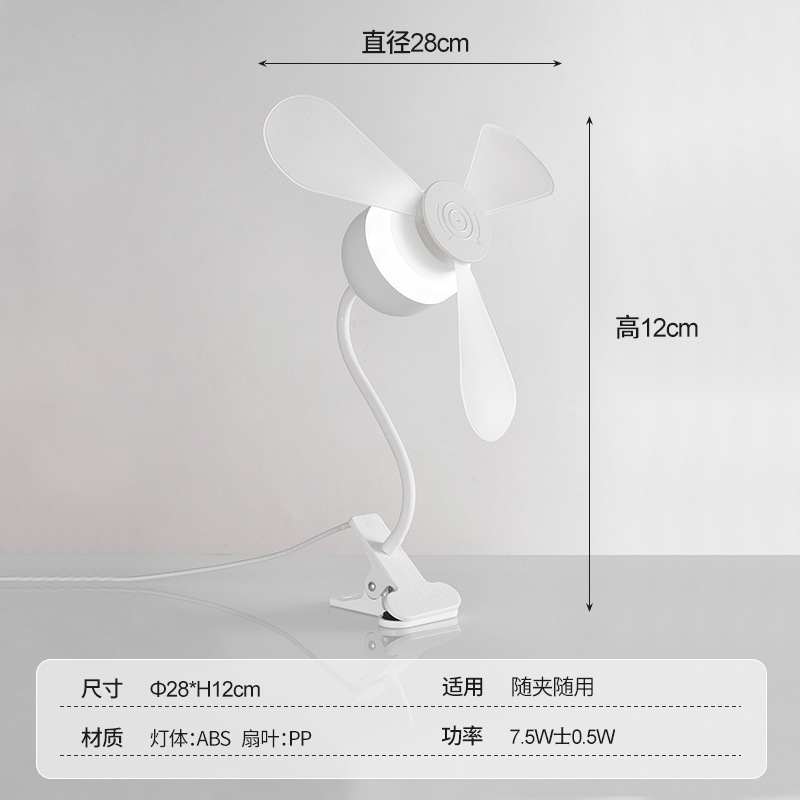 跨境外贸新款夹子风扇灯超静音护眼卧室客厅书房桌面夹式小风扇灯