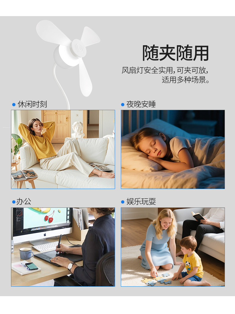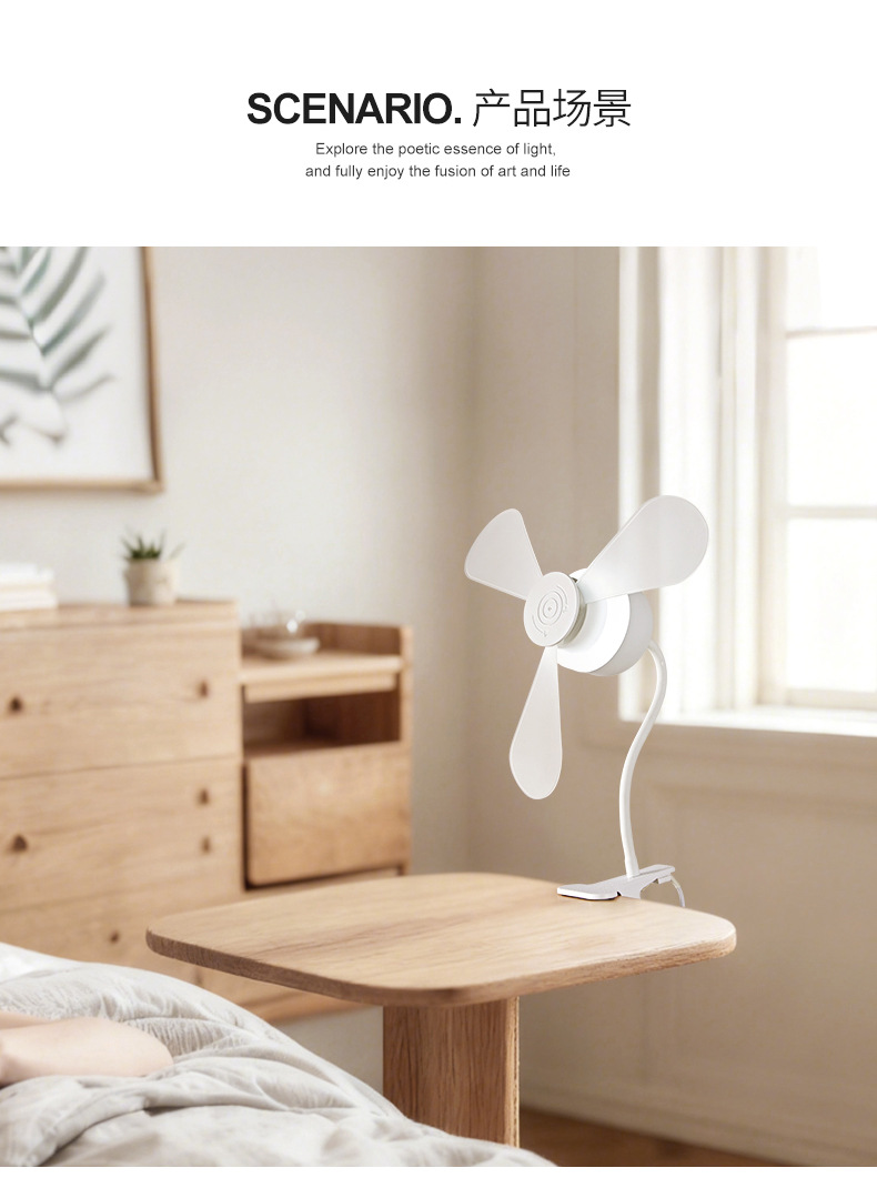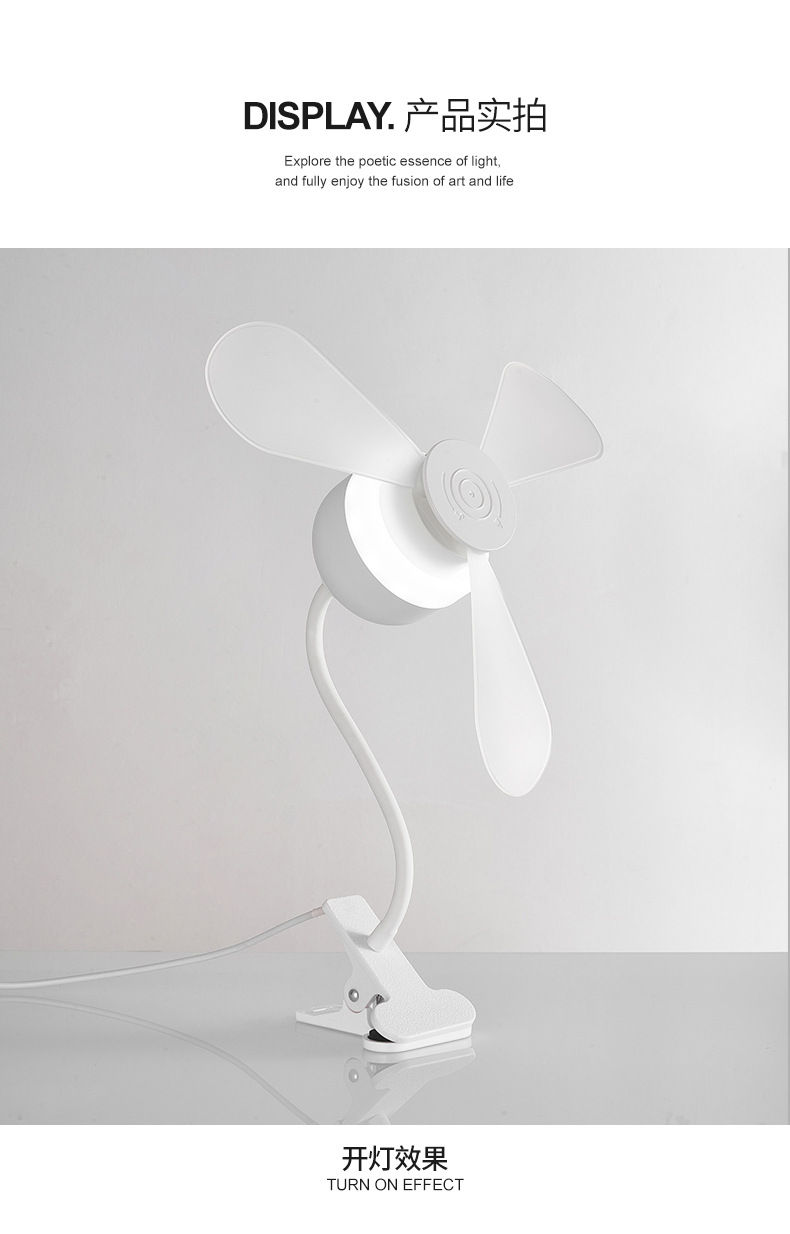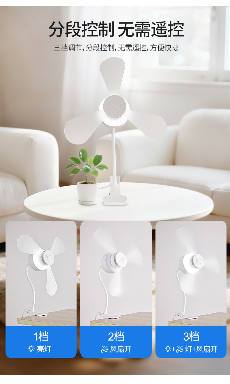 跨境外贸新款夹子风扇灯超静音护眼卧室客厅书房桌面夹式小风扇灯