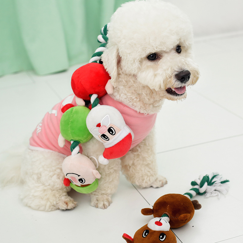 发声宠物玩具毛绒公仔圣诞老人苹果玩偶狗狗耐咬棉绳磨牙大型犬