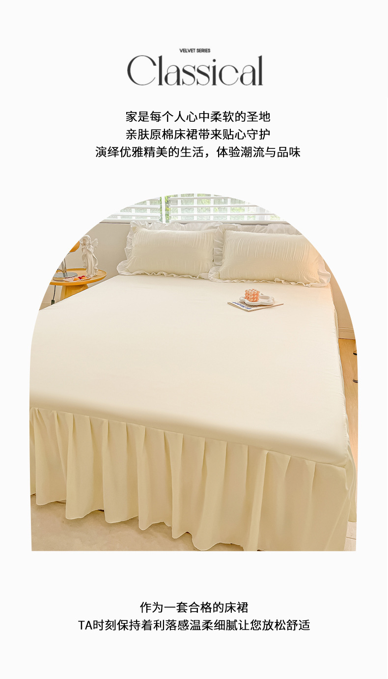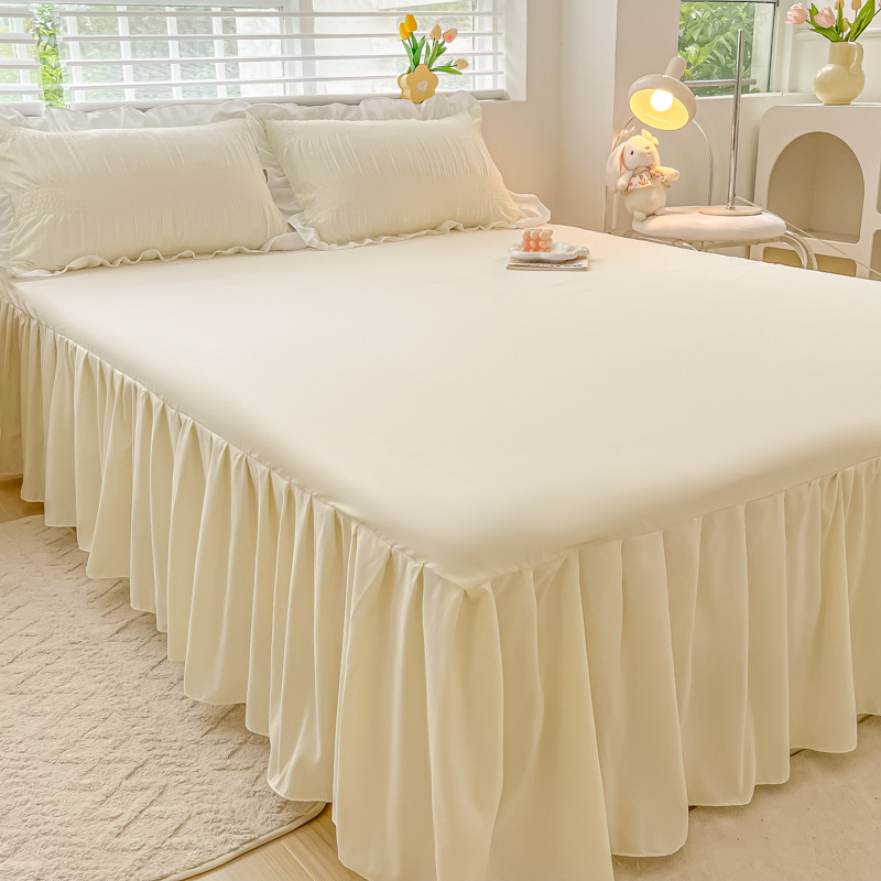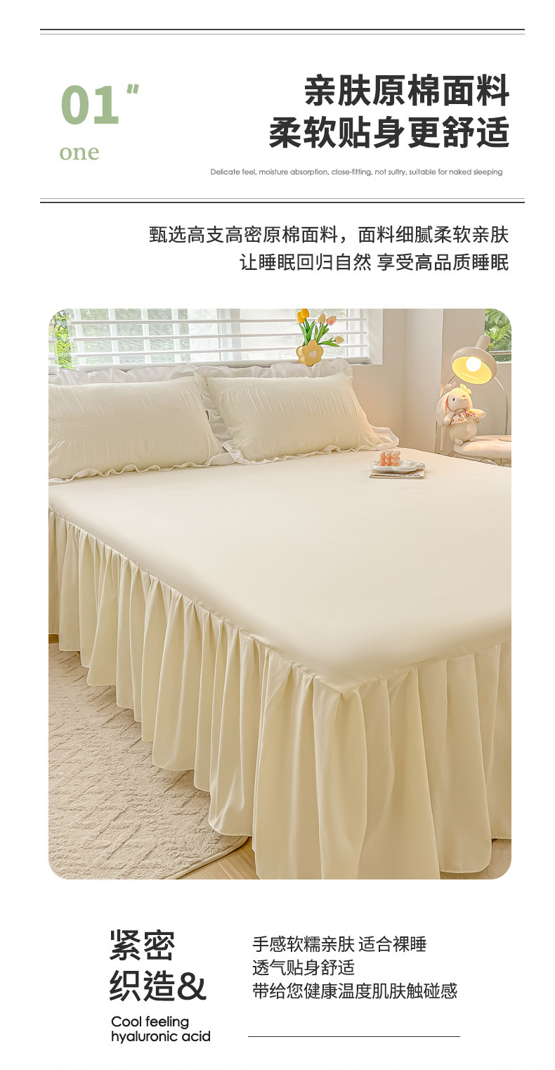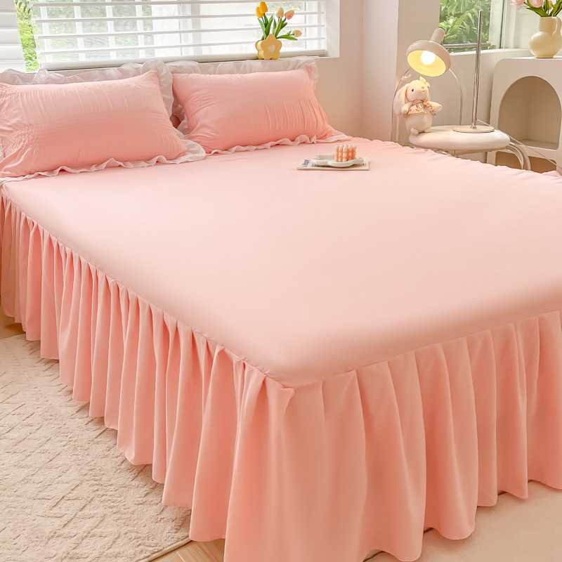 韩版公主风花边款纯棉床裙三件套ins裸睡纯色全棉床罩防滑A类床单