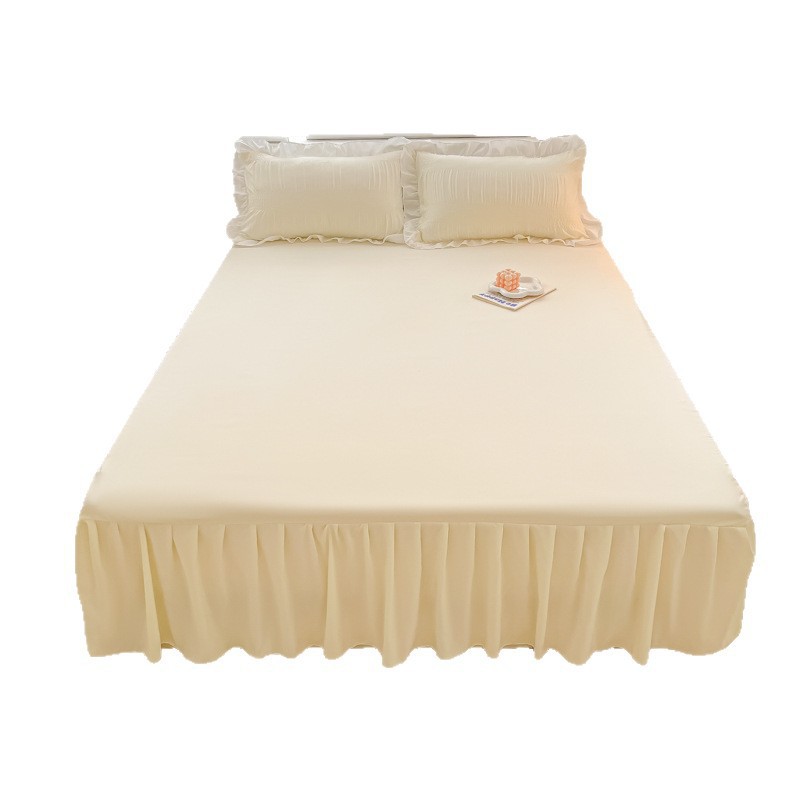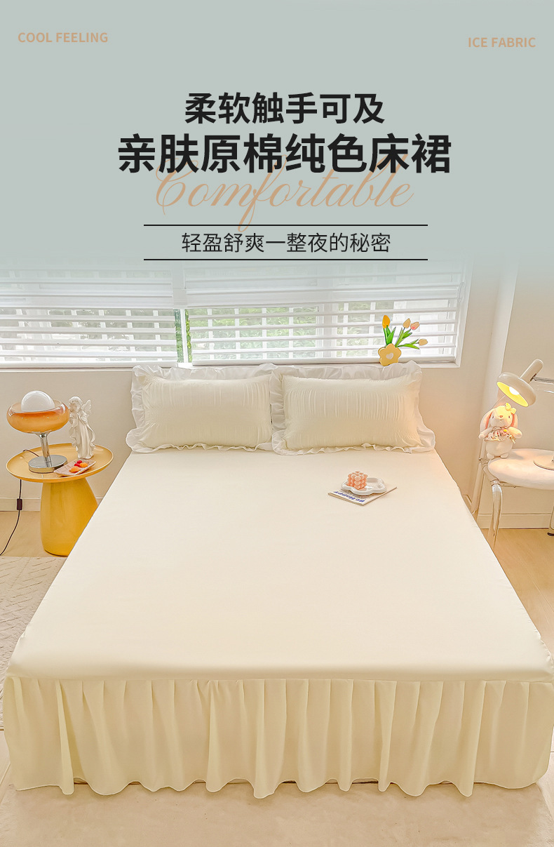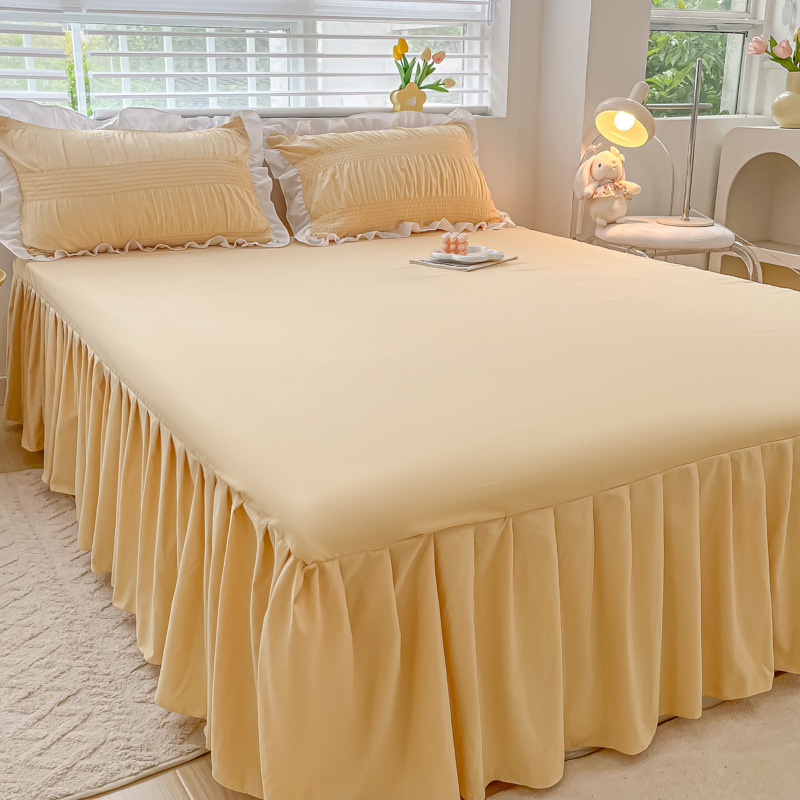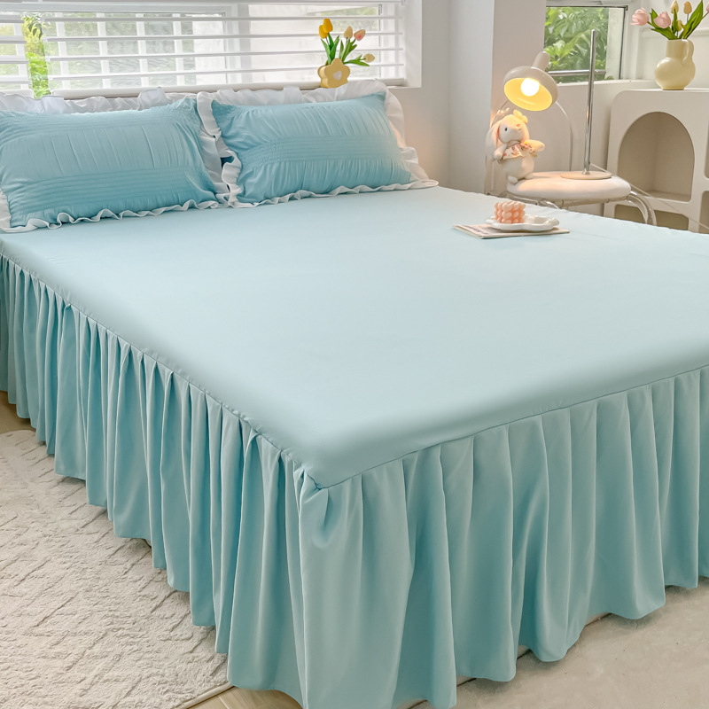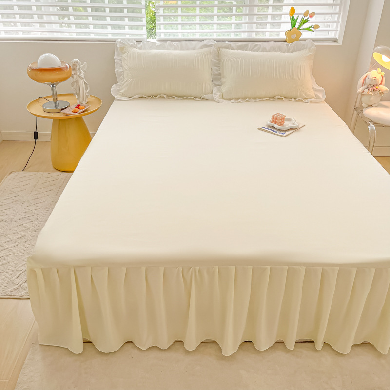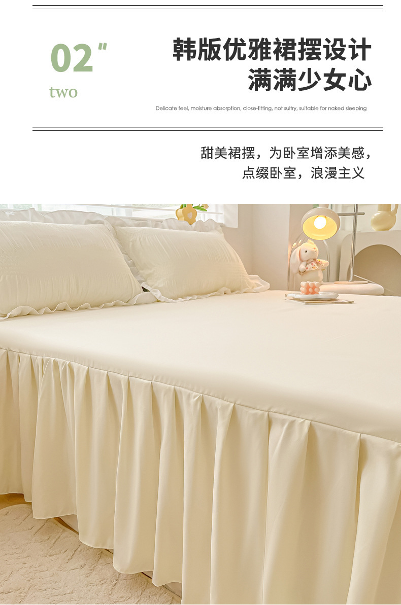 韩版公主风花边款纯棉床裙三件套ins裸睡纯色全棉床罩防滑A类床单