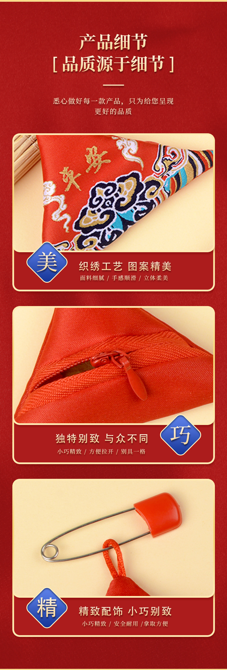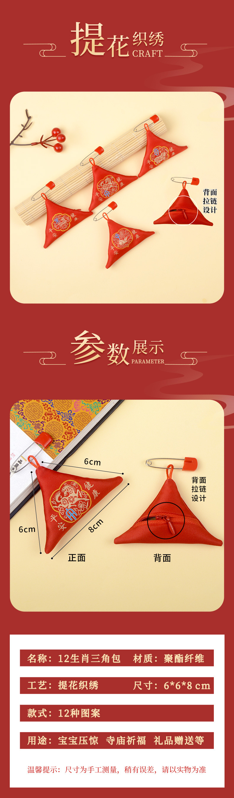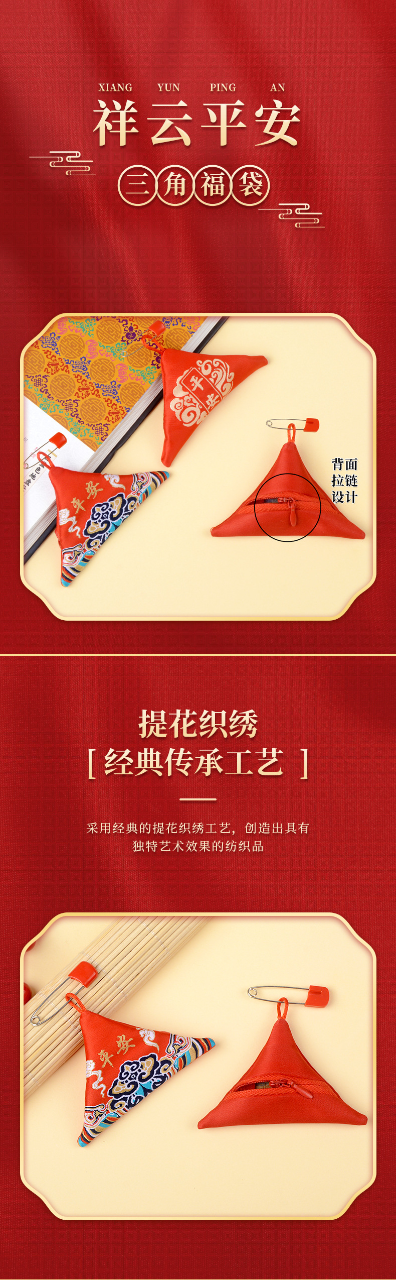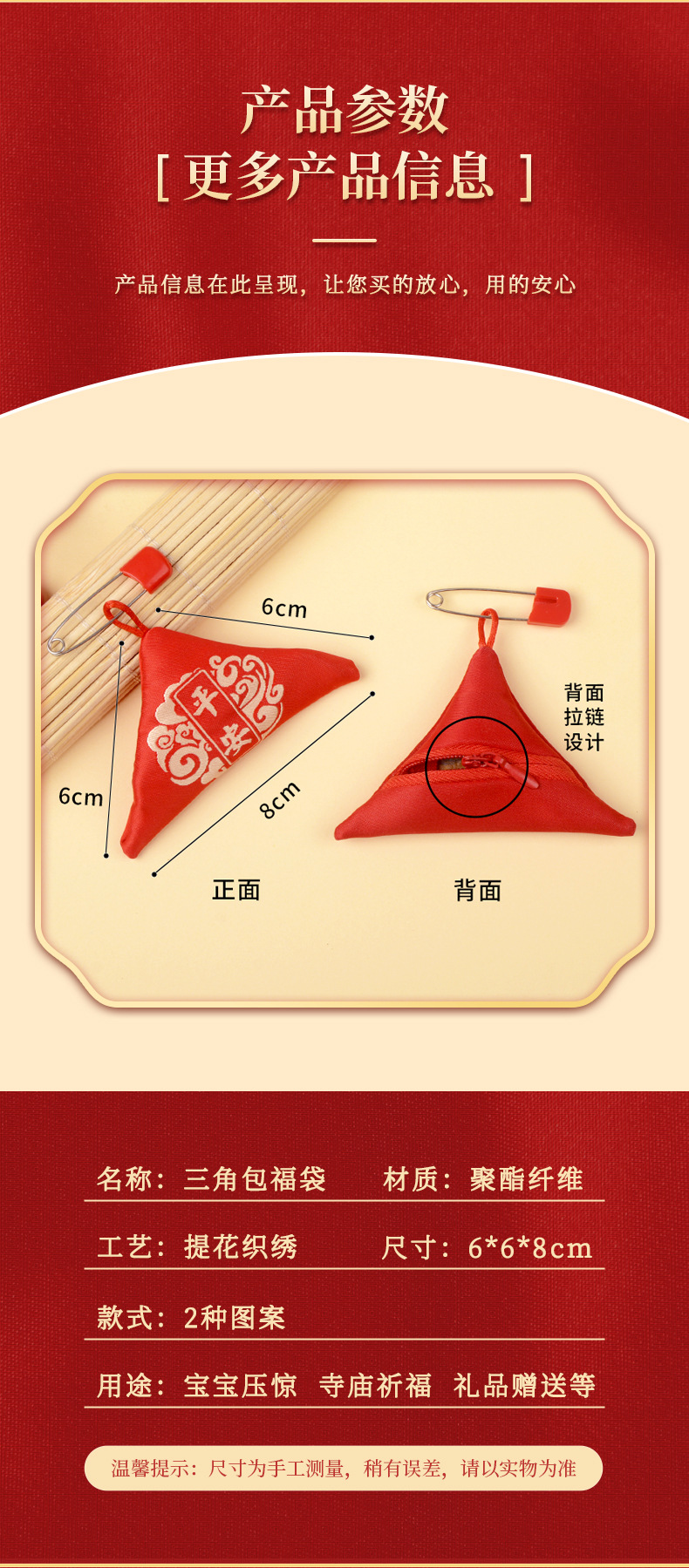 符袋别针拉链三角福袋香包三角形福宝宝祈福随身空袋香囊空袋子
