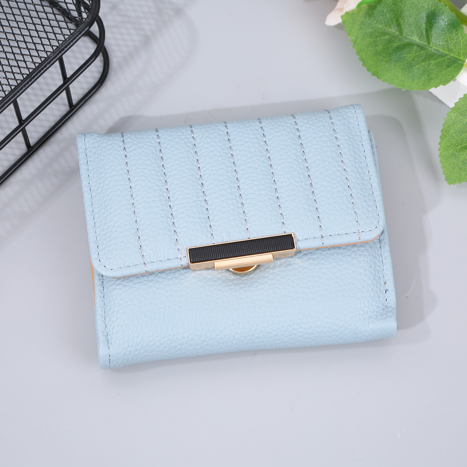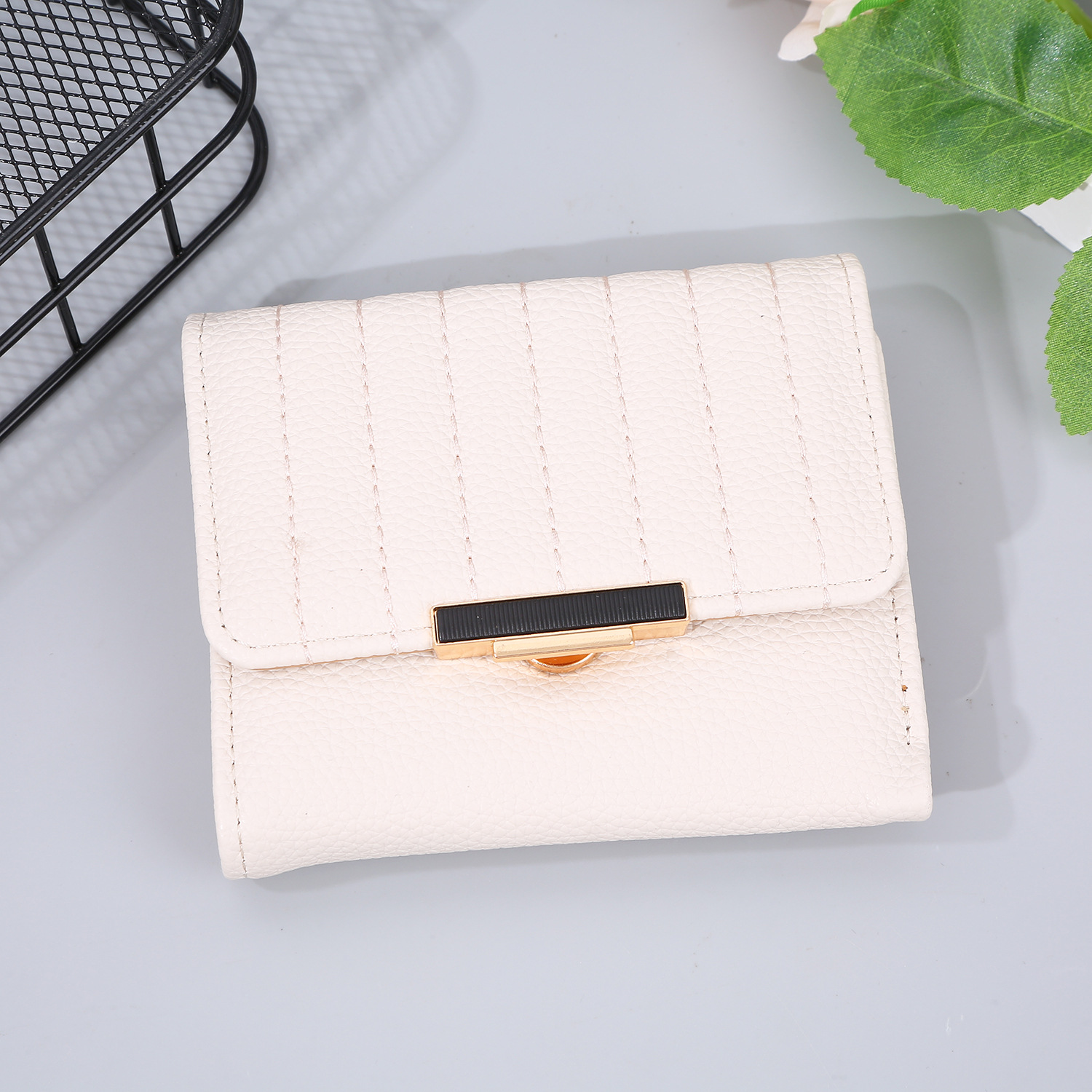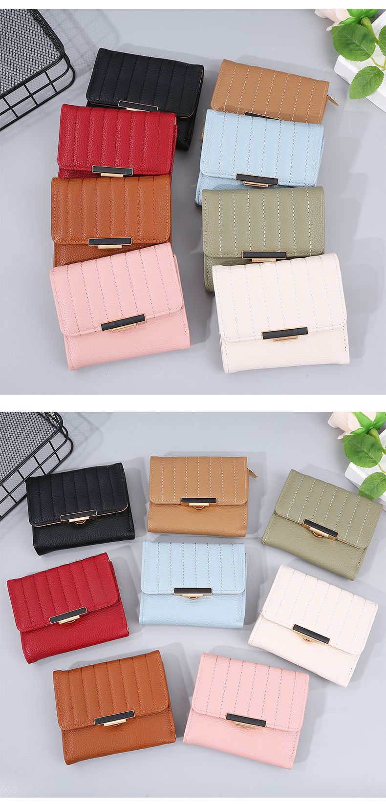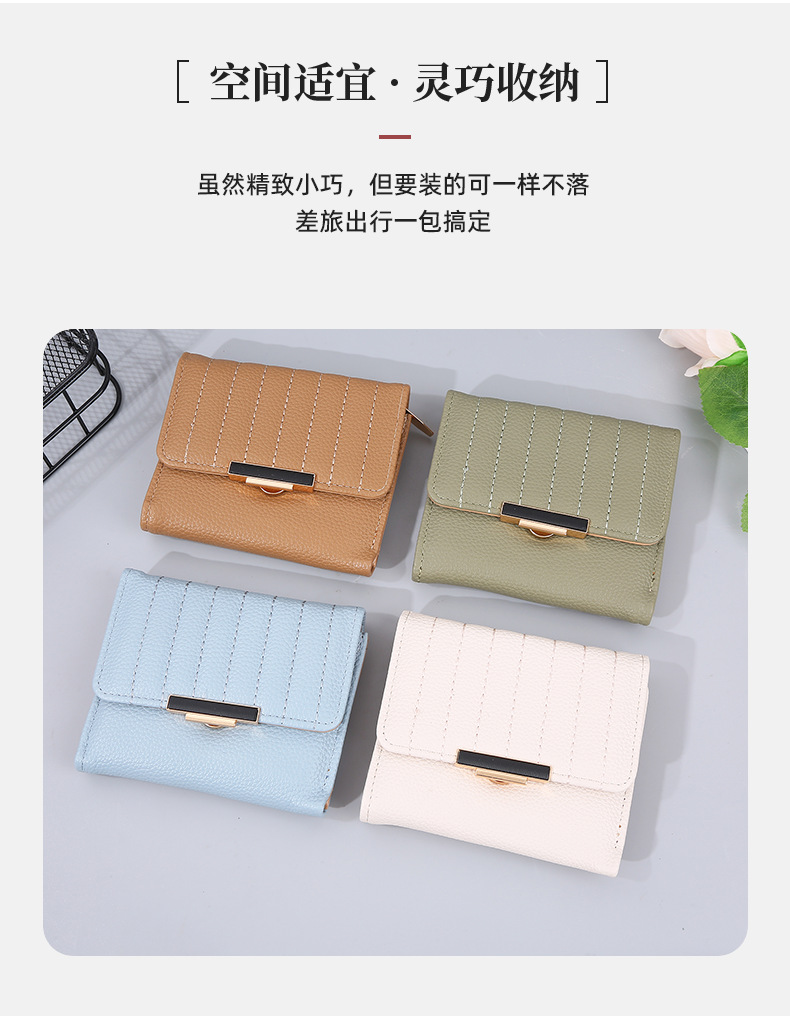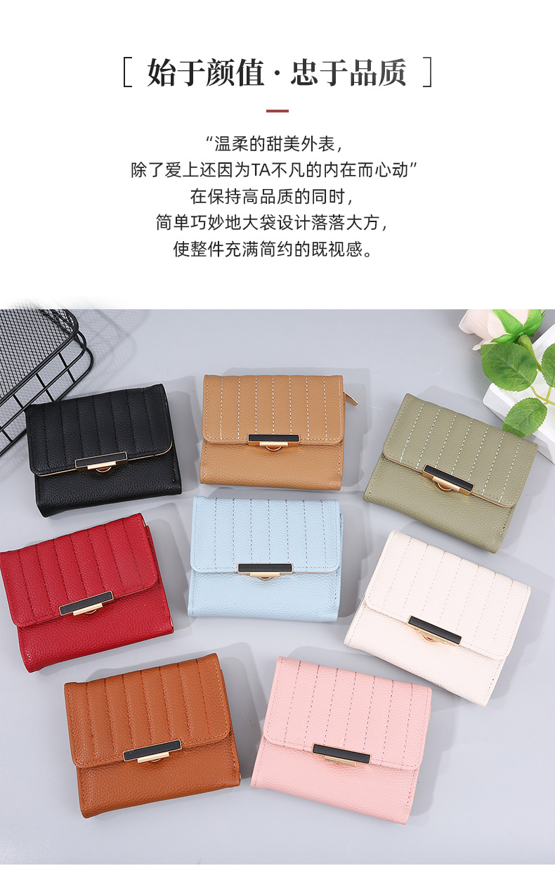跨境新款压纹车线锁扣短款钱包女简约纯色钱包短款两折钱夹女款