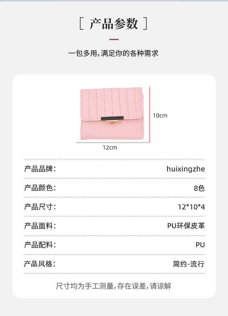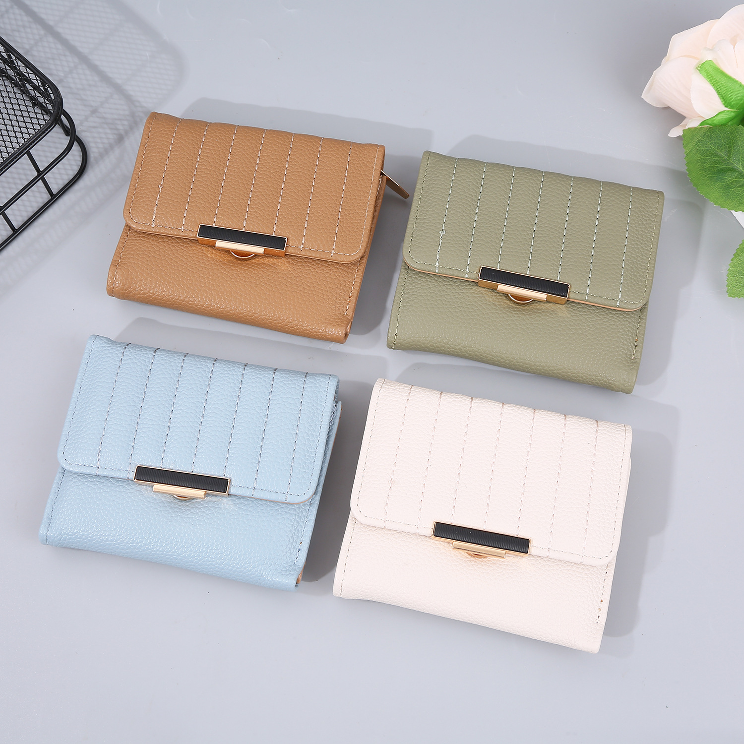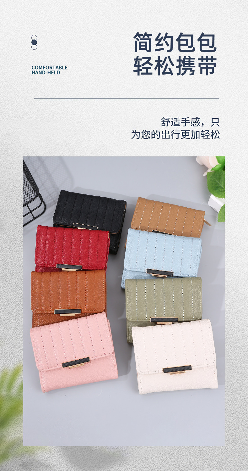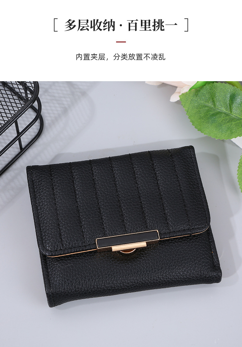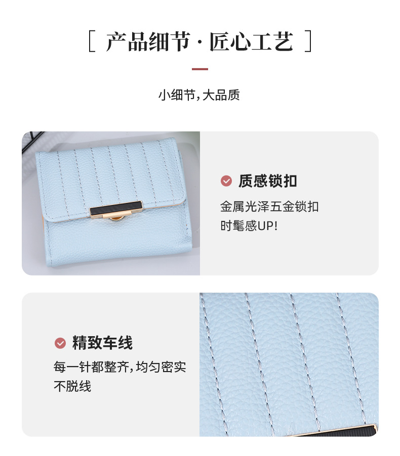 跨境新款压纹车线锁扣短款钱包女简约纯色钱包短款两折钱夹女款