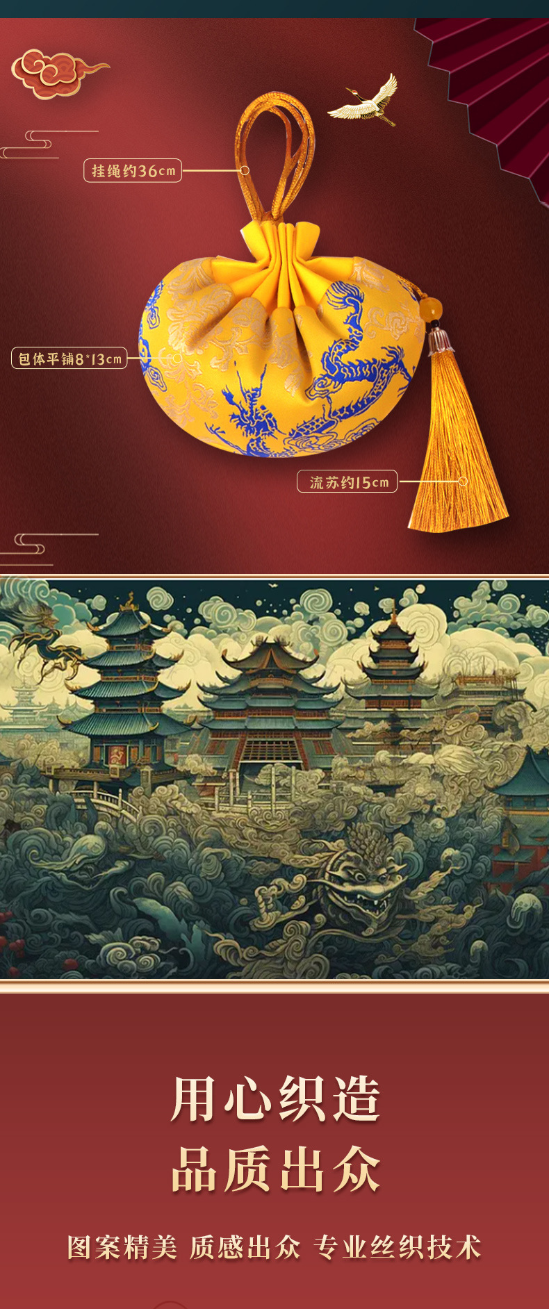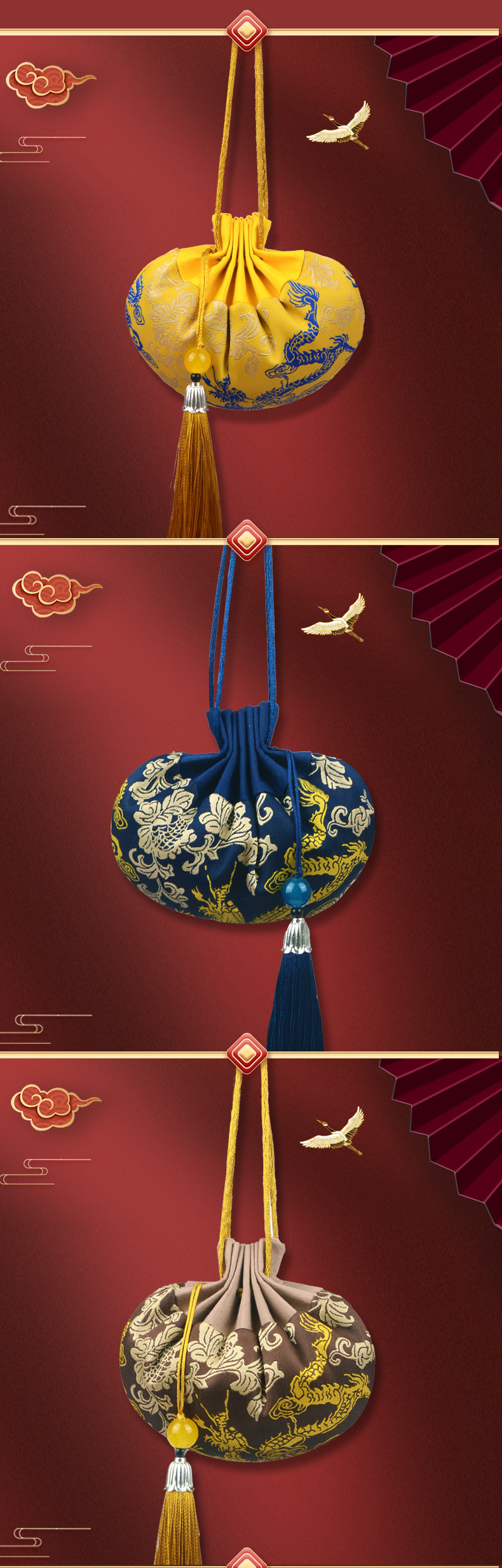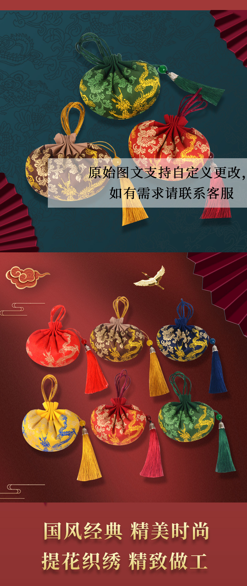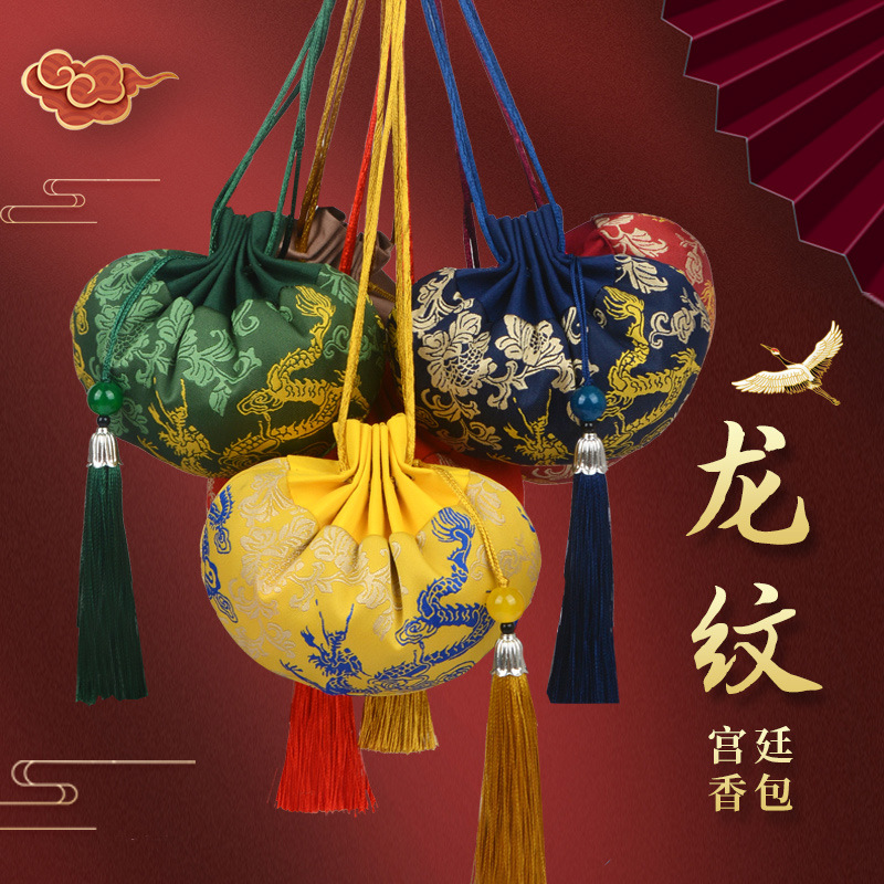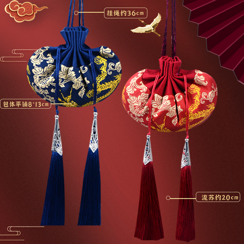 中国风香包景区流苏汉服礼品福袋随身挂件古风荷包龙纹香囊空袋