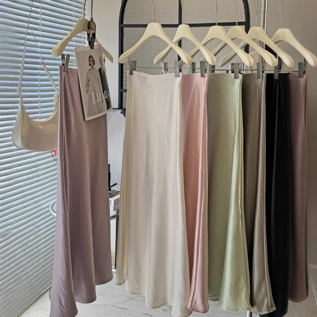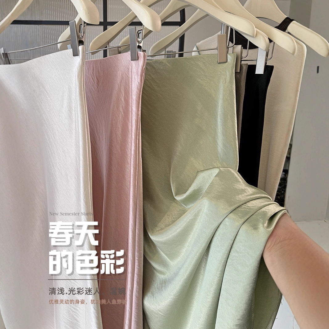 醋酸缎面鱼尾半身裙女2025气质简约垂感显瘦包臀a字中长裙子