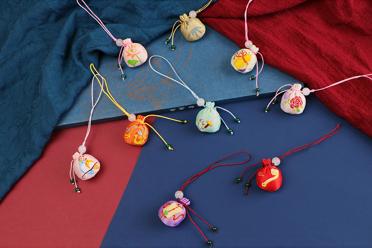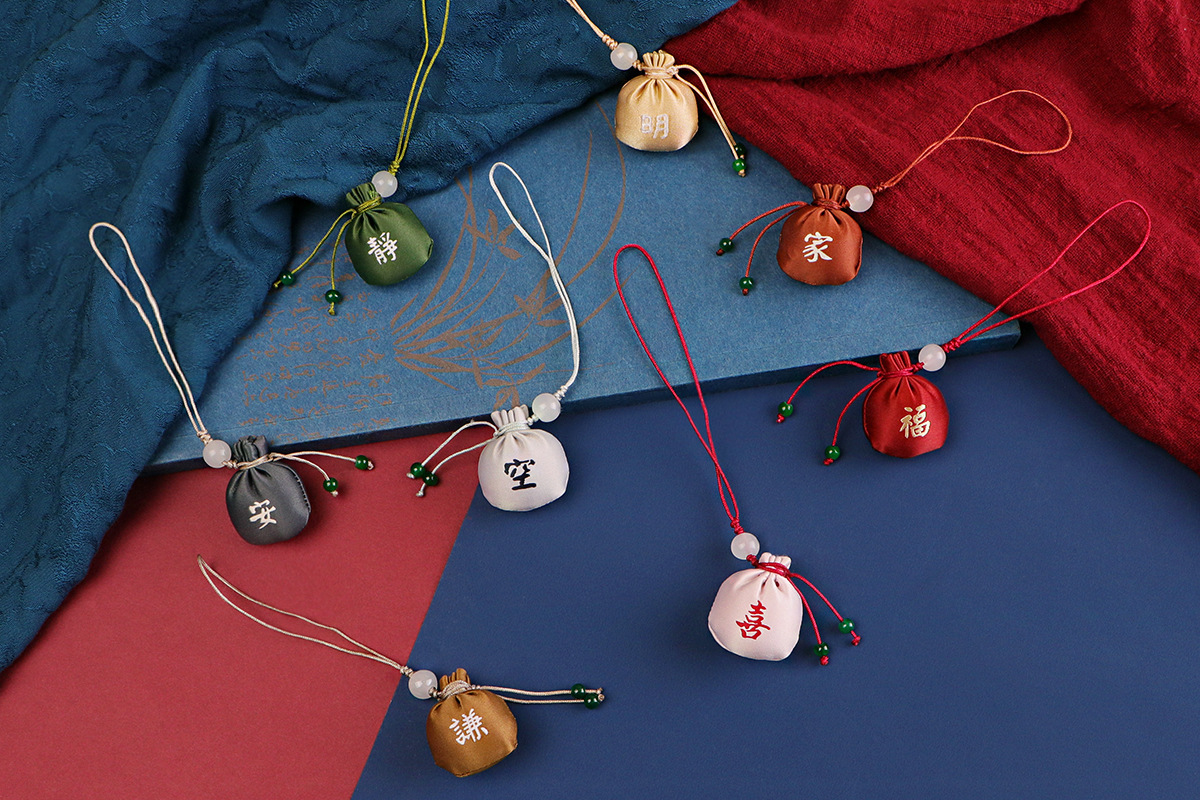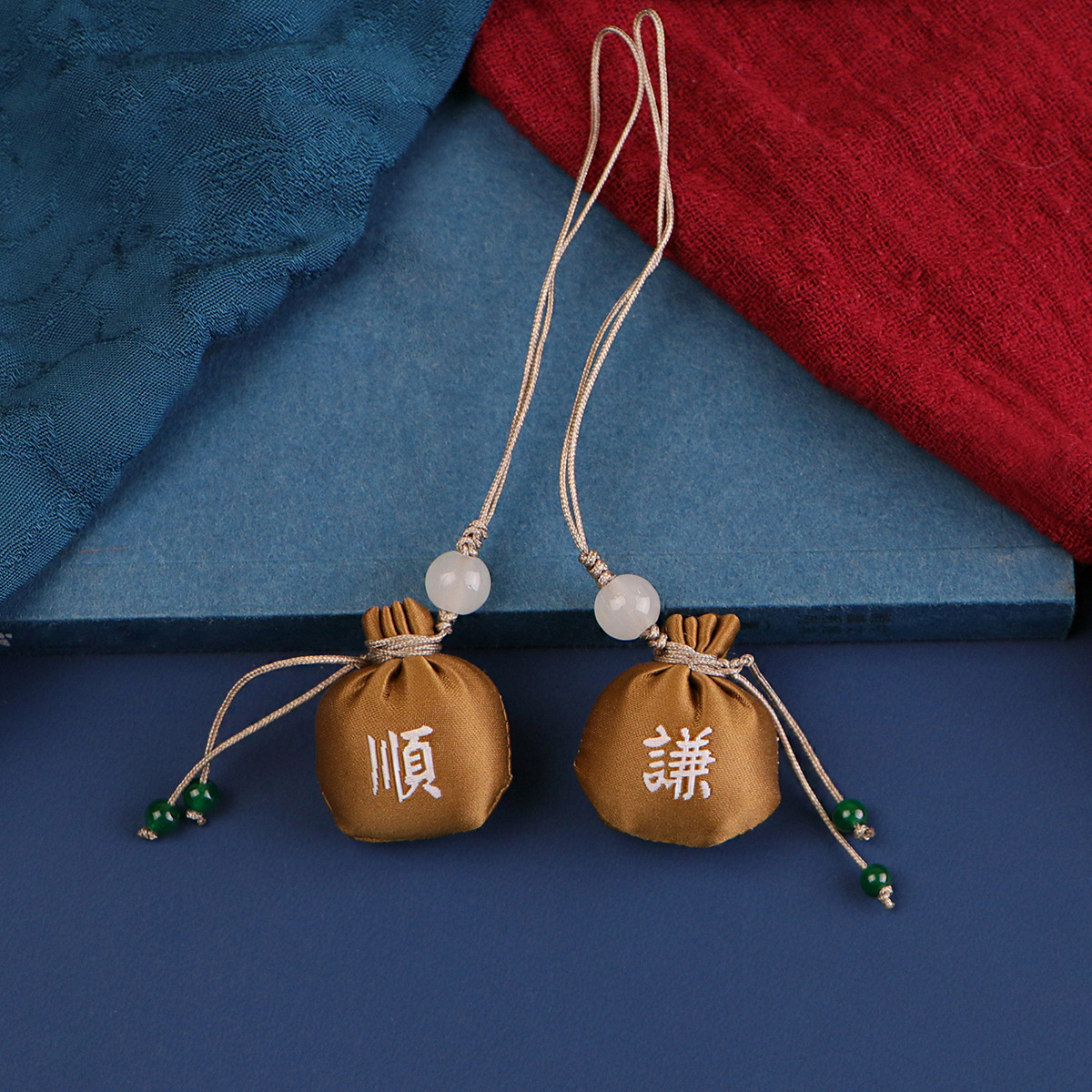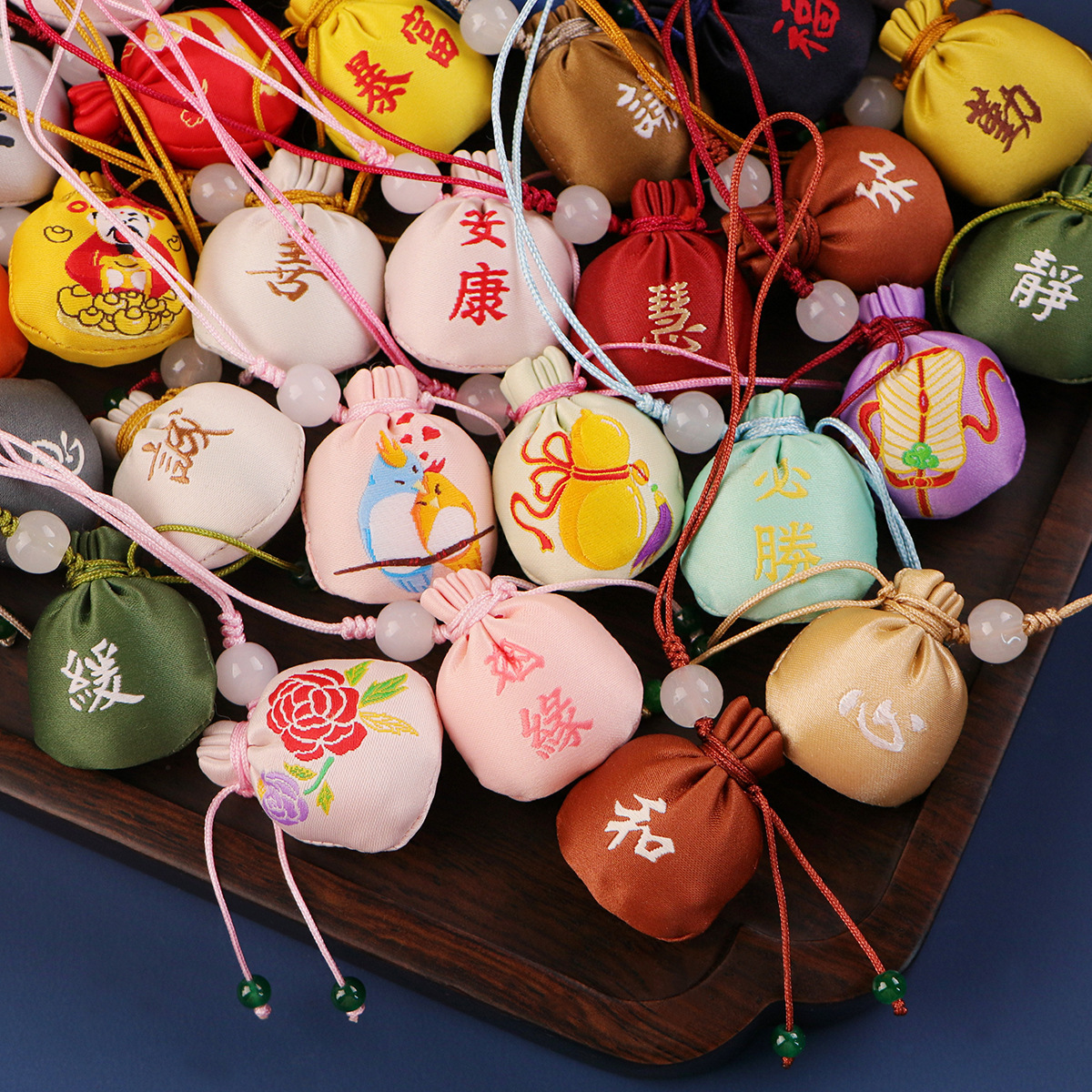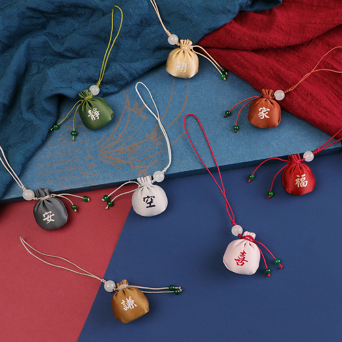 迷你蓝风铃小圆球香包香料香囊手机吊坠福袋随身刺绣香袋车载挂件