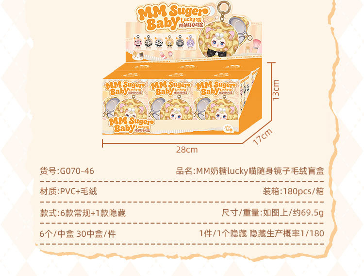 mm奶糖Lucky喵盲盒创意随身镜子喵喵盲盒卡通可爱萌趣挂件盲盒