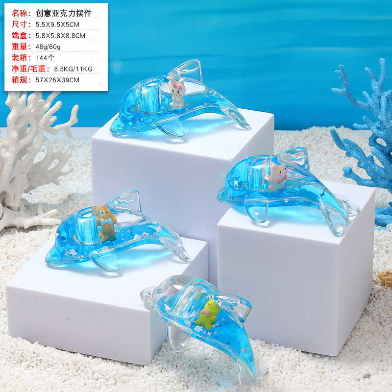 海洋方形入油城堡摆件新奇特夜光笔筒学生桌面解压油滴桌面流沙瓶