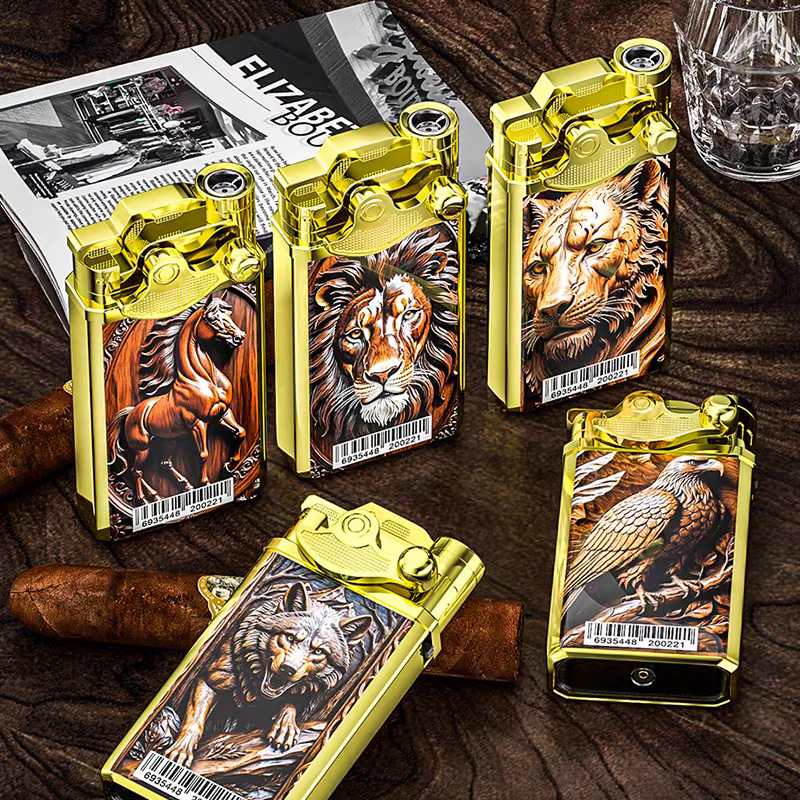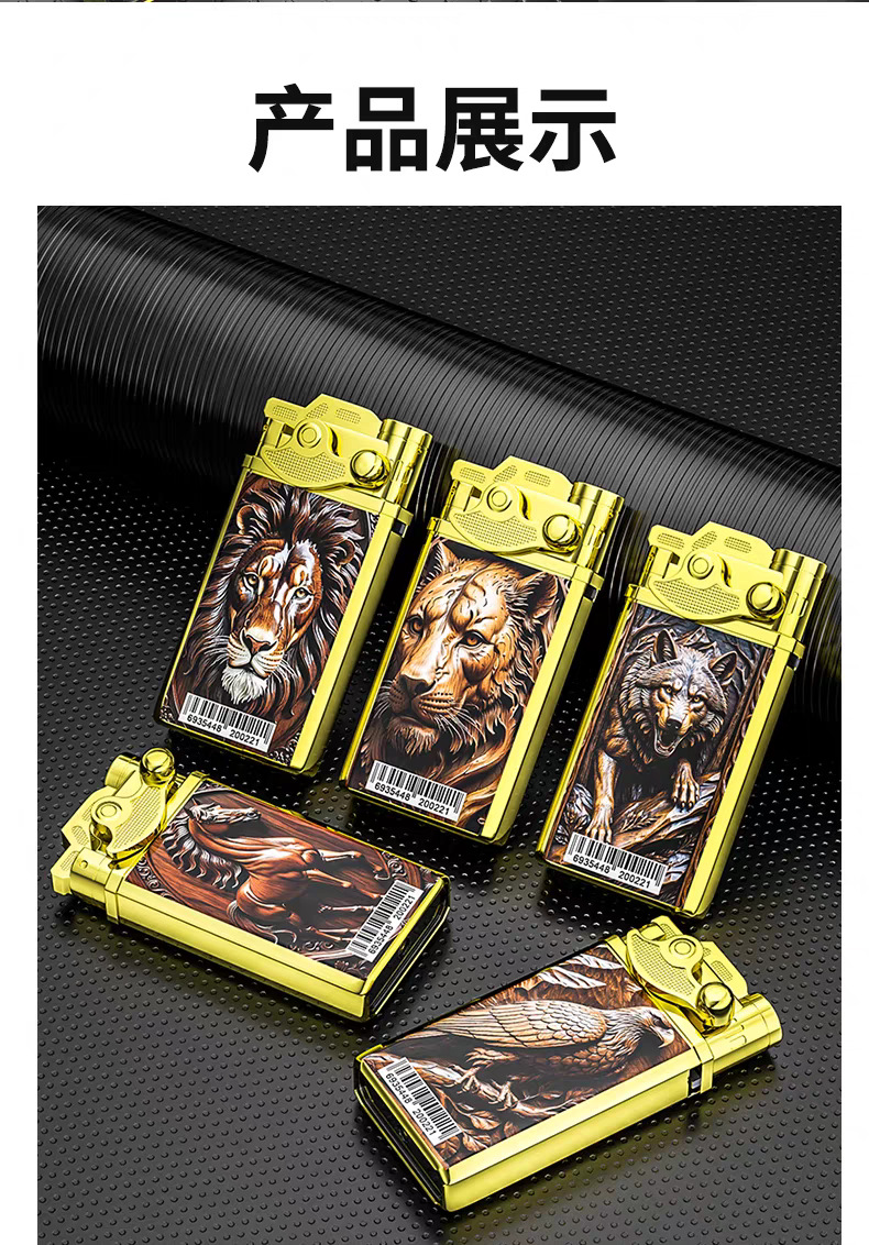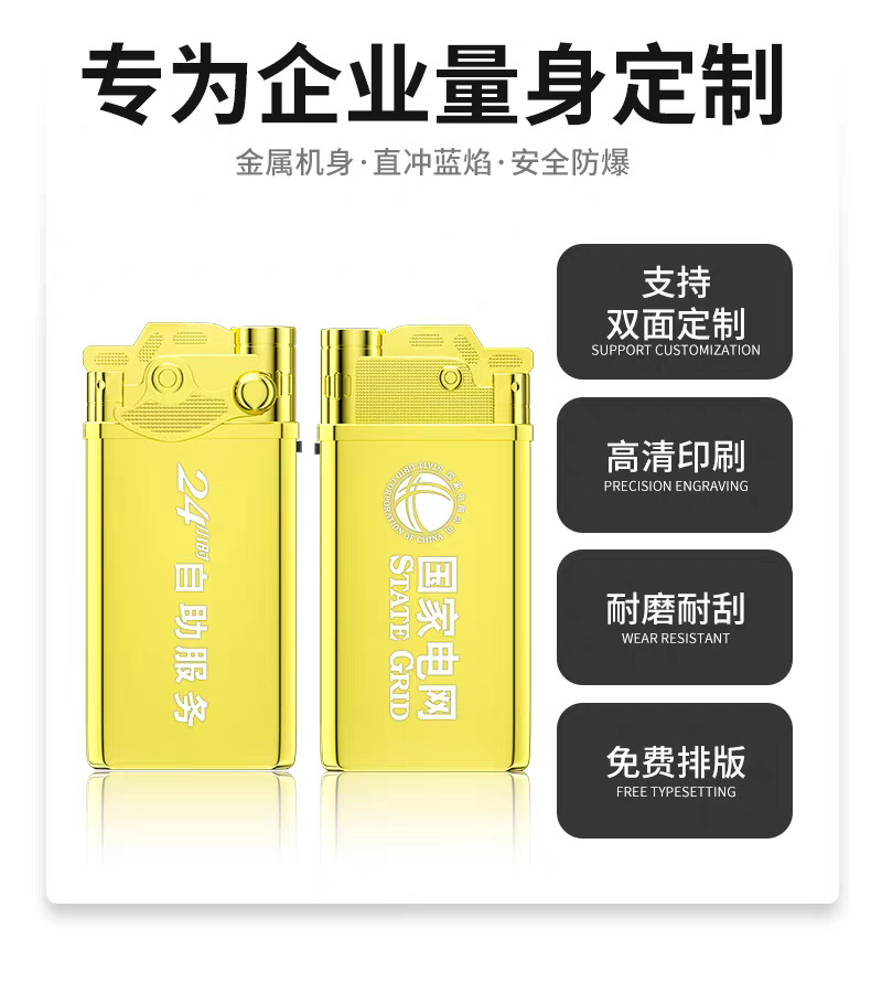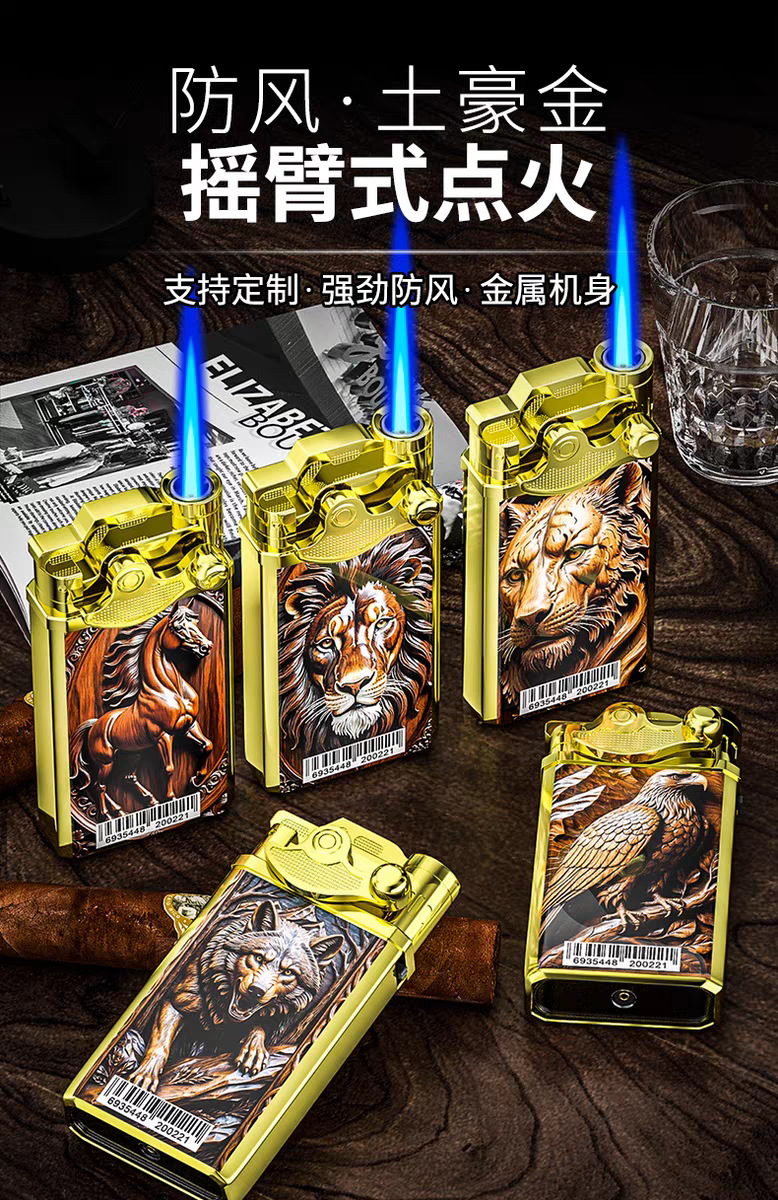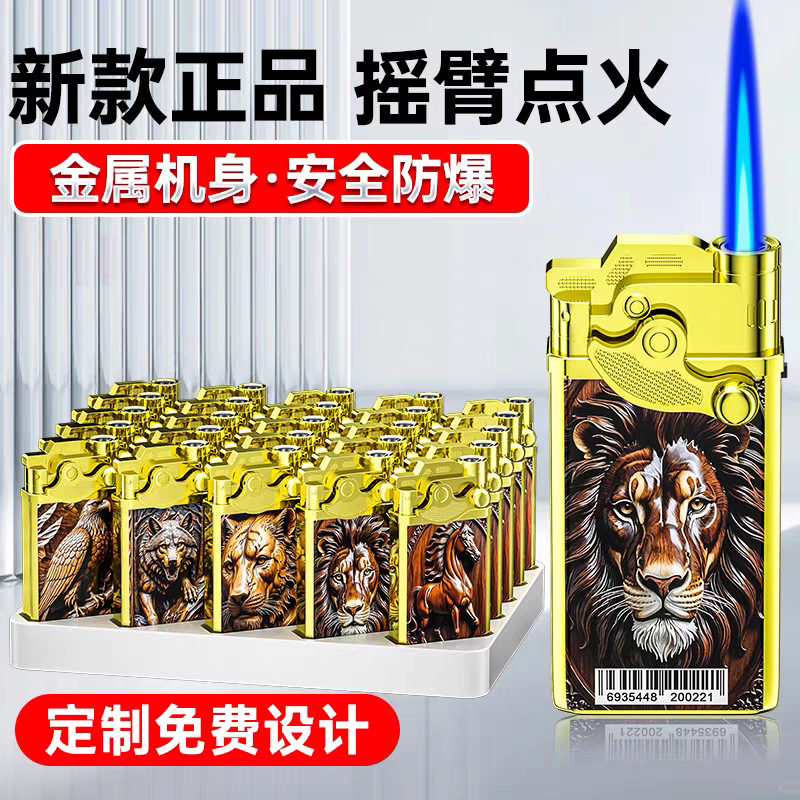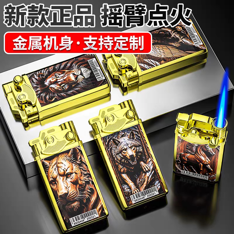 高端男士土豪金属机械电话摇臂防风打火机耐用家用刻字印刷广告款