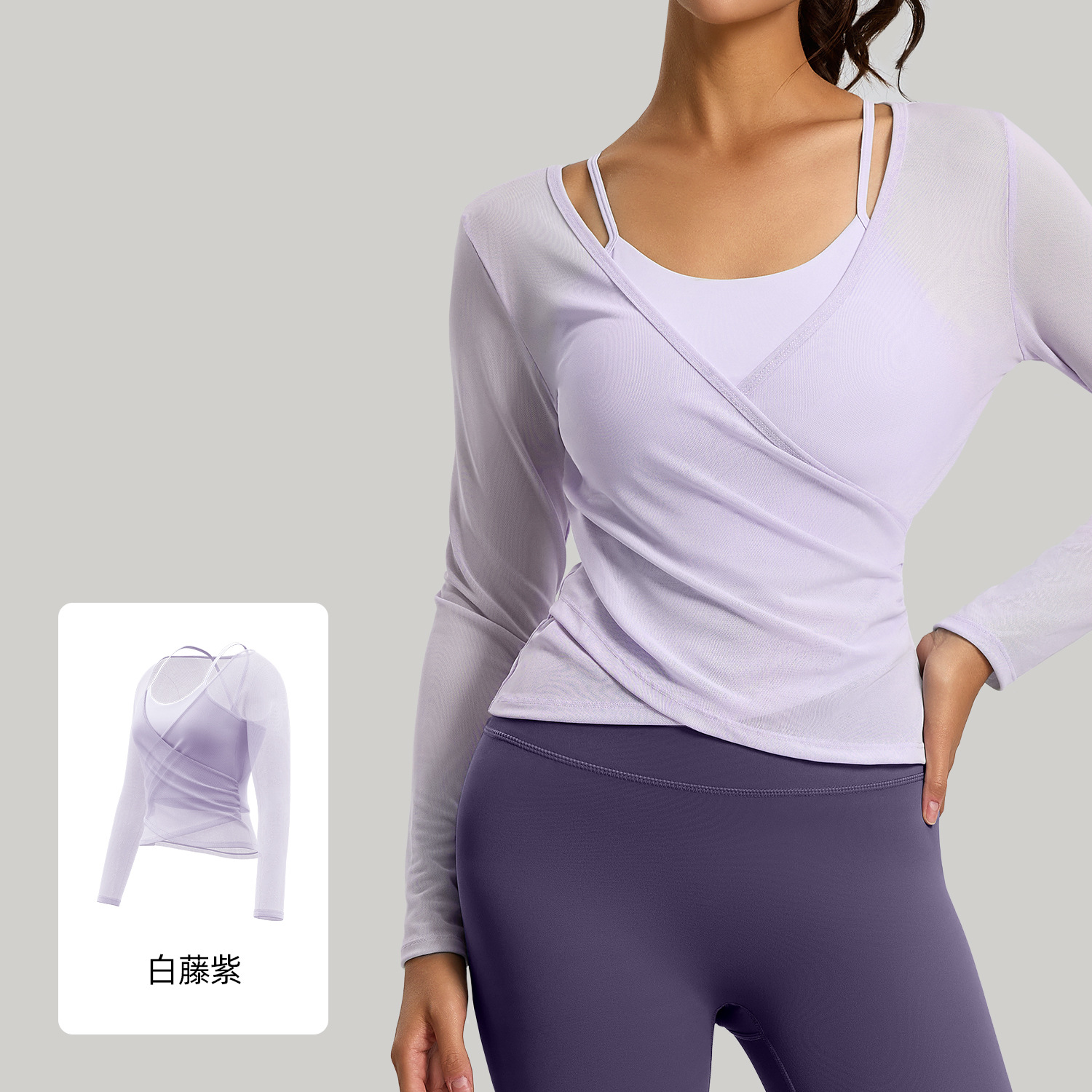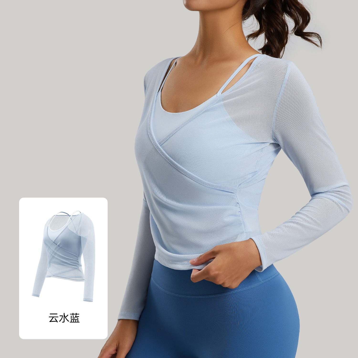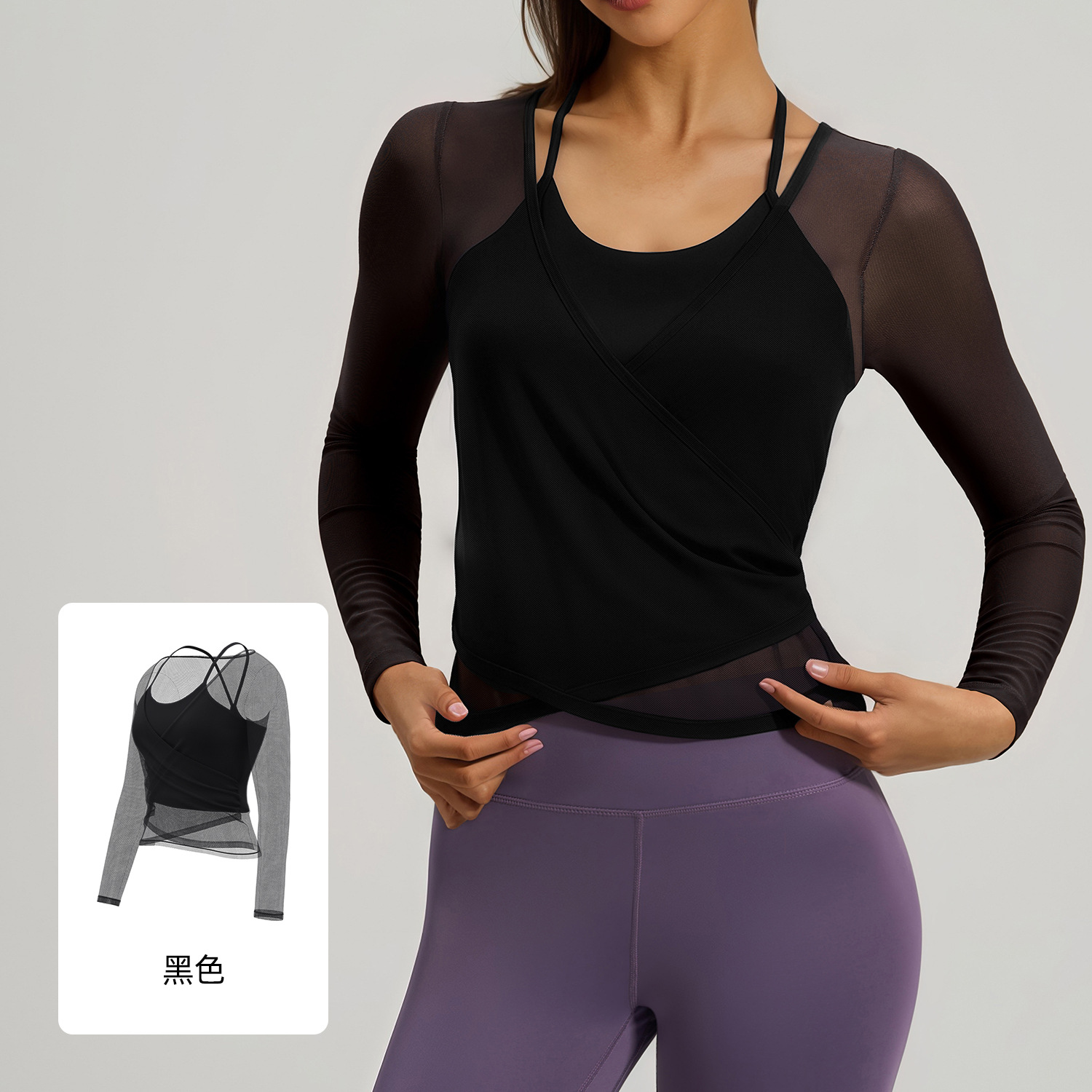 聚衣堂新款美背网纱透气瑜伽服可拆两件套运动罩衫长袖上衣女