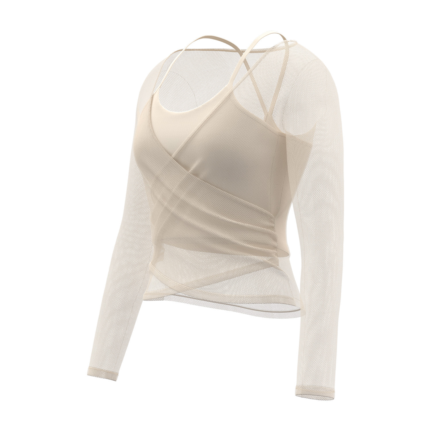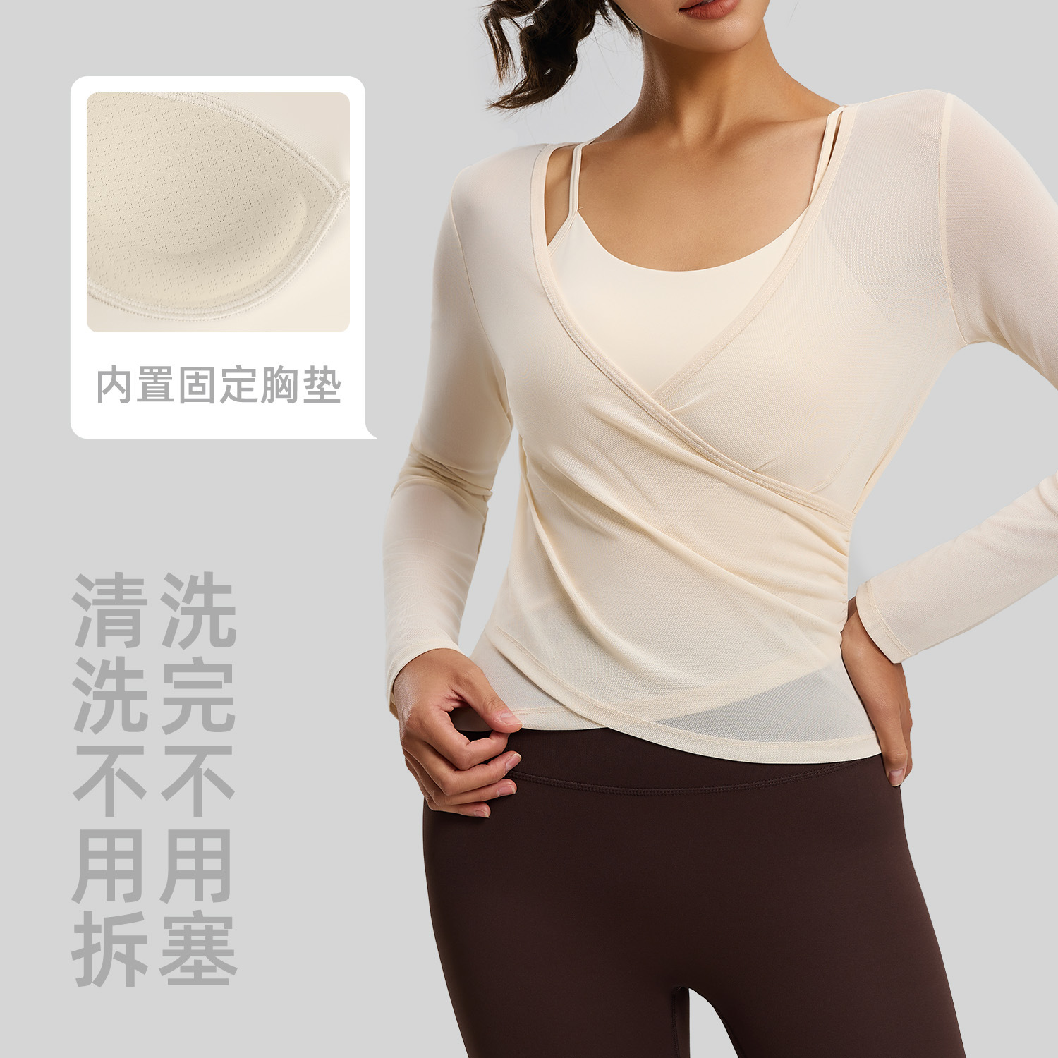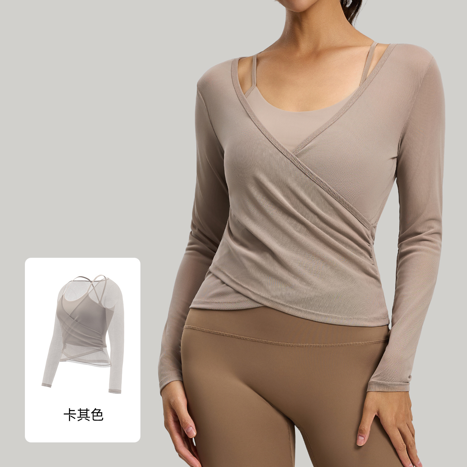 聚衣堂新款美背网纱透气瑜伽服可拆两件套运动罩衫长袖上衣女
