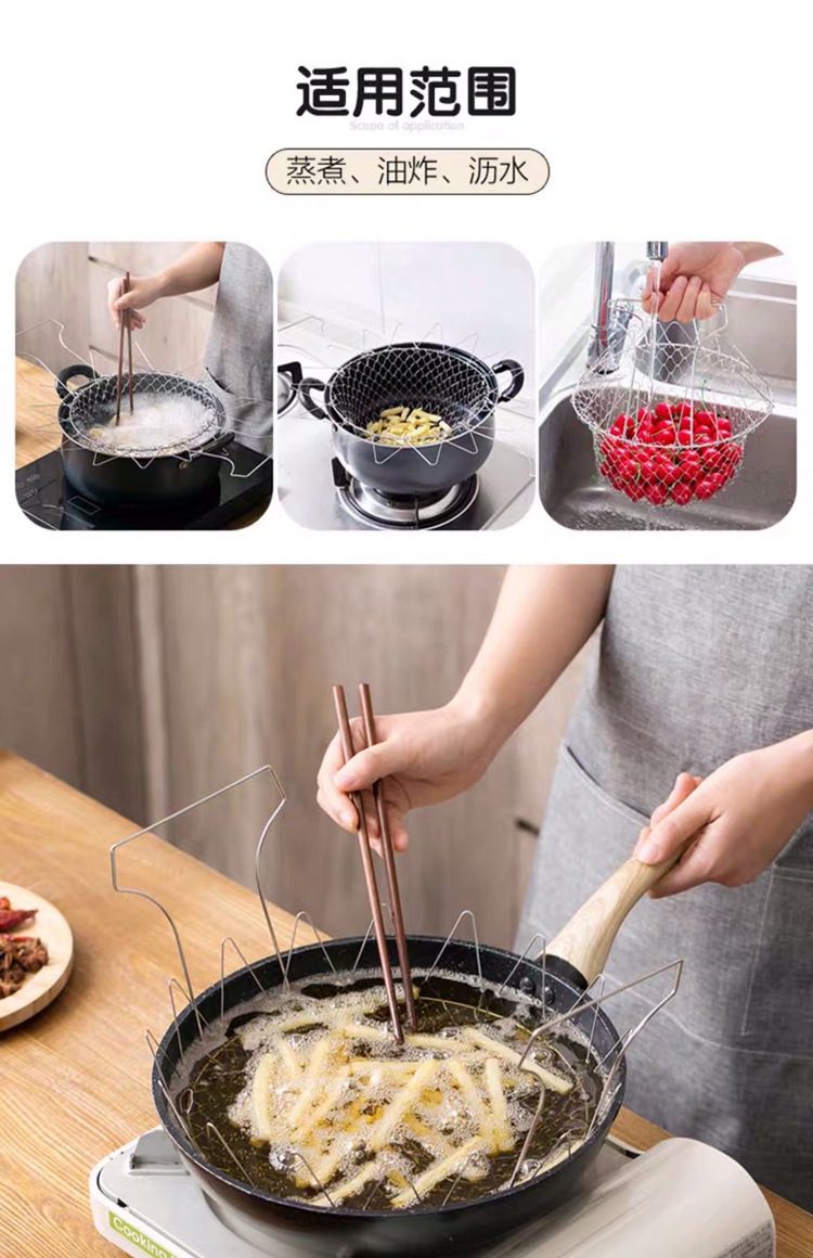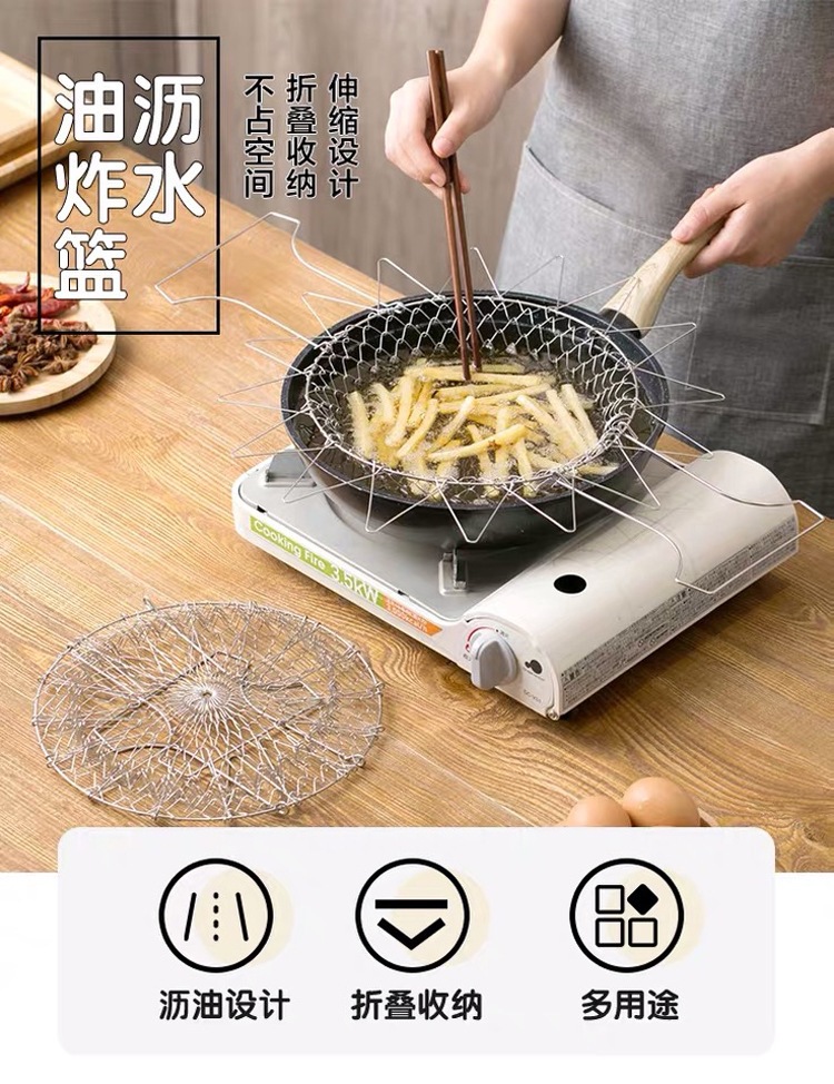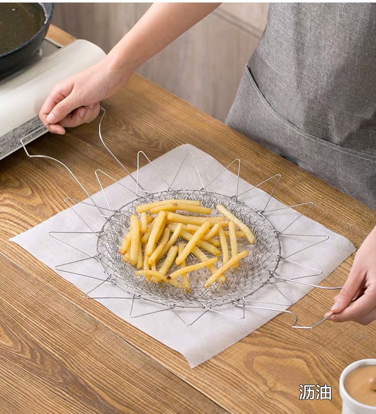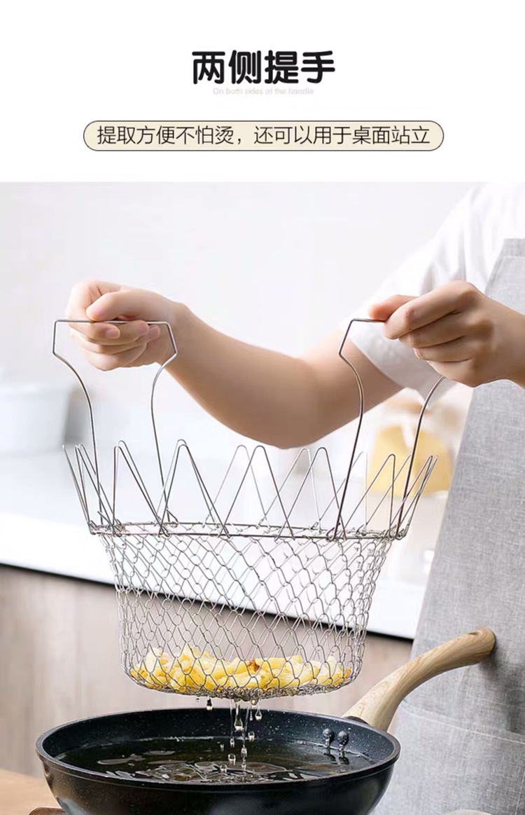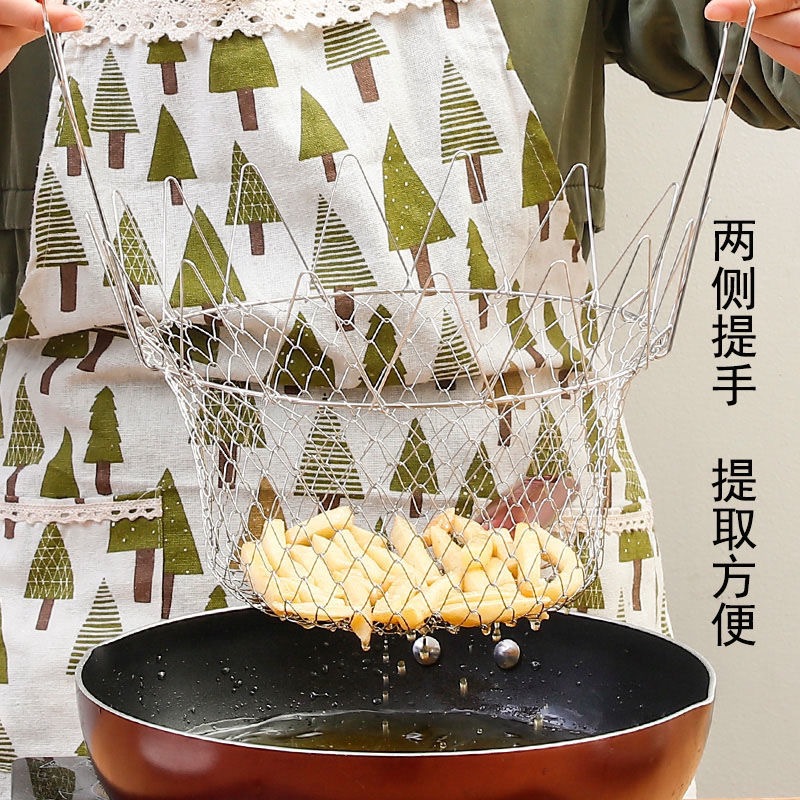 304不锈钢折叠油炸网篮薯条小吃伸缩滤油网过滤洗菜沥水篮煮食篮