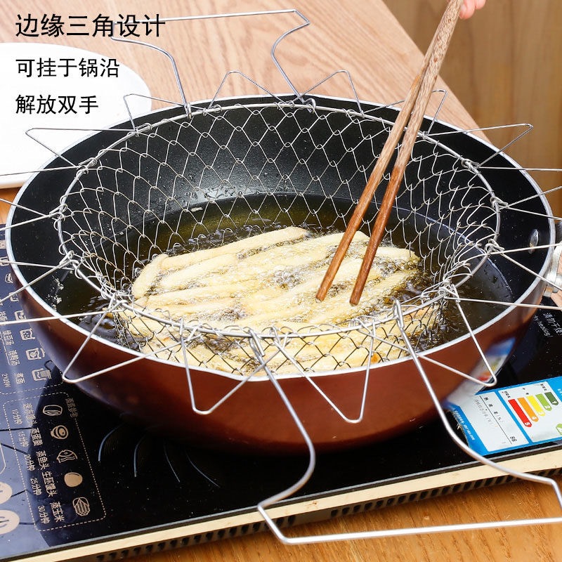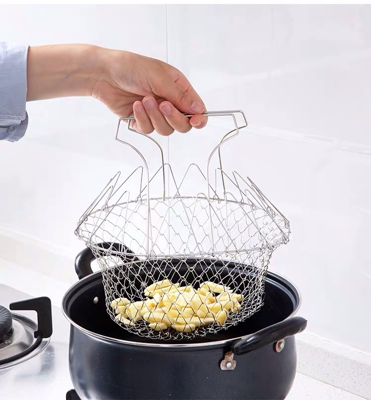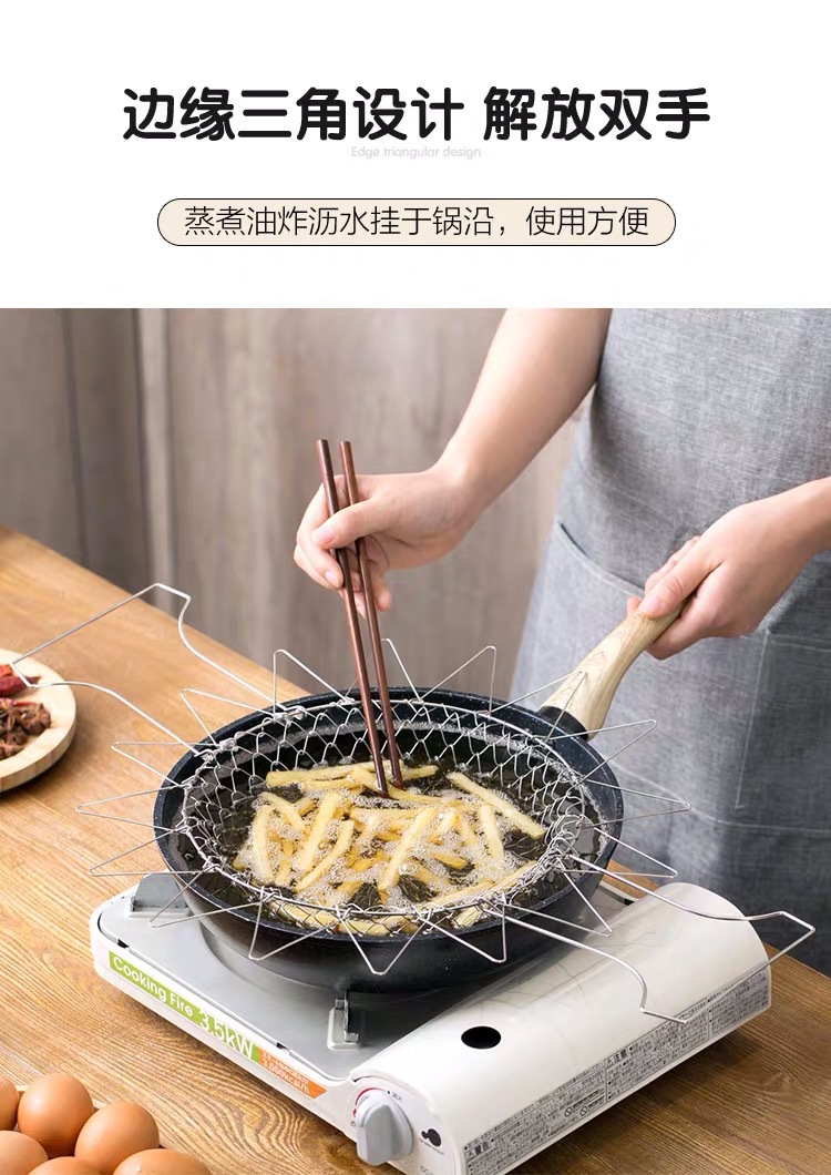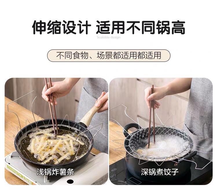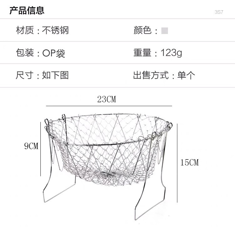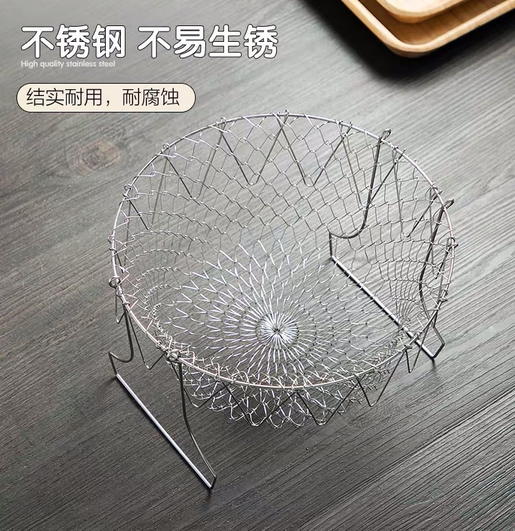 304不锈钢折叠油炸网篮薯条小吃伸缩滤油网过滤洗菜沥水篮煮食篮