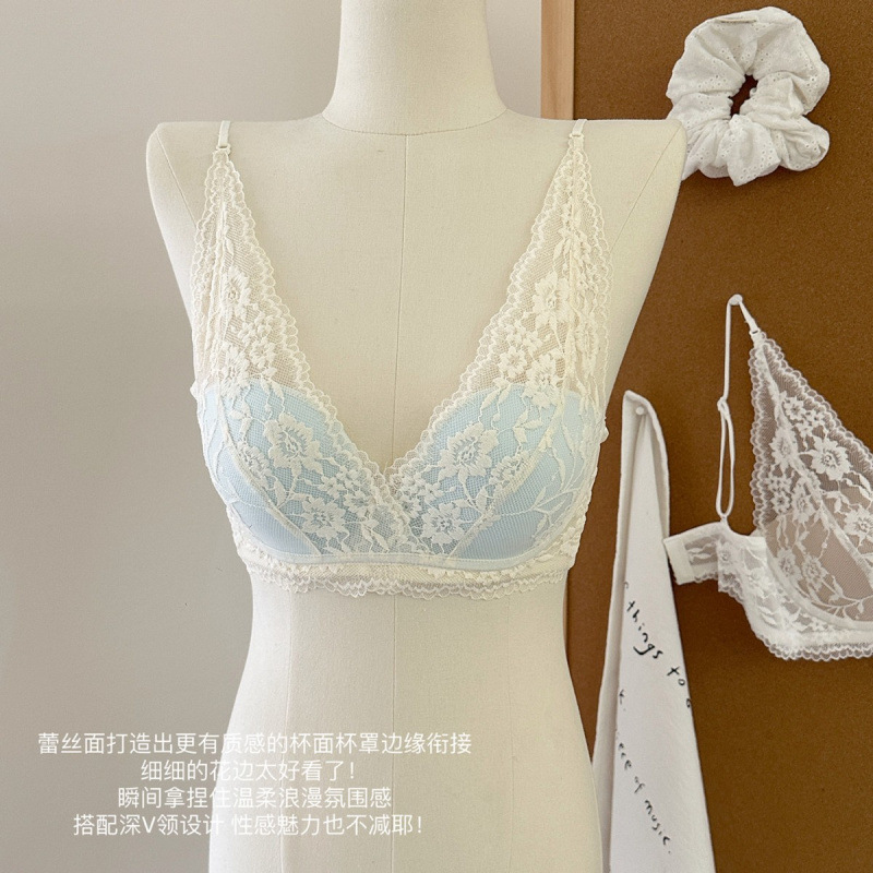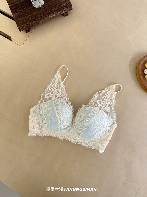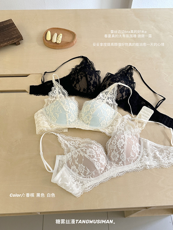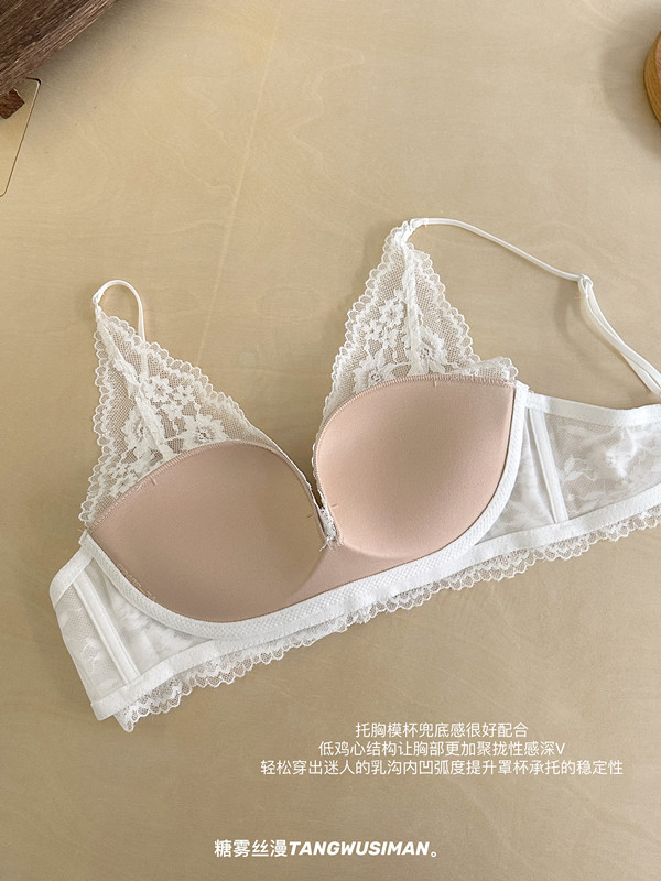 原版法式蕾丝性感内衣女士小胸聚拢显大无钢圈防下垂收副乳纯欲文