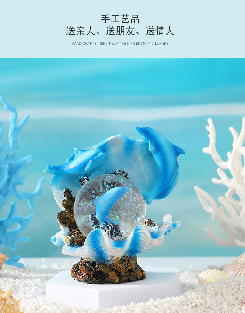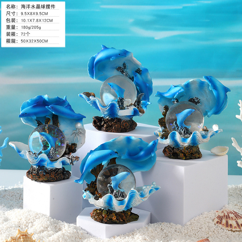 海豚贝壳水晶球海洋系列桌面摆件树脂工艺品小号水晶球礼物礼品