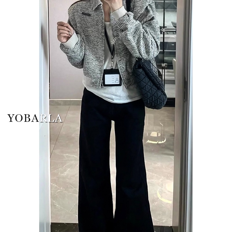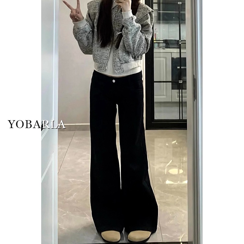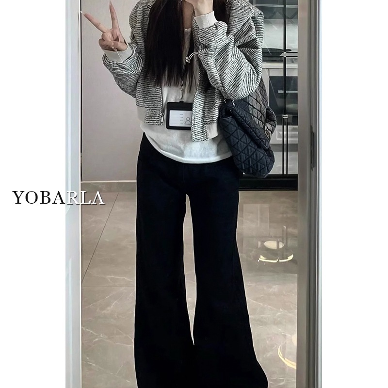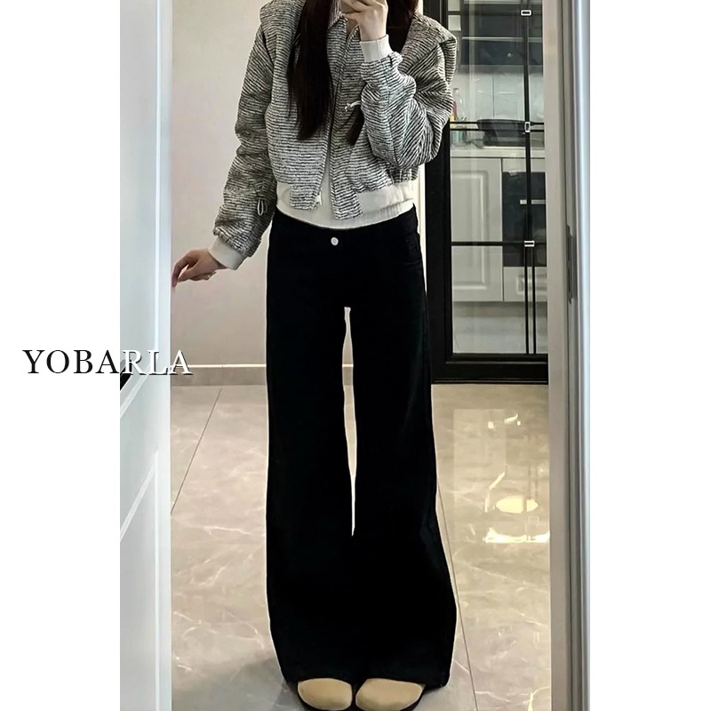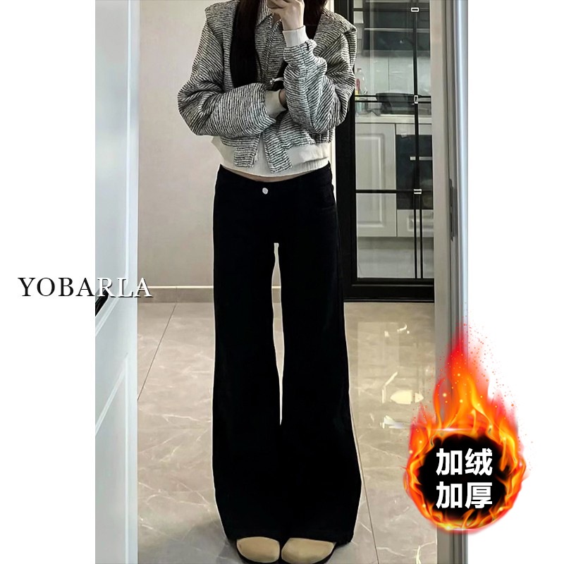 黑色微喇牛仔裤女冬季加绒大码胖mm弹力显瘦梨型身材阔腿马蹄裤子