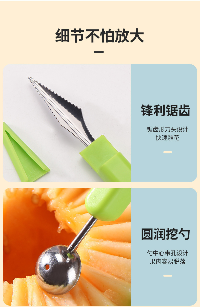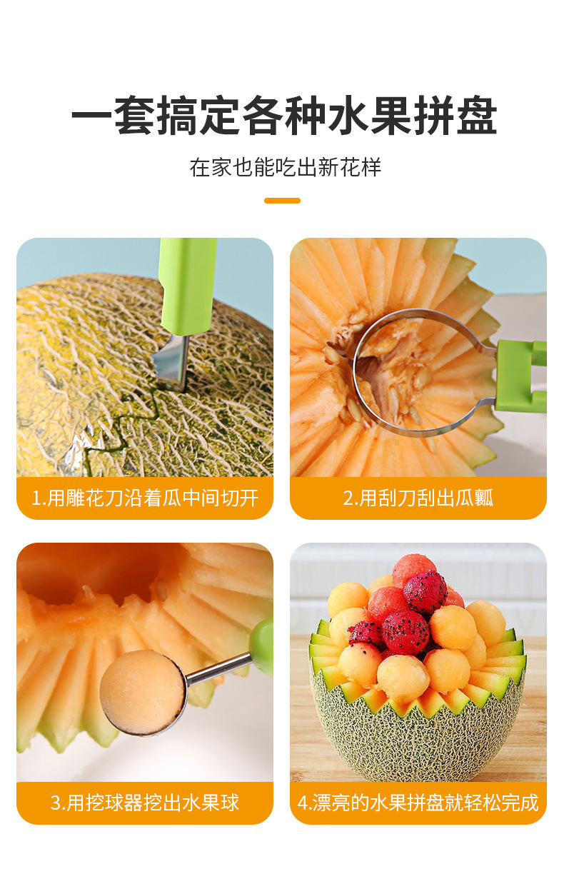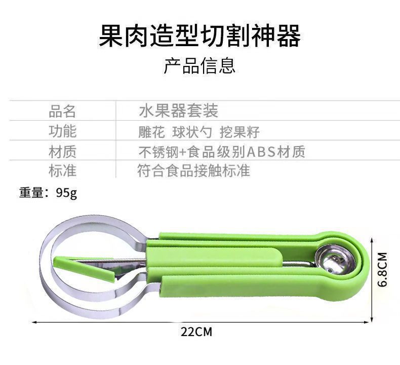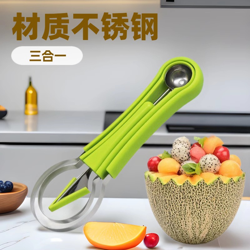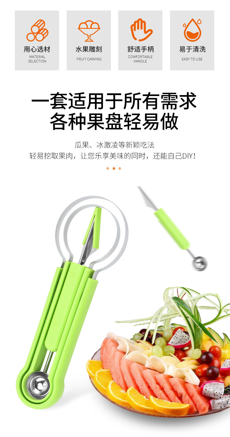三合一水果挖球器取瓤器开西瓜挖球勺水果取肉工具雕花刀去果神器