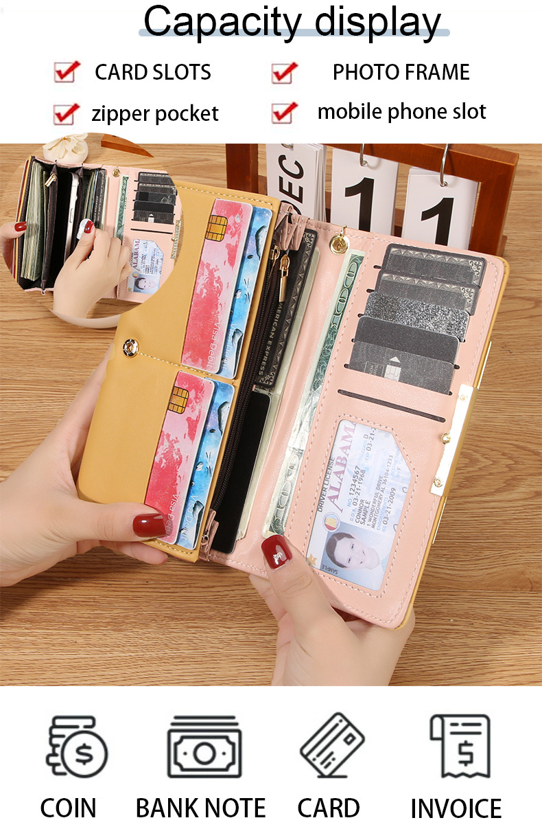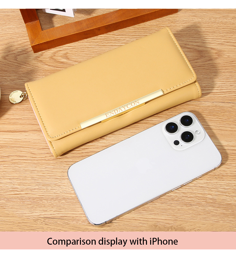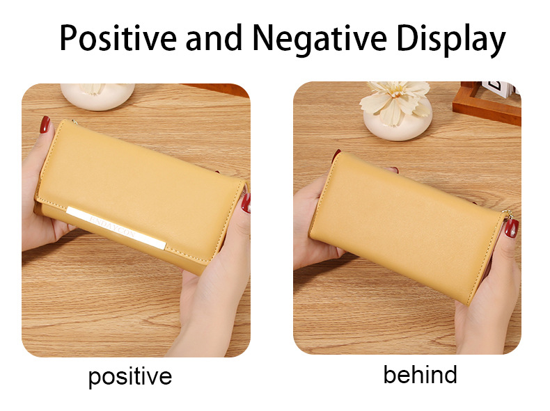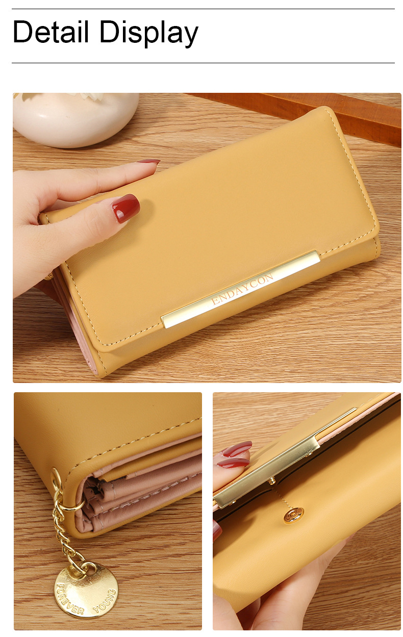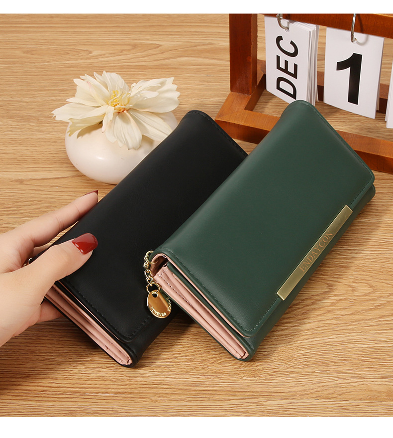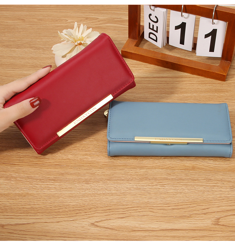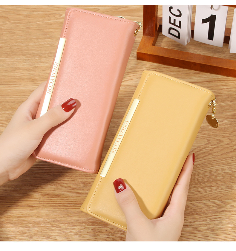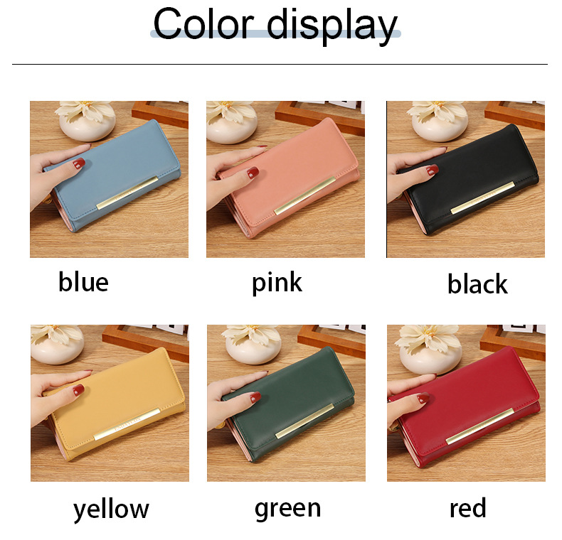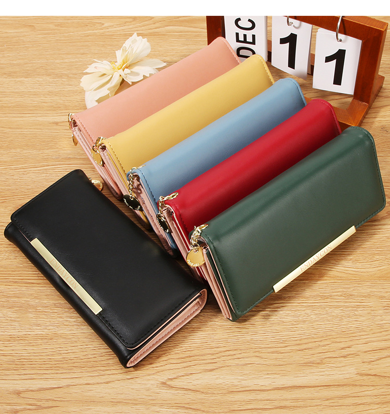韩版时尚长款两折多卡位钱包 女士ins简约PU拉链钱夹学生纯色