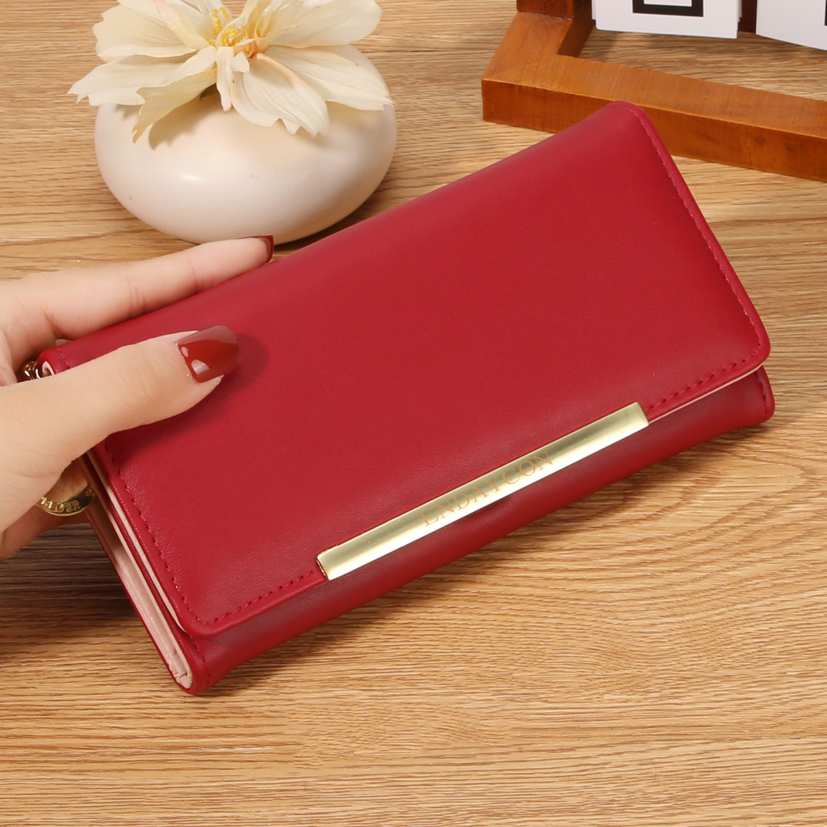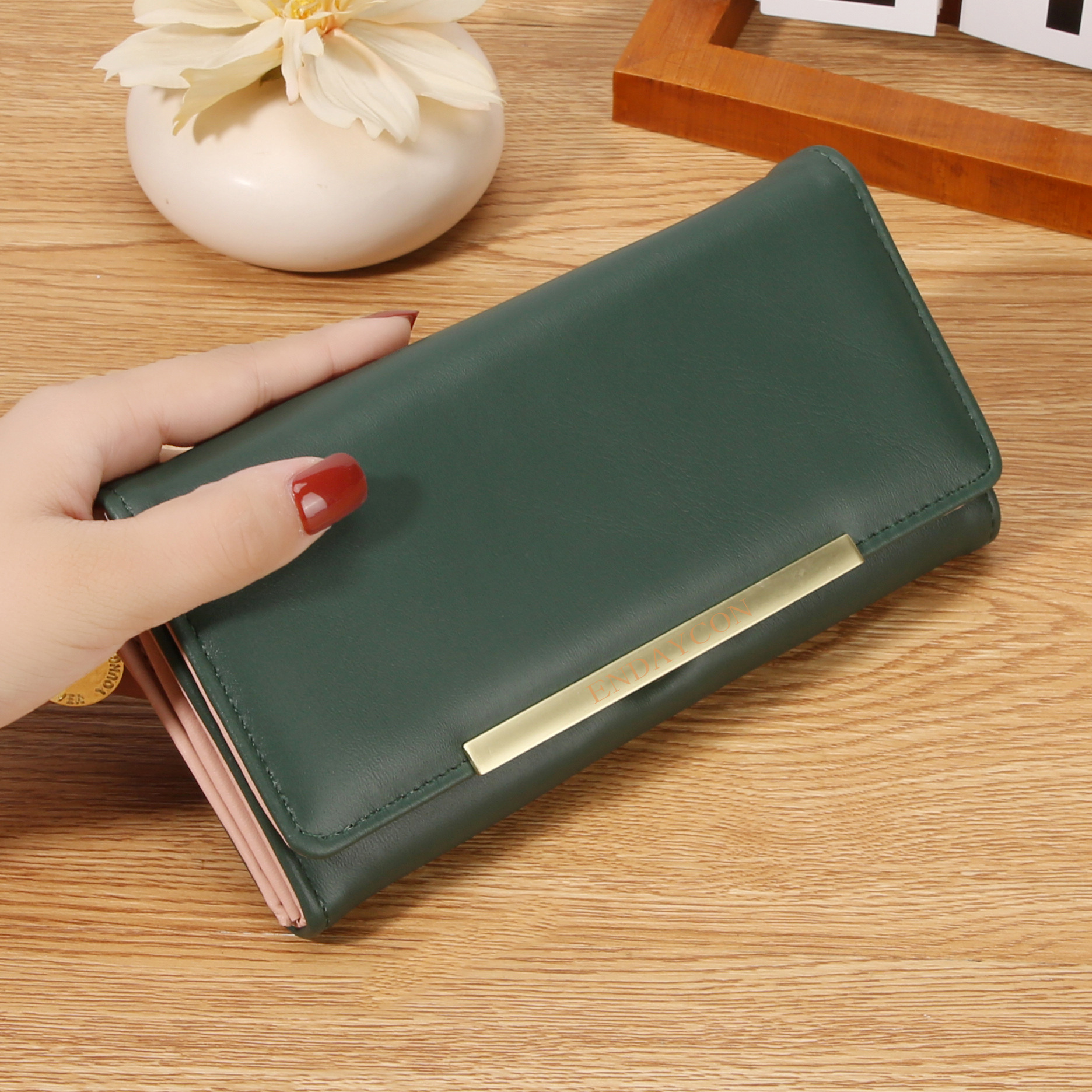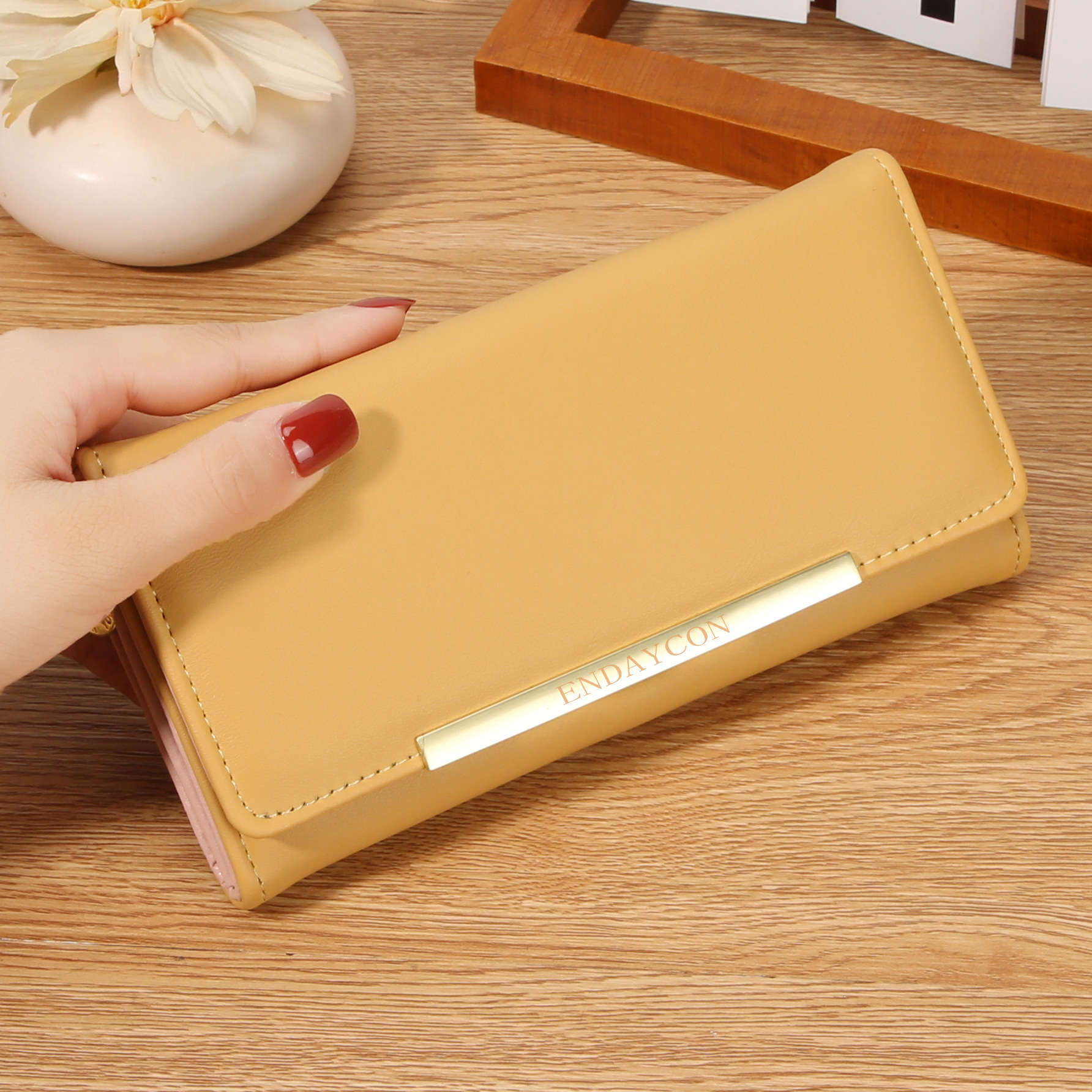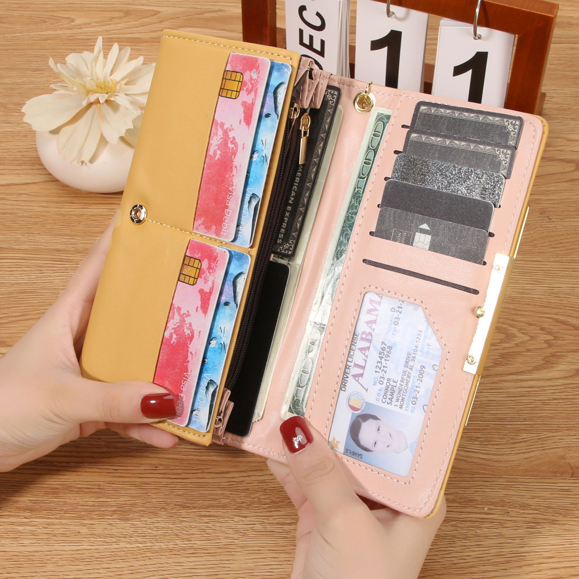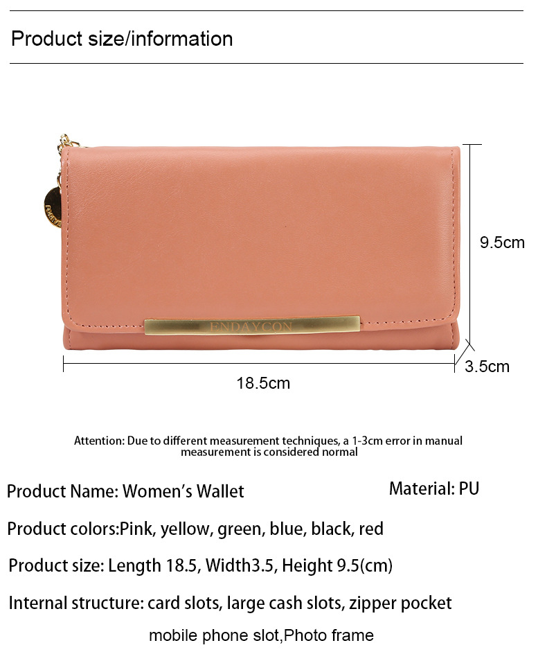 韩版时尚长款两折多卡位钱包 女士ins简约PU拉链钱夹学生纯色