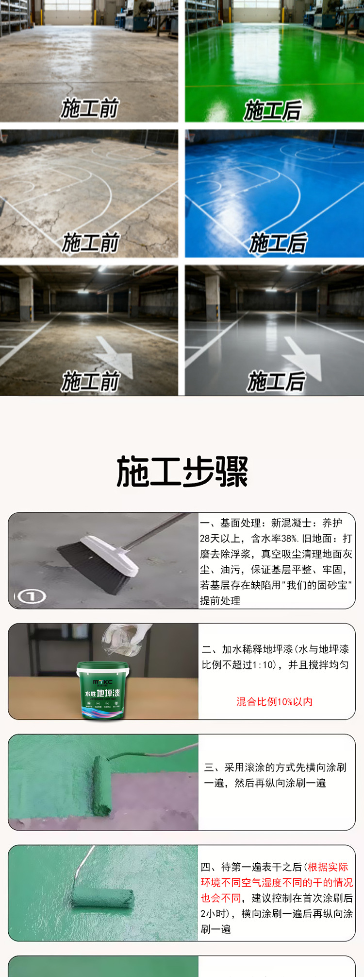 水性环氧树脂地坪漆工厂车间水泥地面家用室内丙烯酸三合一地板漆