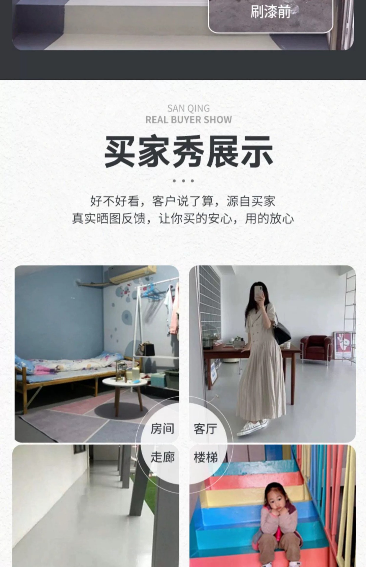 三青漆家用地坪漆灰漆室内耐磨环氧树脂地板地平罩面水性油漆涂料