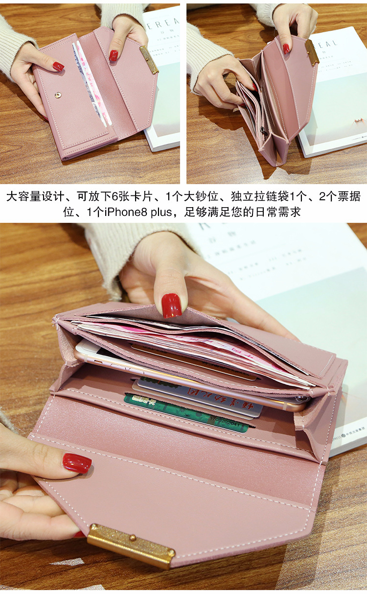 钱包长款新款女韩版潮个性长款小清新多功能搭扣日韩复古薄零钱包