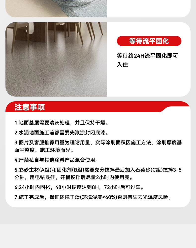 环氧彩砂地坪漆树脂大理石瓷砖自流平水泥地面防水耐磨一件代发