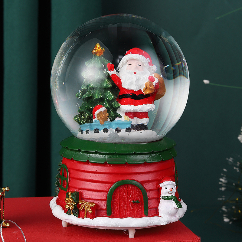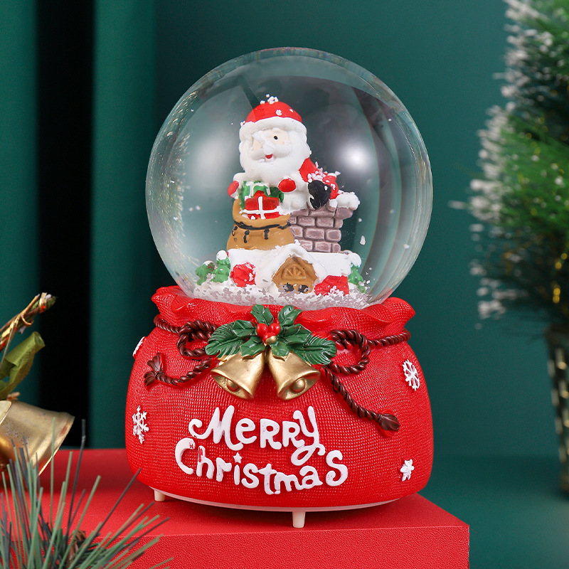 创意圣诞水晶球音乐盒下雪飘雪圣诞节装饰雪花水球发光玻璃球批发