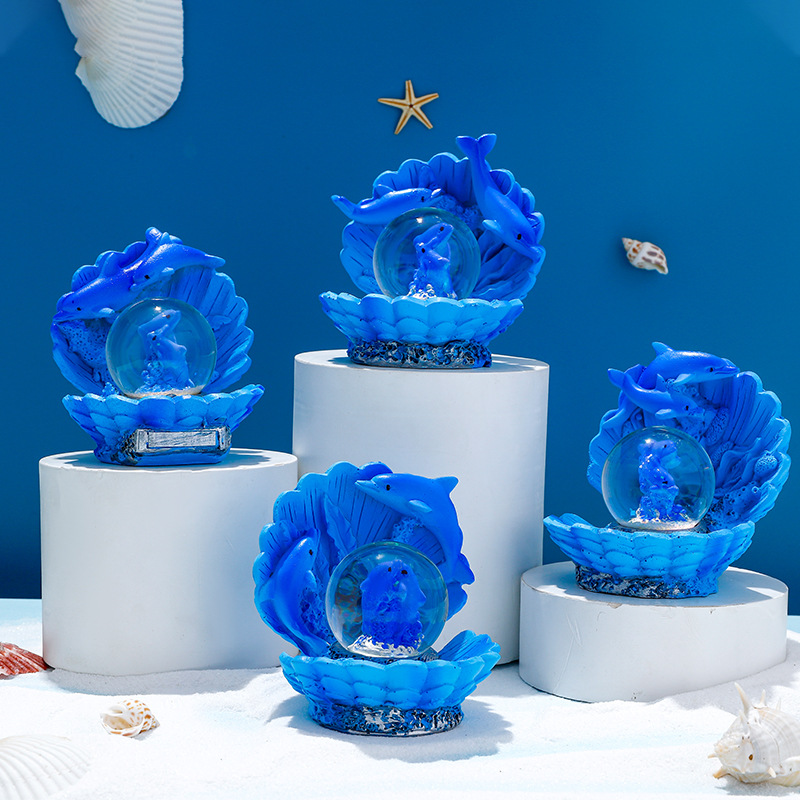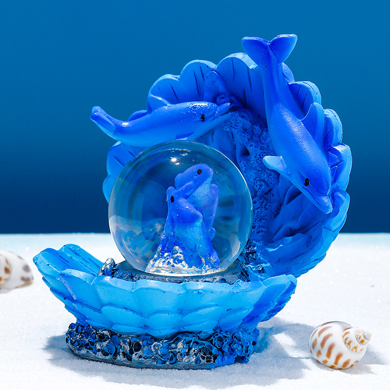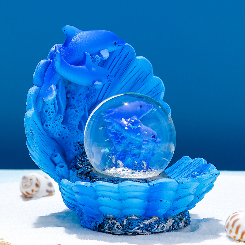 海洋贝壳海豚水晶球树脂摆件创意地中海玻璃水球儿童礼品礼物批发