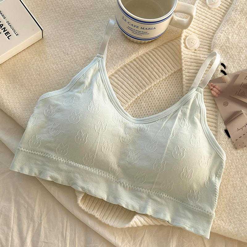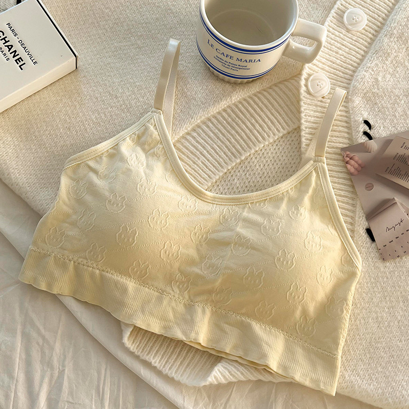 无钢圈少女文胸学生初中高中发育期吊带内衣一体式固定杯小背心