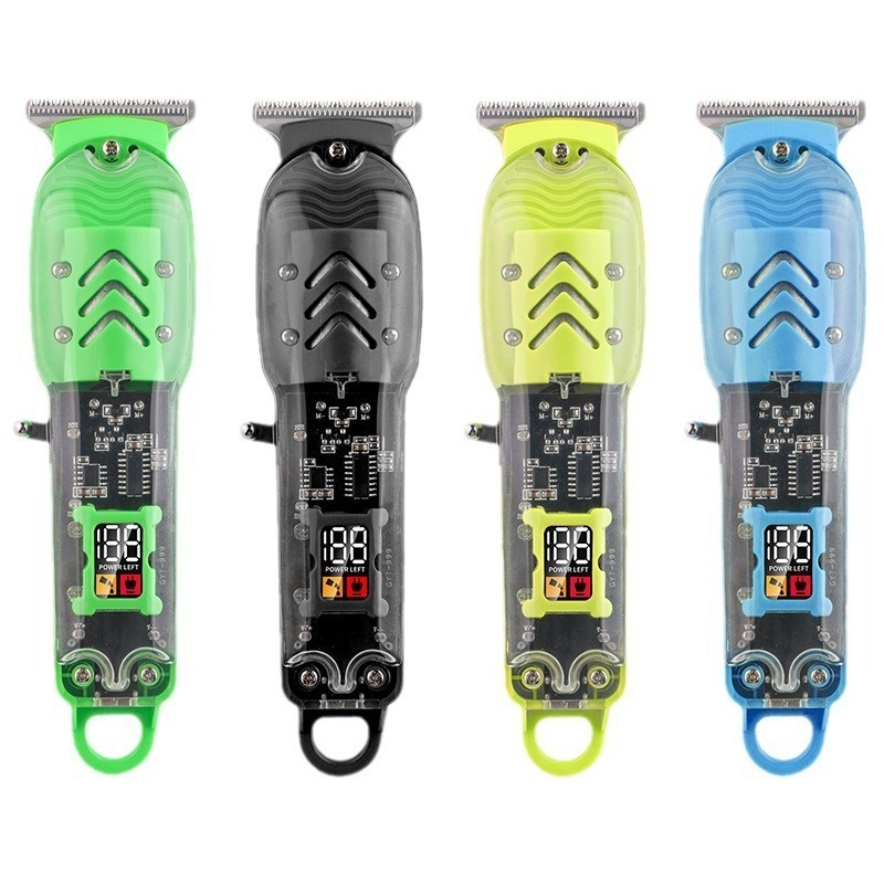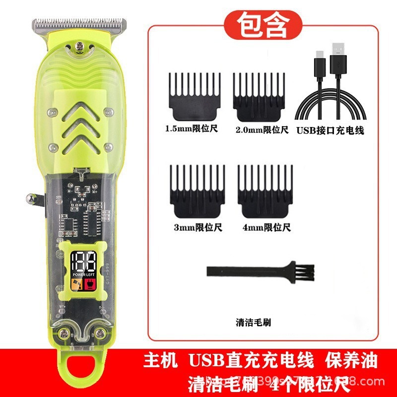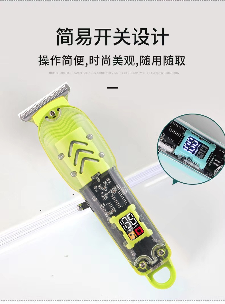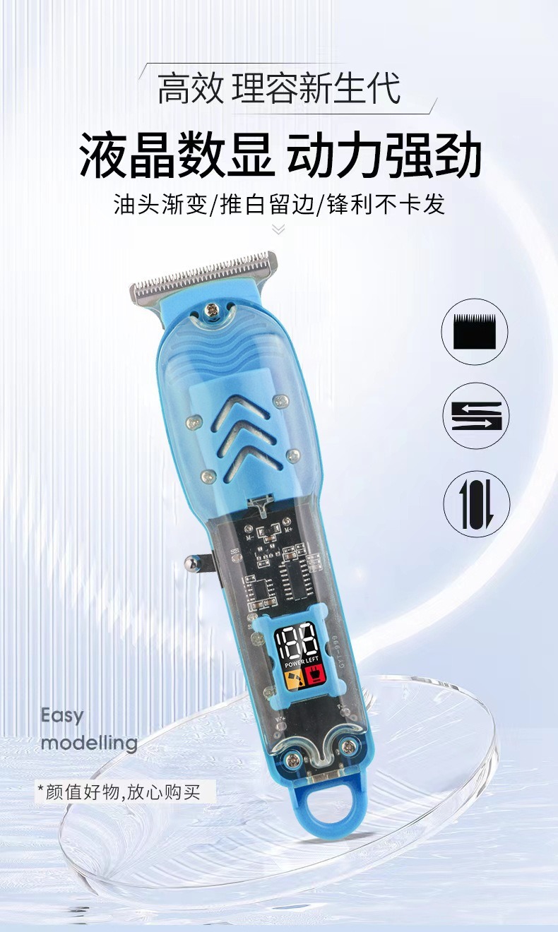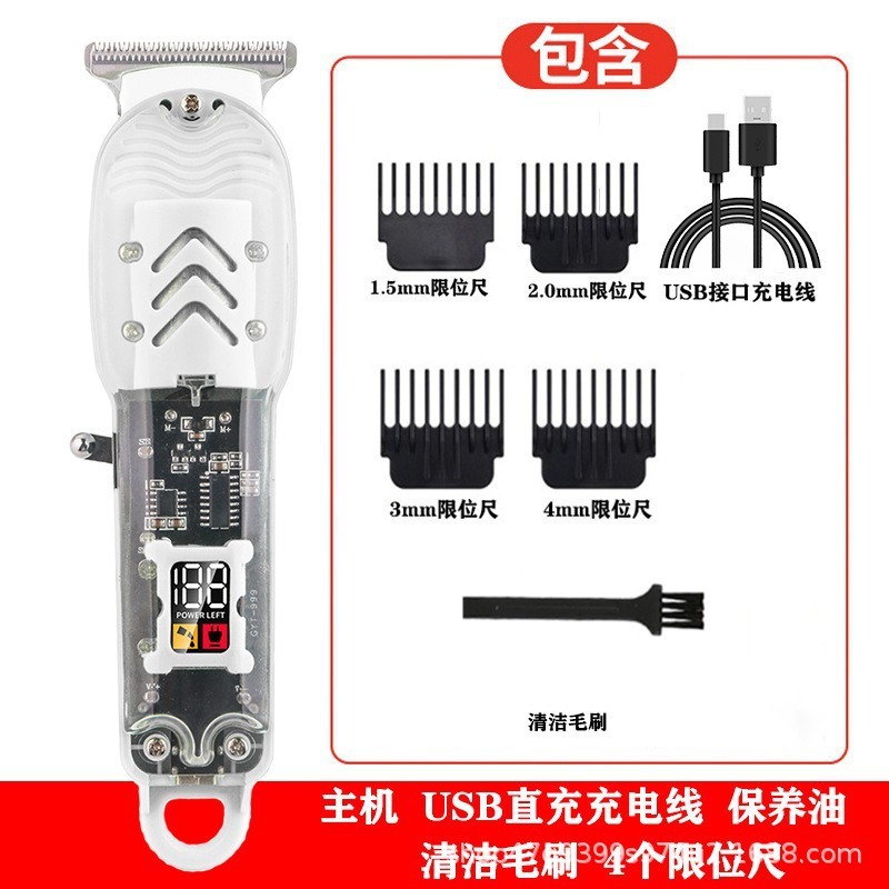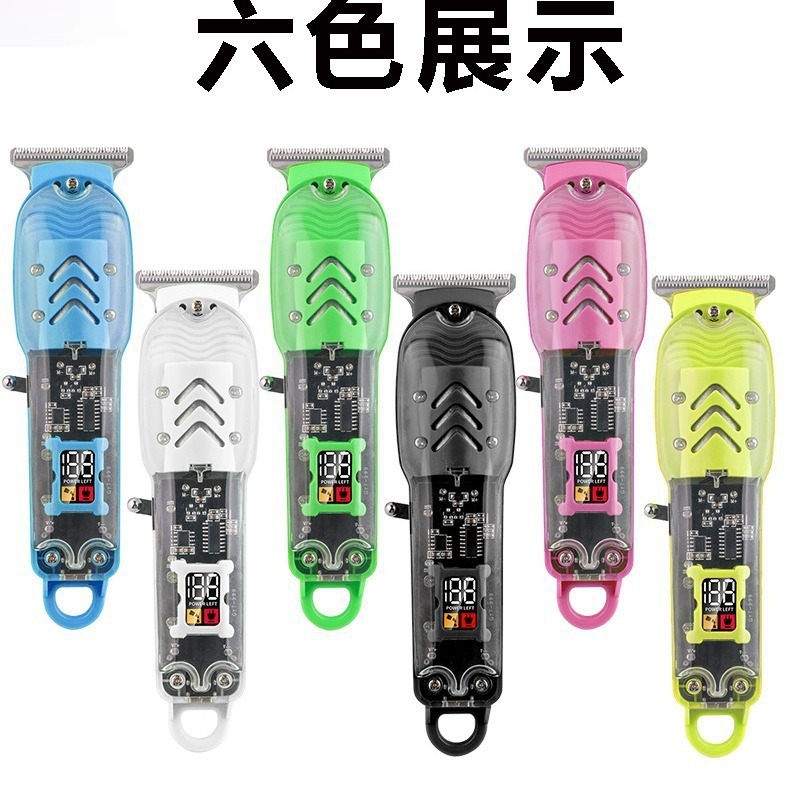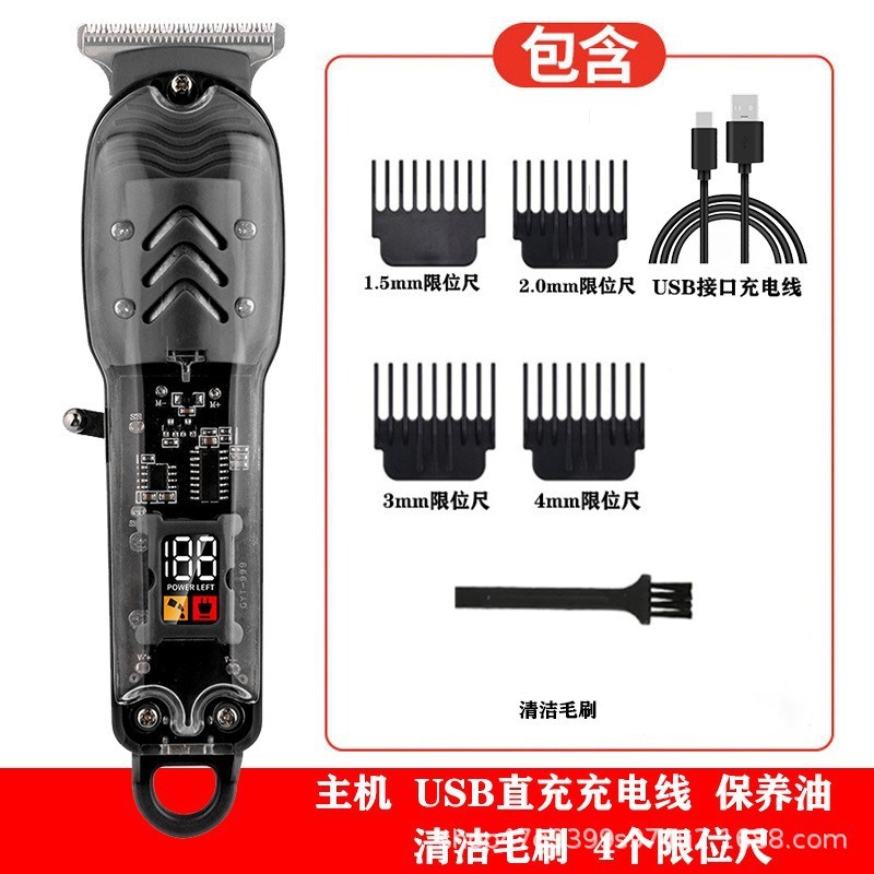 跨境数显油头电推剪发廊专业剃光头电推子液晶充电透明机身理发器