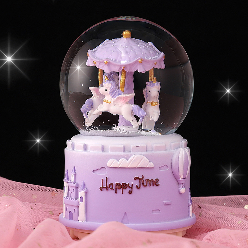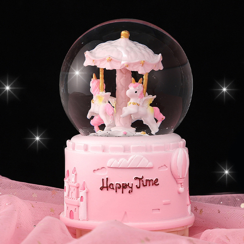 旋转木马发光水晶球音乐盒少女心家居装饰八音盒儿童生日礼物批发