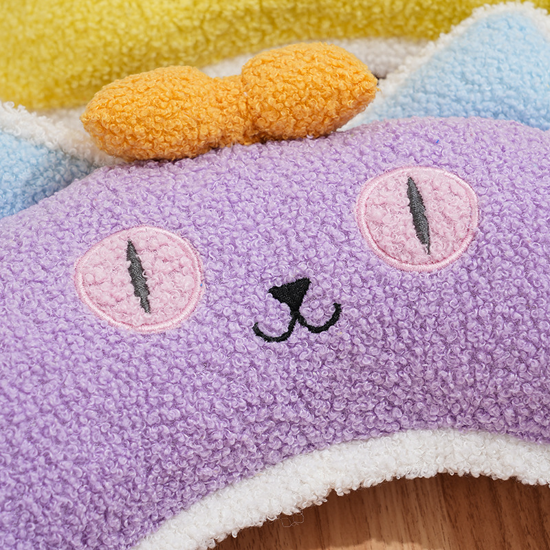 厂家新款泰迪绒宠物蝴蝶结半月枕 猫咪枕头踩奶深度睡眠U型枕现货