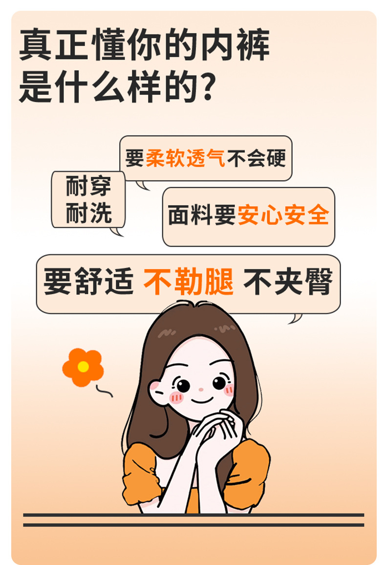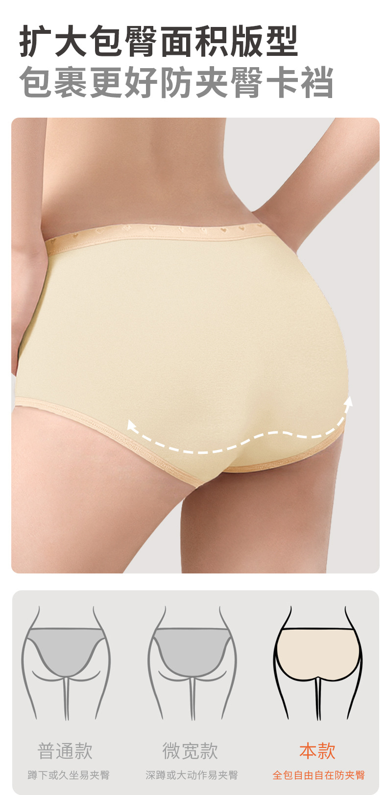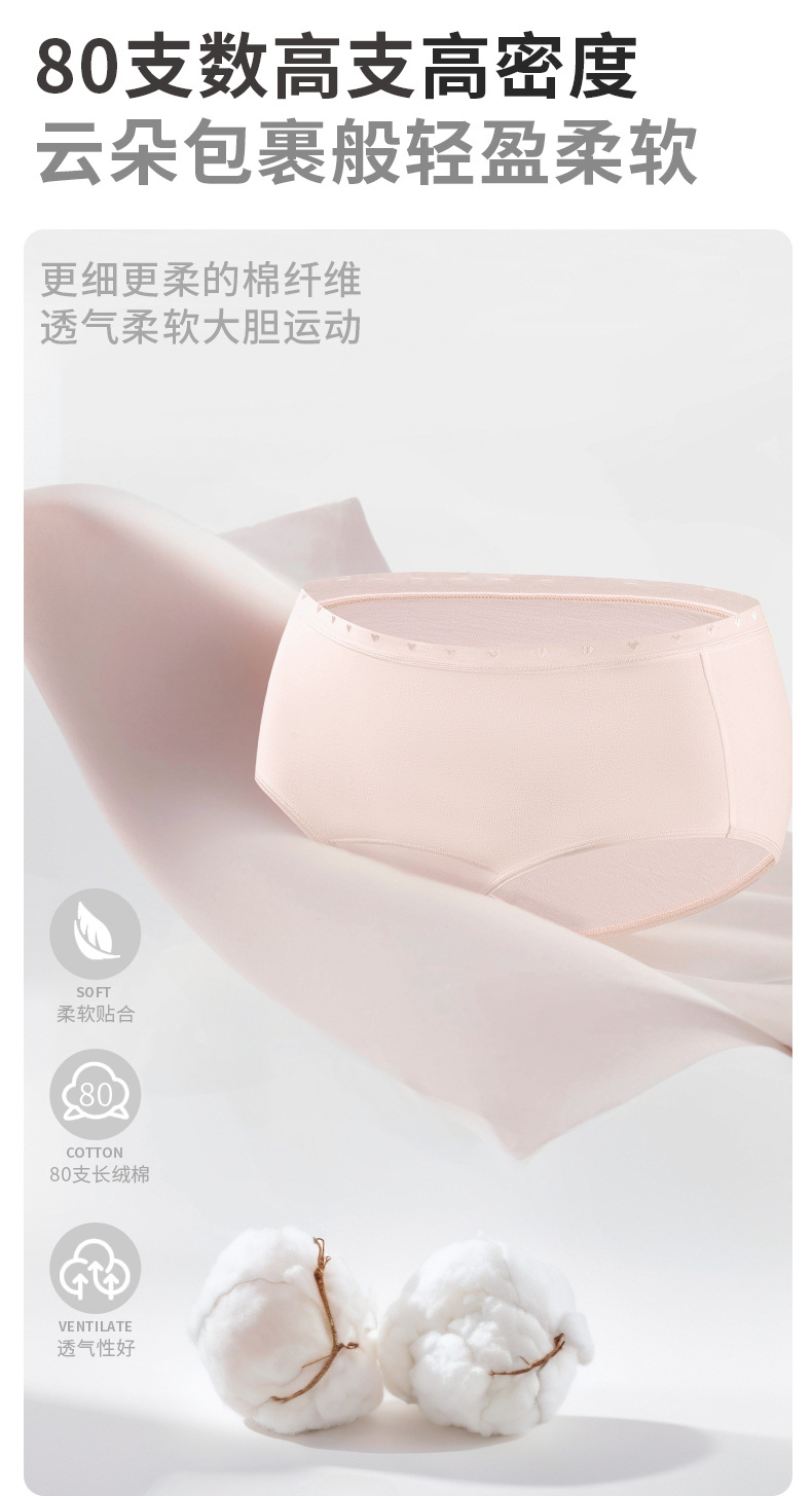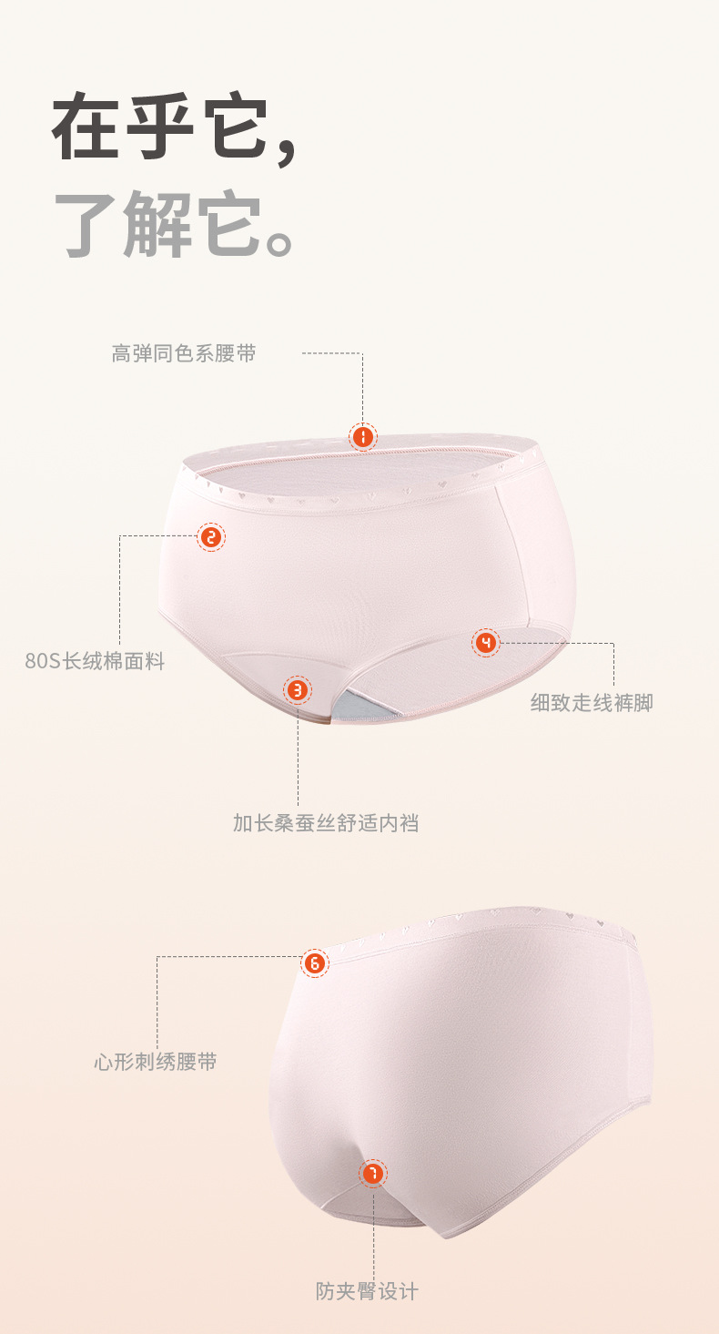 桔内木木内裤女士80支长绒棉爱心腰带防夹防勒腿舒适加长桑蚕丝裆