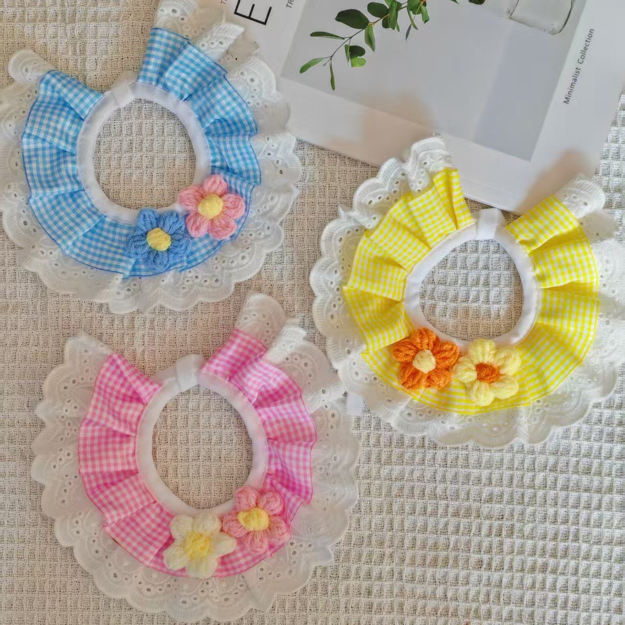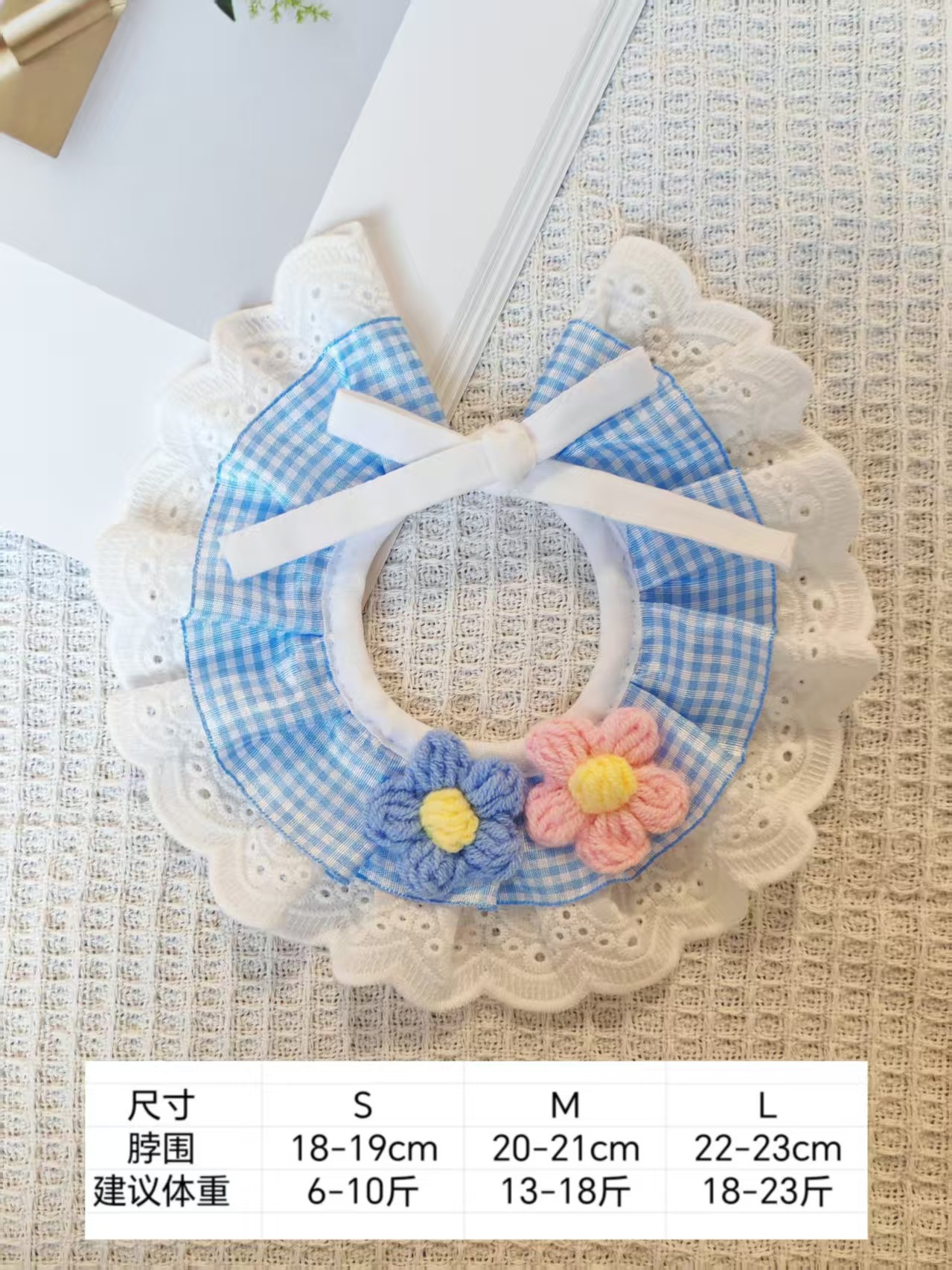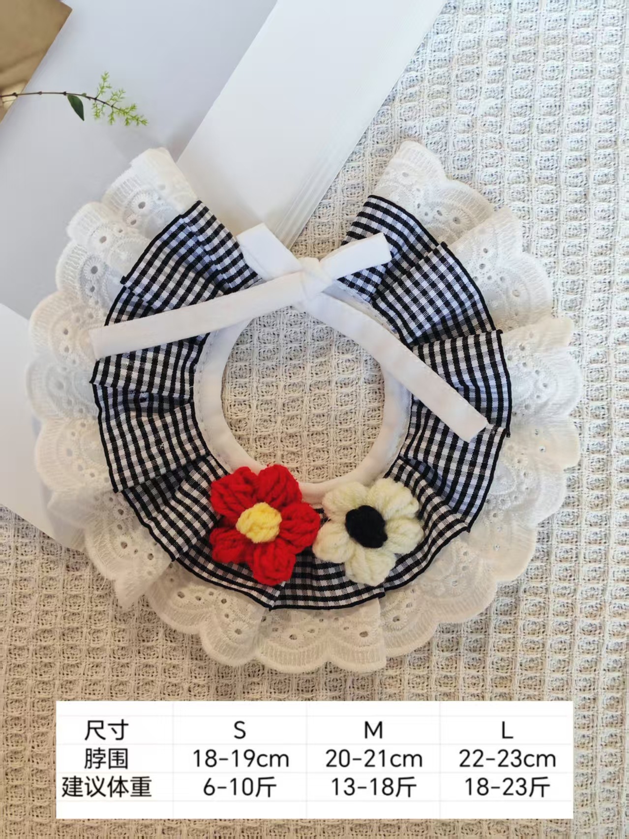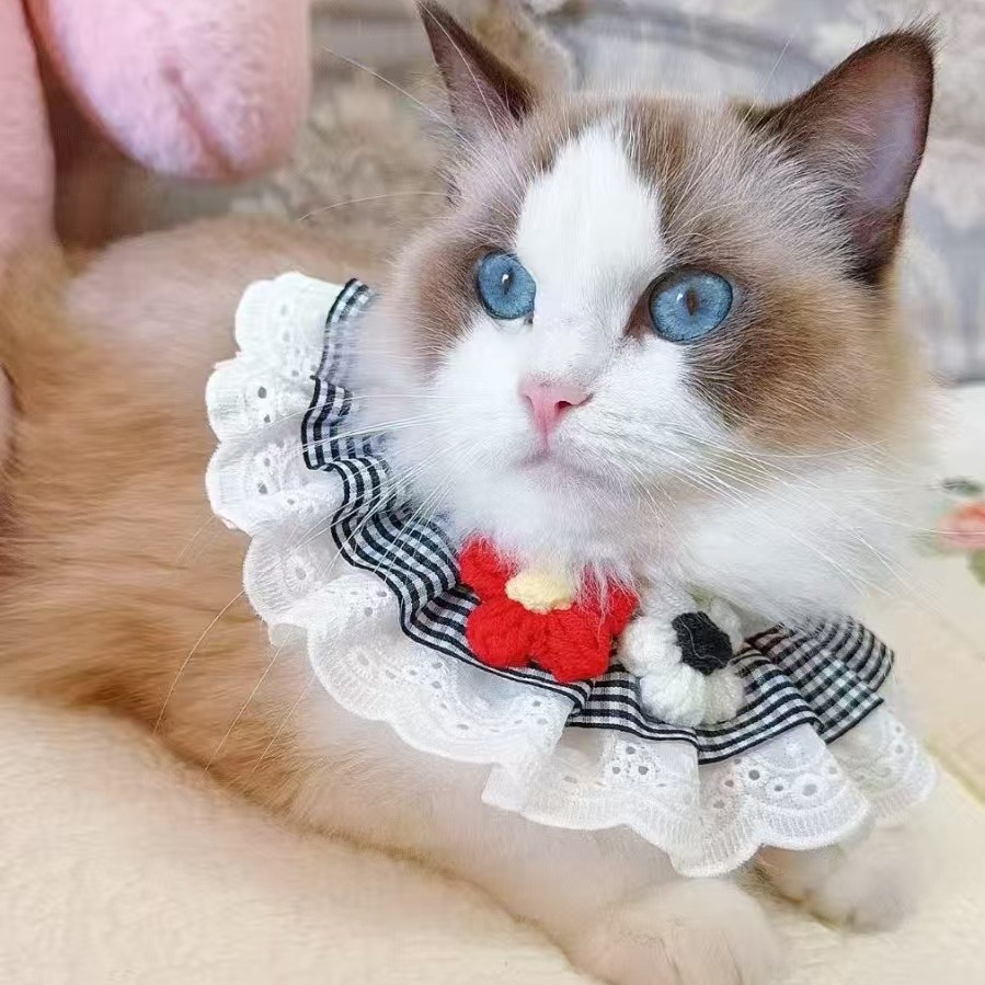 亚马逊猫咪围兜新款宠物口水巾蕾丝猫咪项圈狗狗饰品田园风口水巾