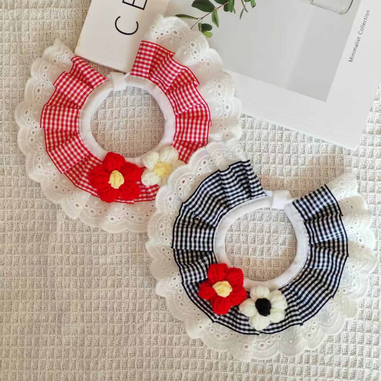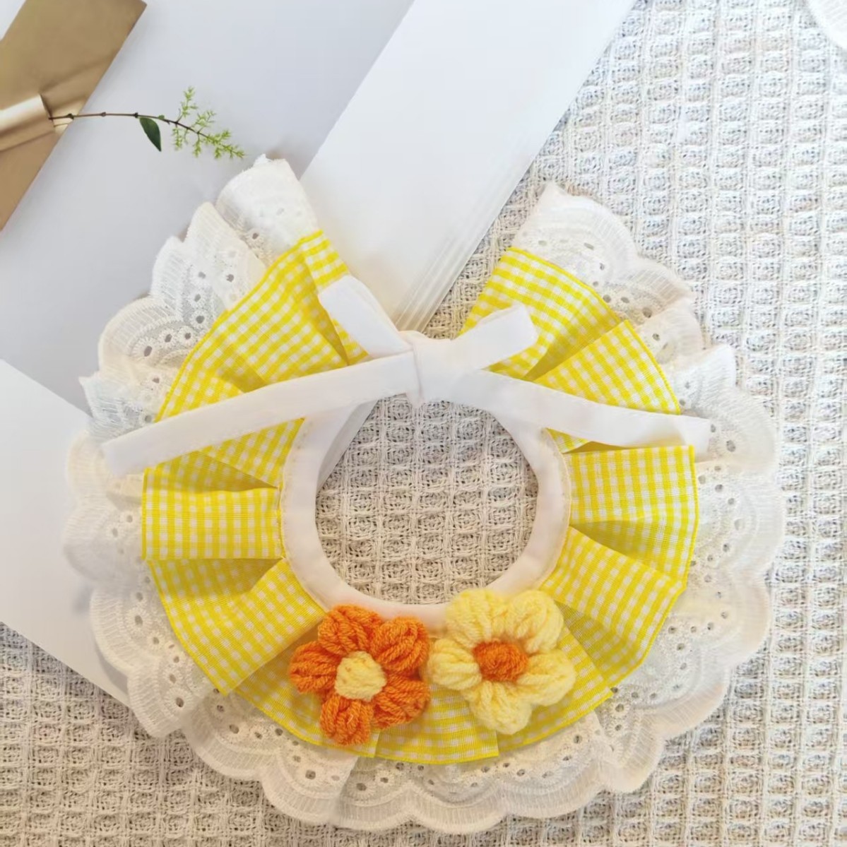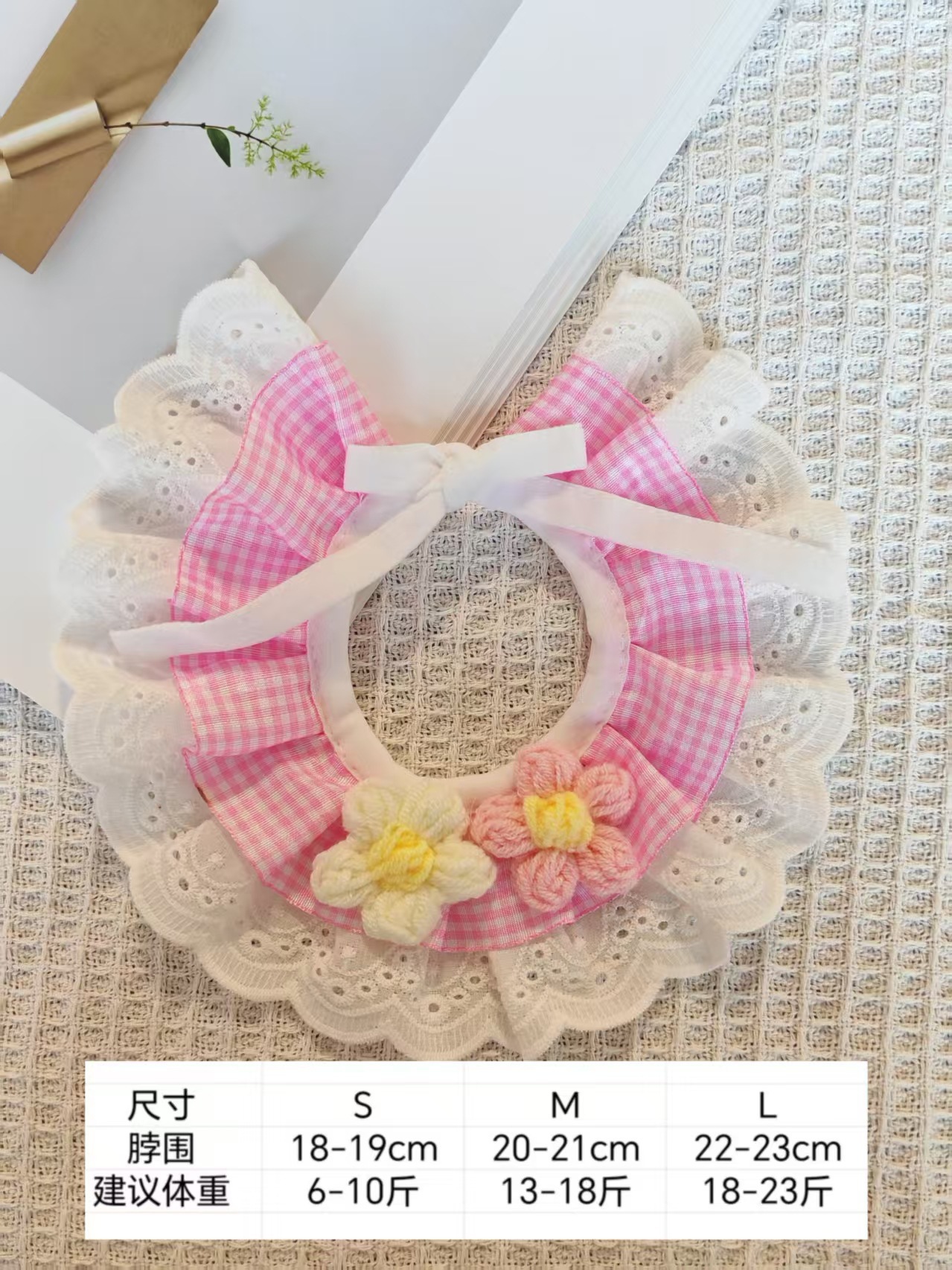 亚马逊猫咪围兜新款宠物口水巾蕾丝猫咪项圈狗狗饰品田园风口水巾