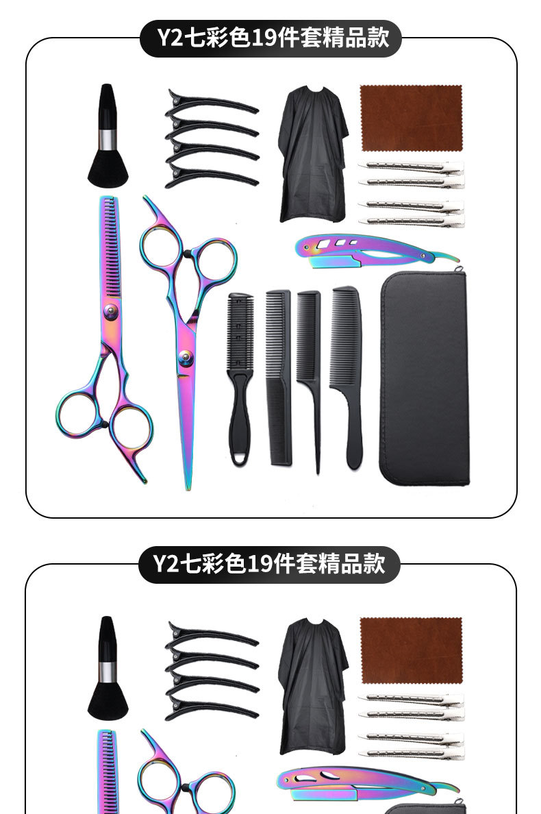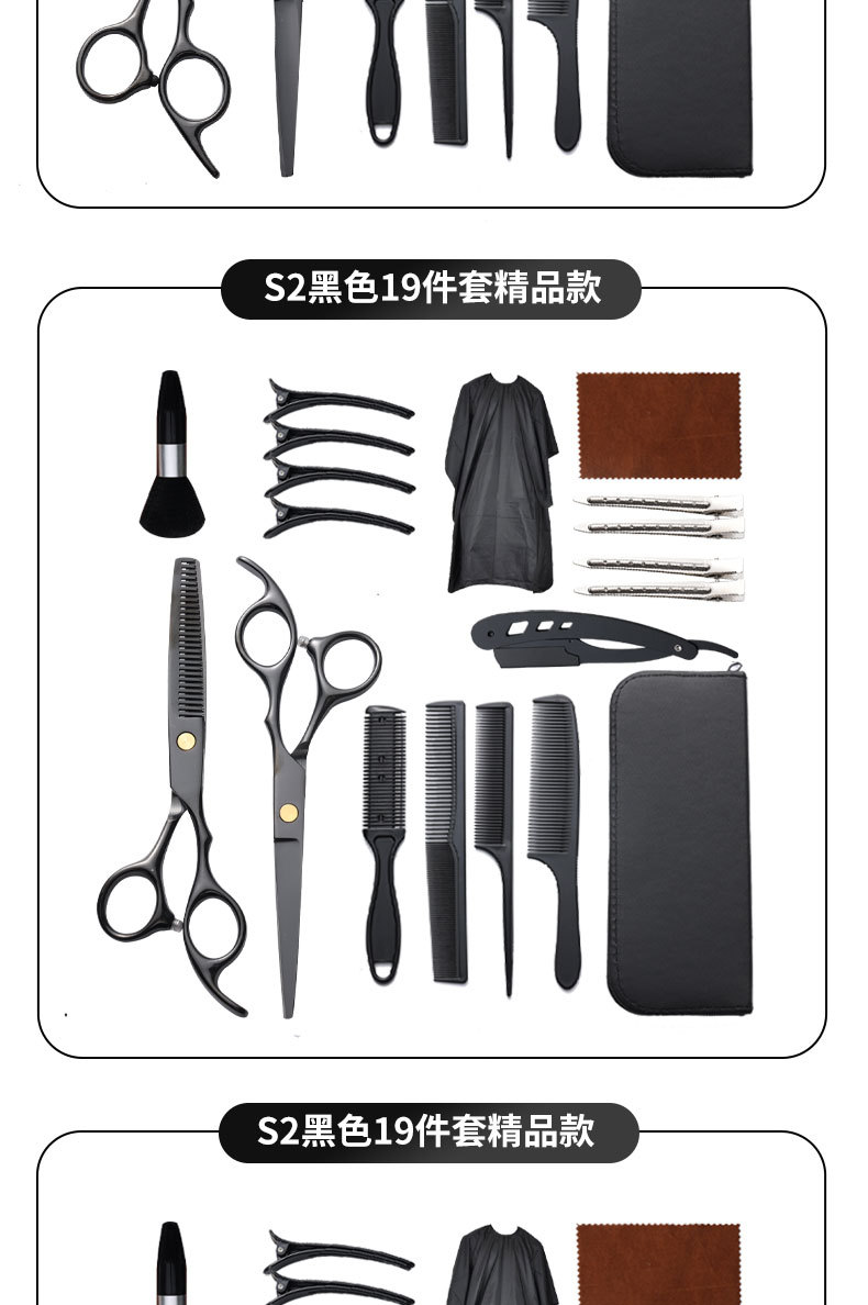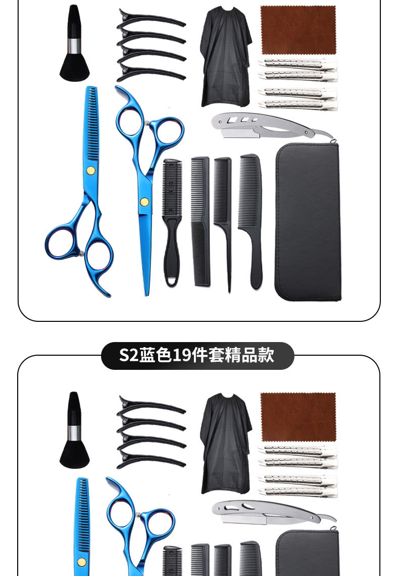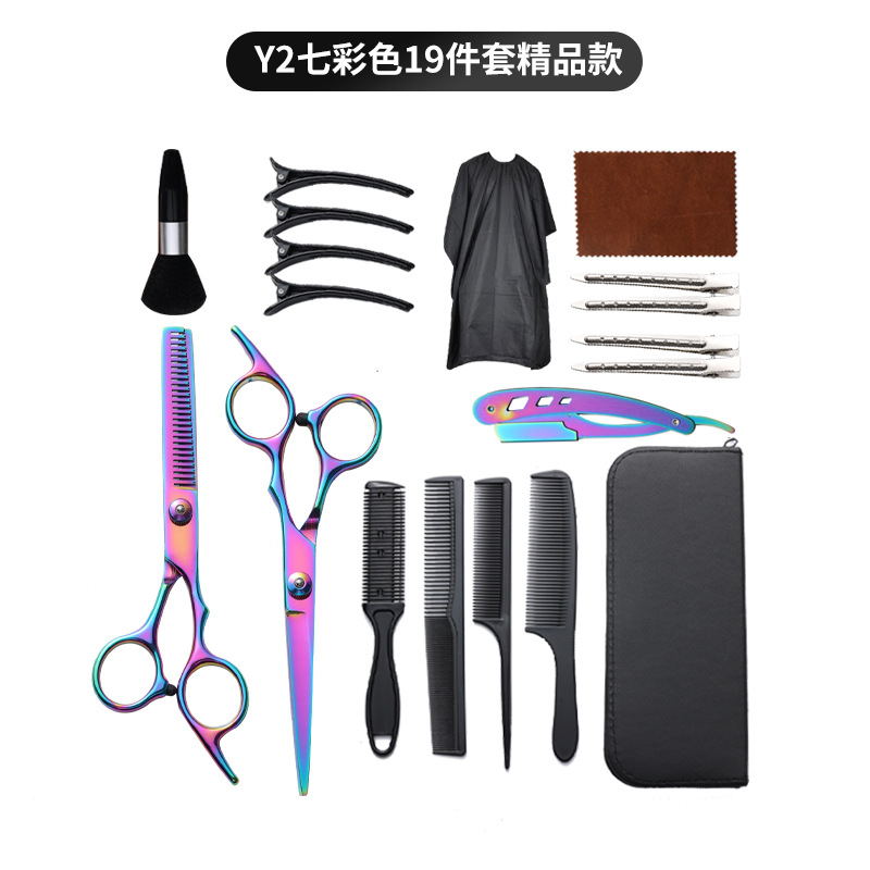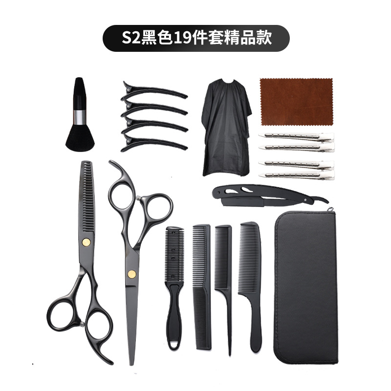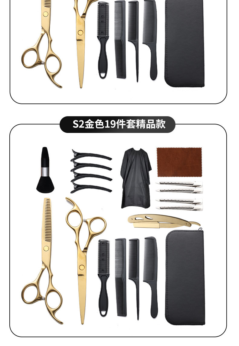 理发剪刀套装跨境专供6寸4cr不锈钢平牙剪打薄剪刘海工具美发剪刀