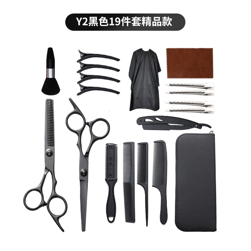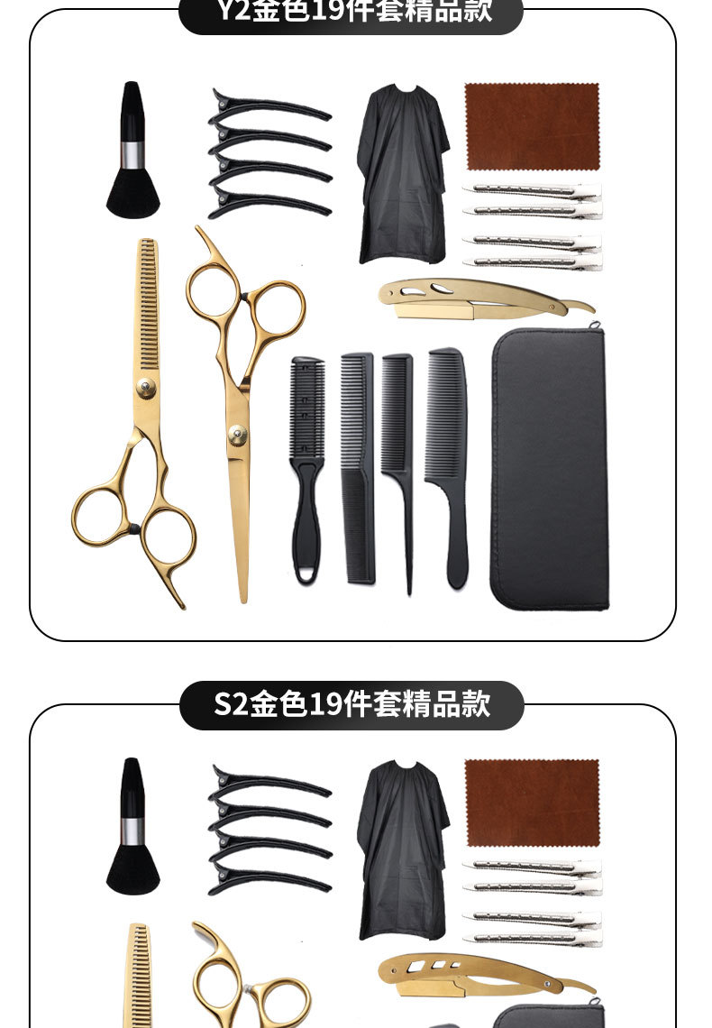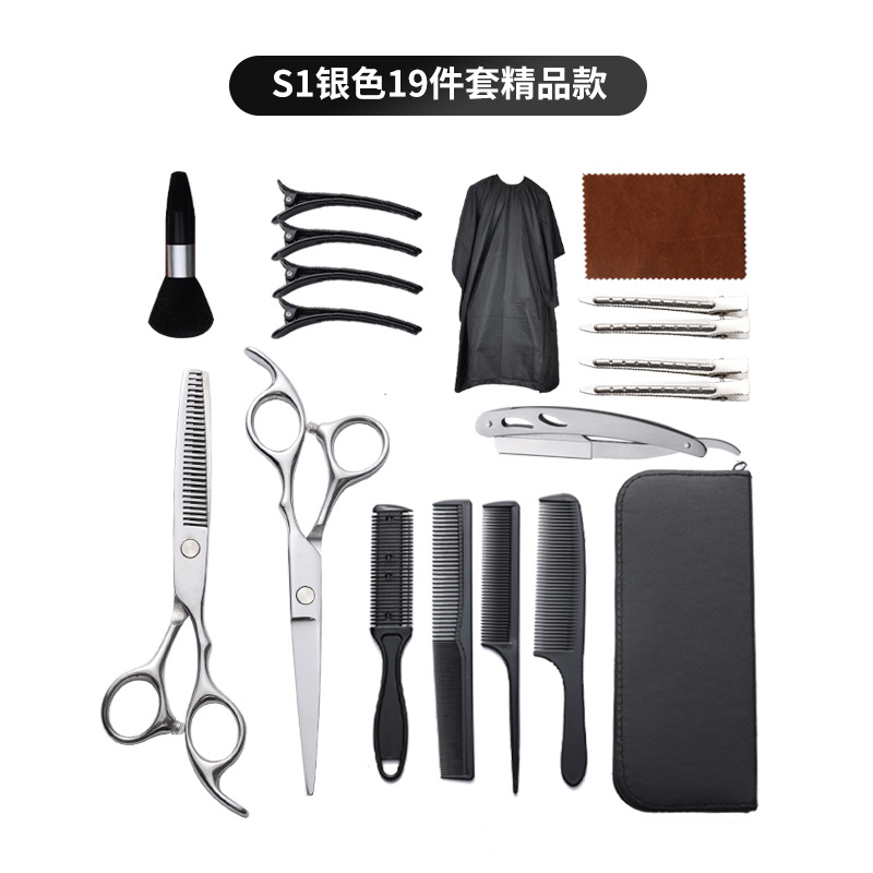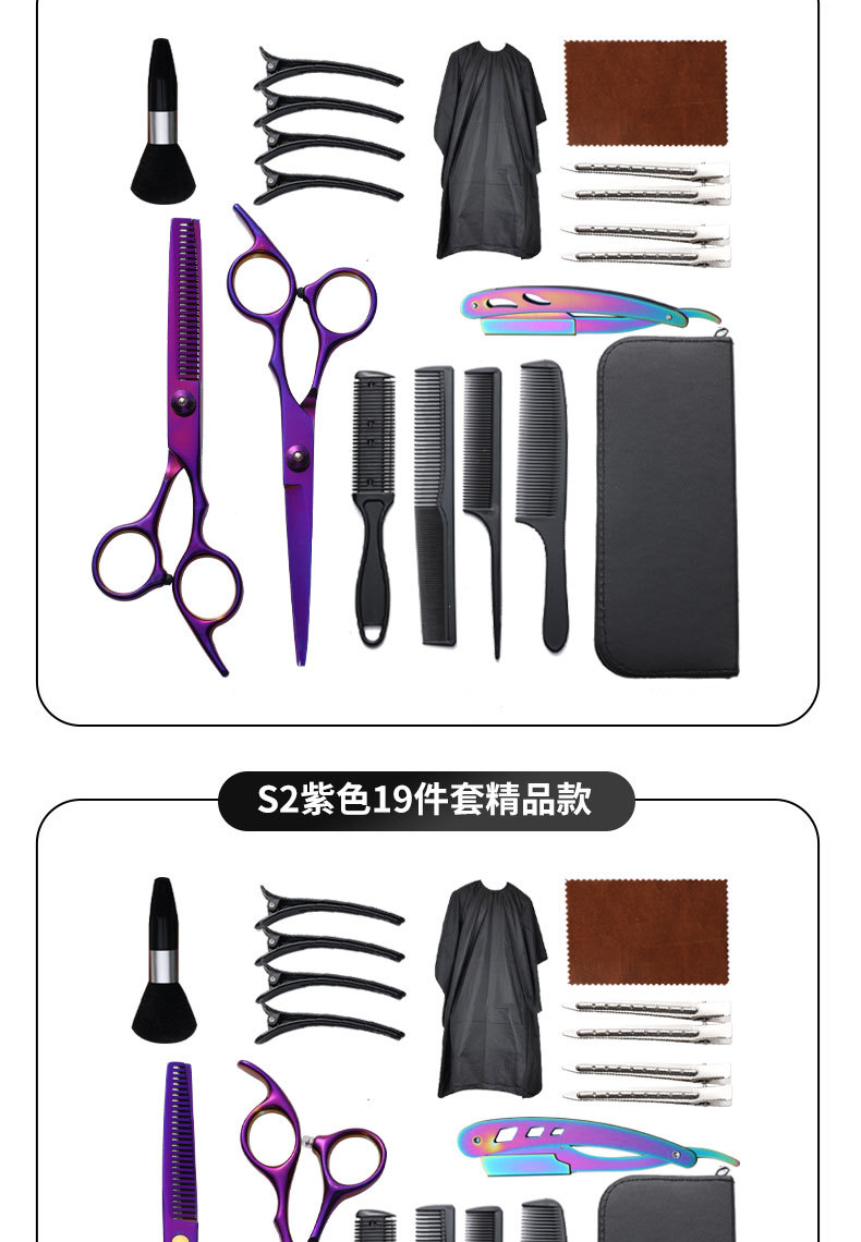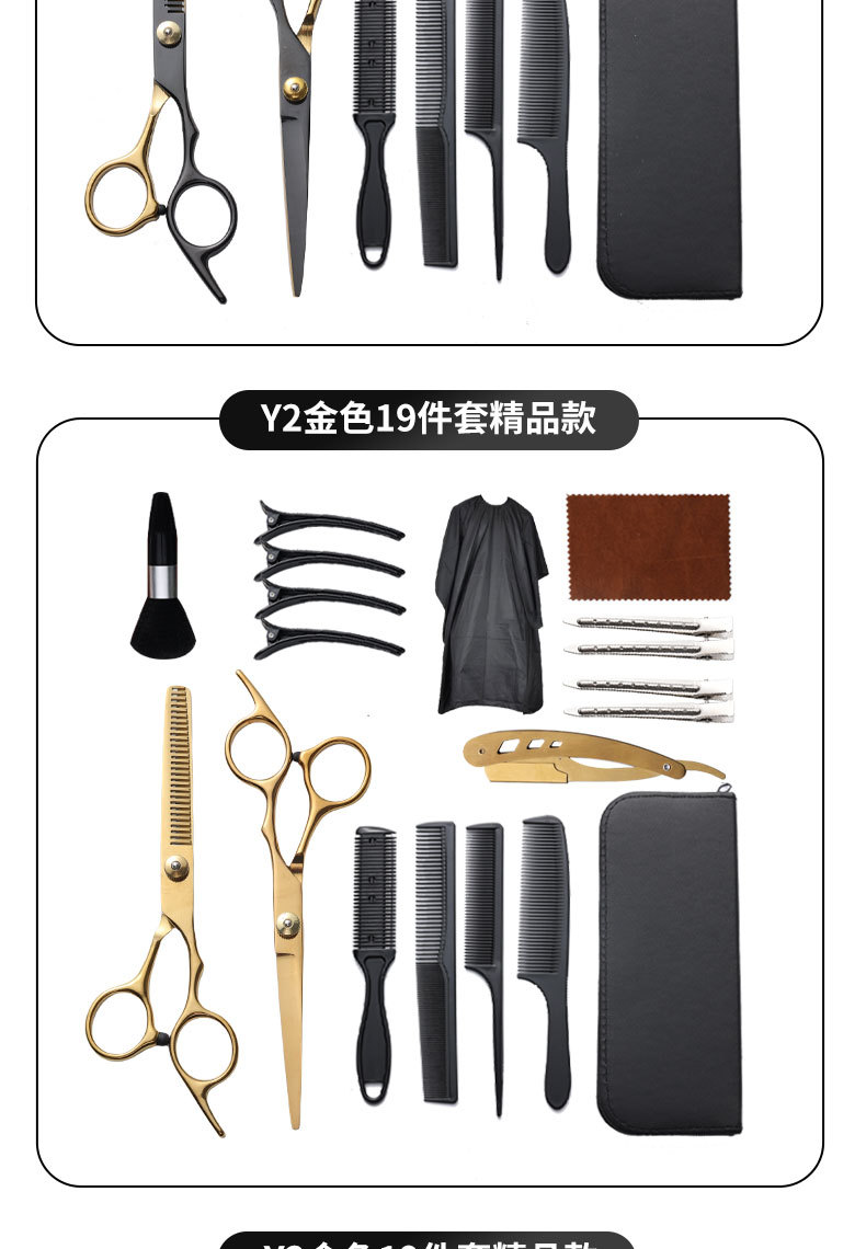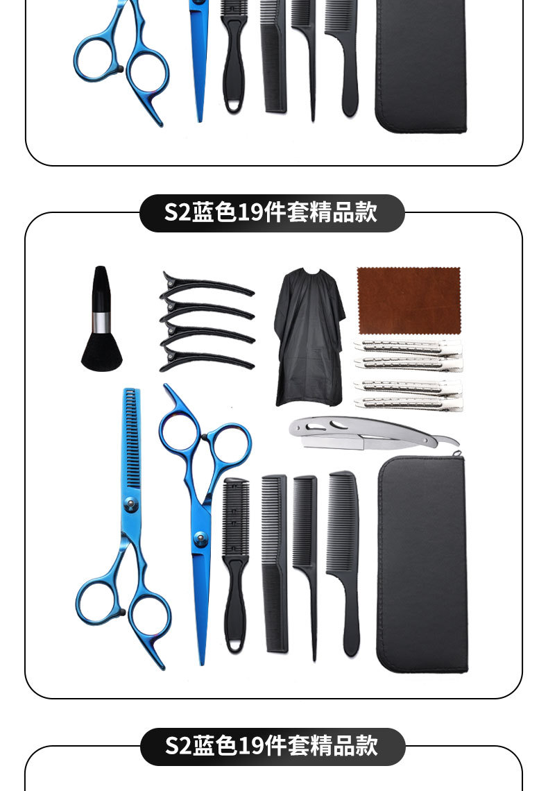 理发剪刀套装跨境专供6寸4cr不锈钢平牙剪打薄剪刘海工具美发剪刀