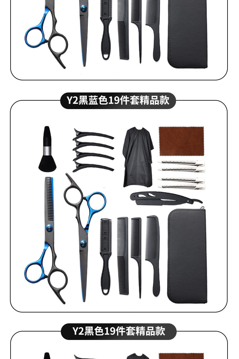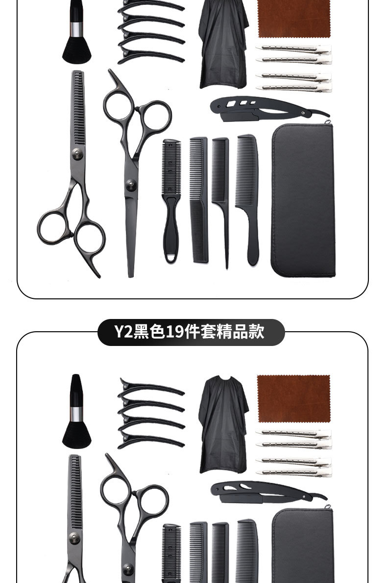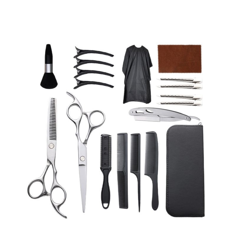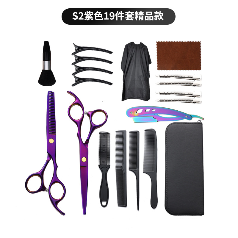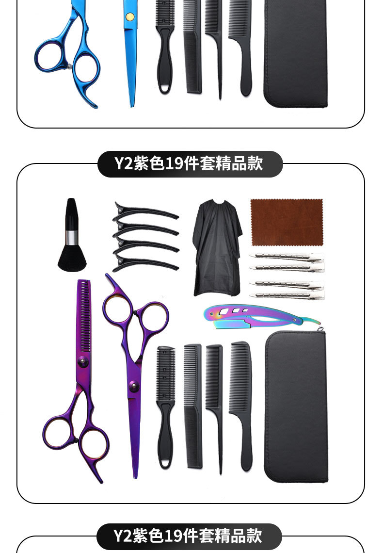 理发剪刀套装跨境专供6寸4cr不锈钢平牙剪打薄剪刘海工具美发剪刀