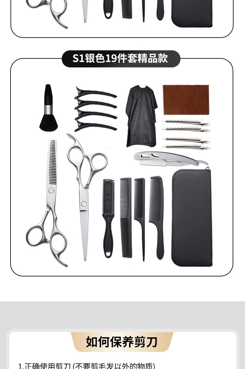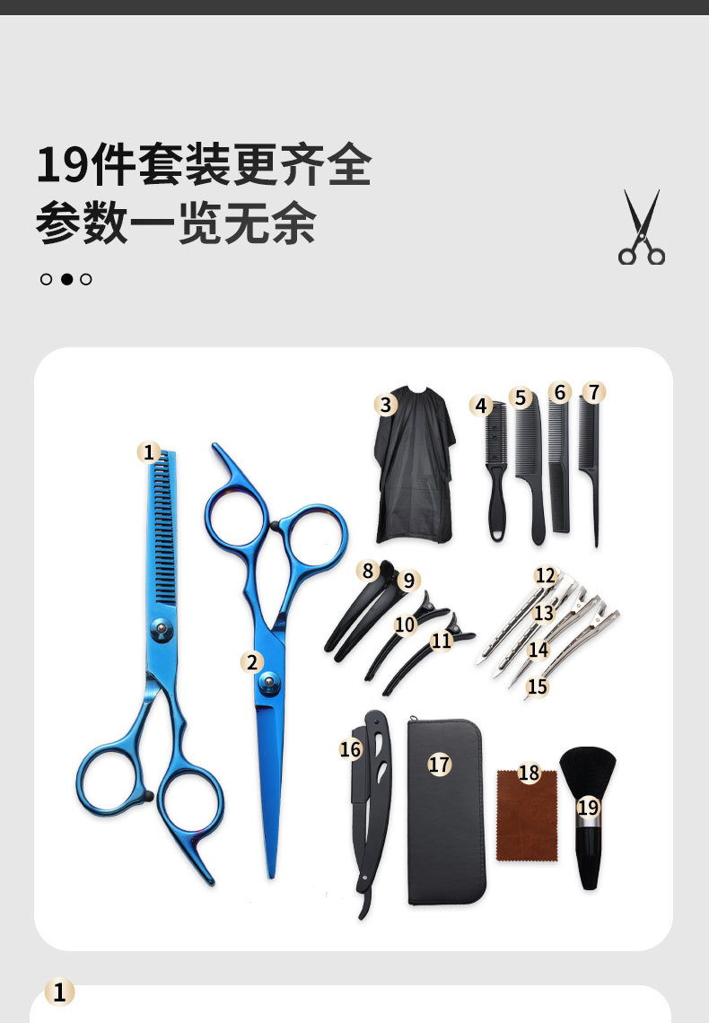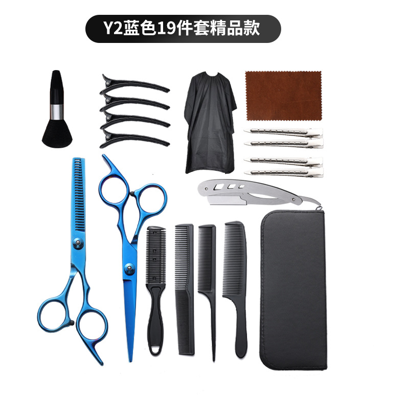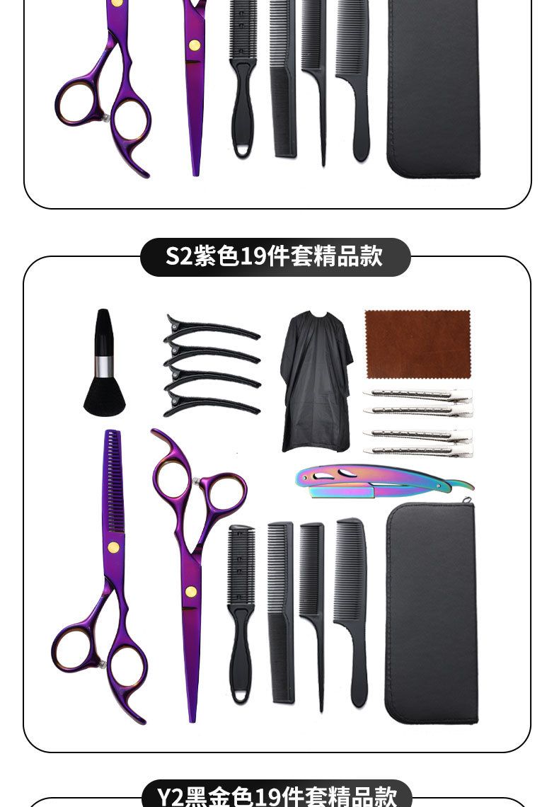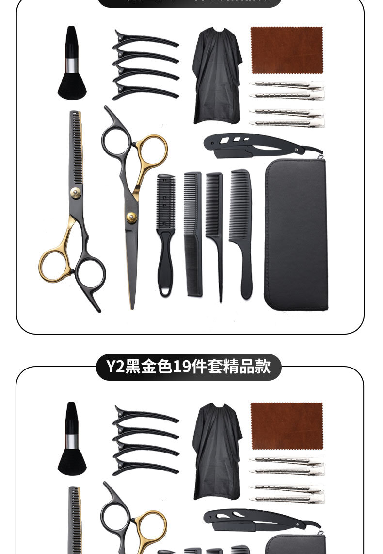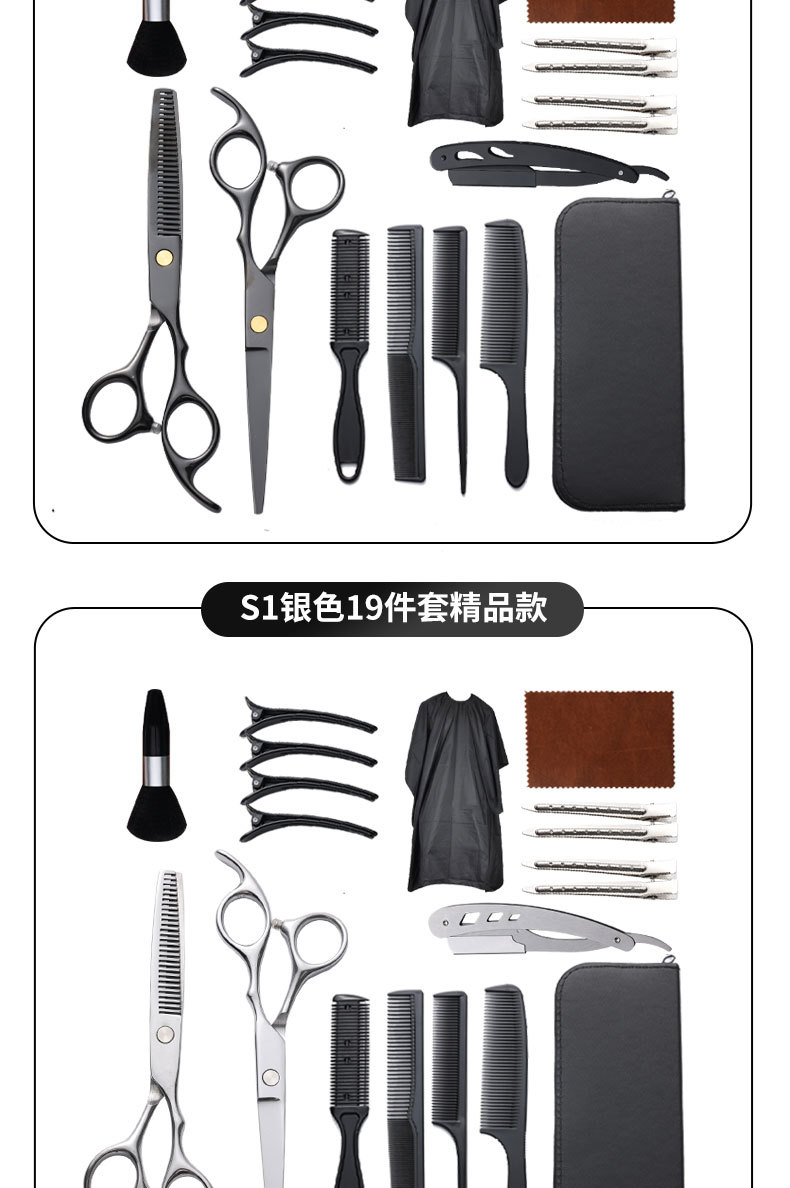 理发剪刀套装跨境专供6寸4cr不锈钢平牙剪打薄剪刘海工具美发剪刀