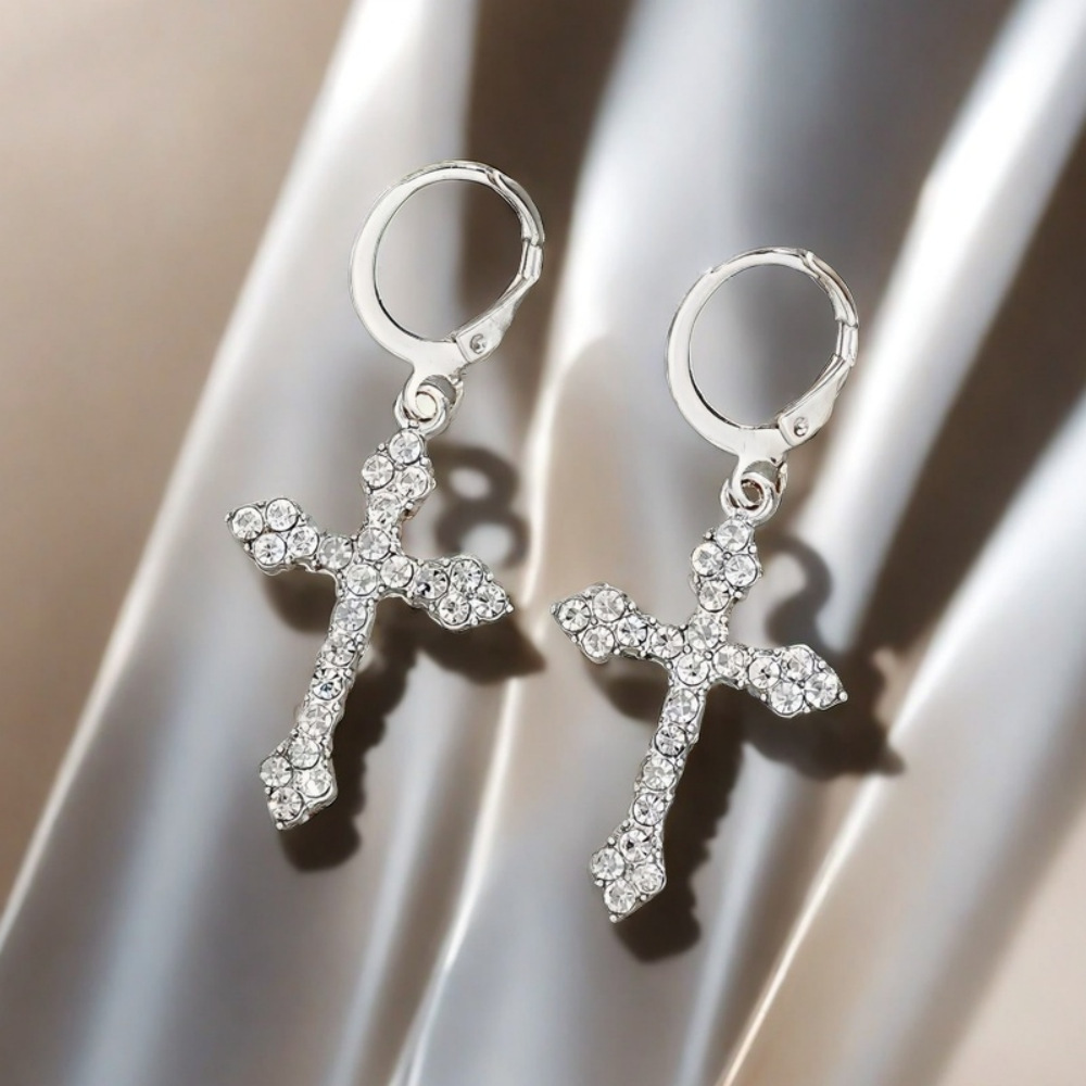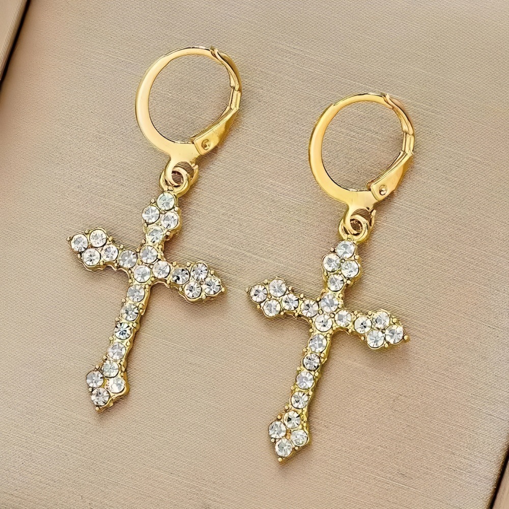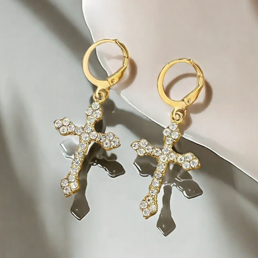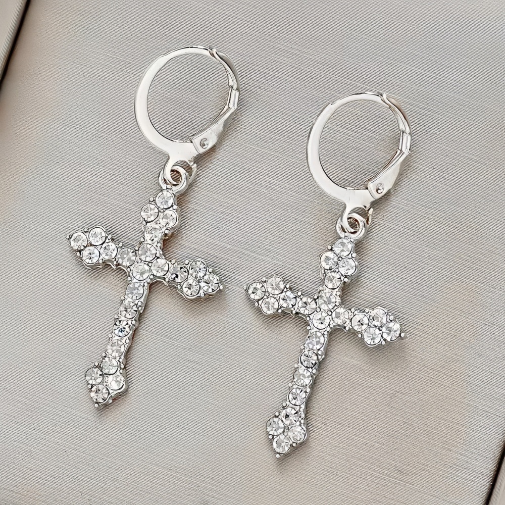 轻奢十字架耳环跨境专供小众女士耳环耳饰夏季高级感镶钻耳扣耳环