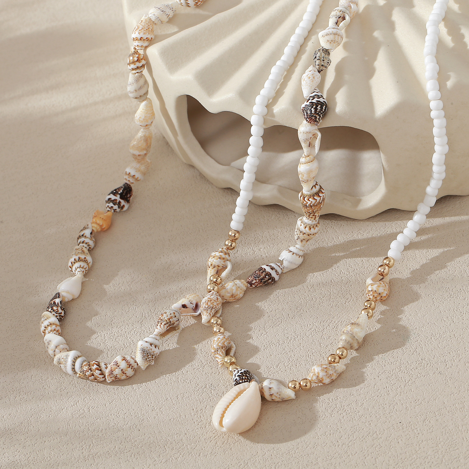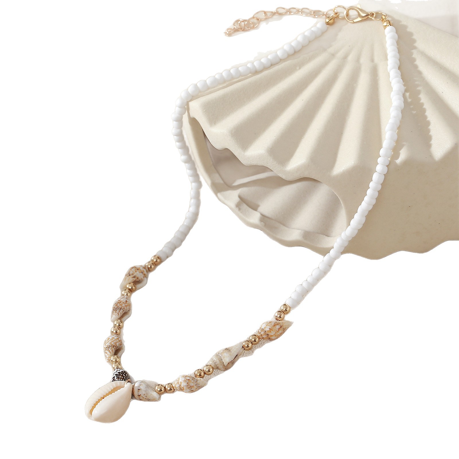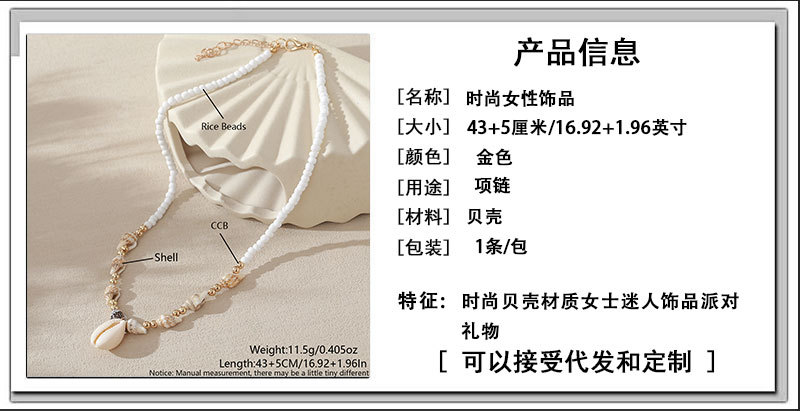 欧美跨境首饰串珠项链沙滩天然贝壳海螺项链沙滩度假风吊坠锁骨链